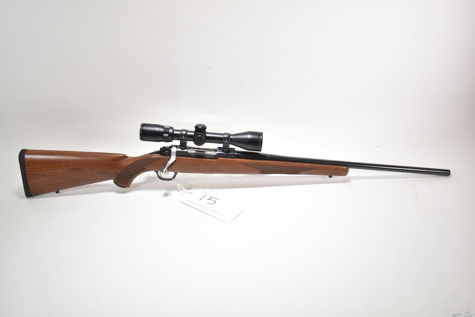 Non-Restricted rifle Ruger model M77 MK II, 350 Rem mag. bolt action, w/ bbl length 22" [Blued barrel and receiver. No fixed sights. Fitted with Bushnell Banner 3X-9X40 scope. Hardwood stock with checkered pistol and foregrip. Branded recoil pad. Appears to have had very little use with only minor use, storage and handling marks.] serial # 78972784, PAL required