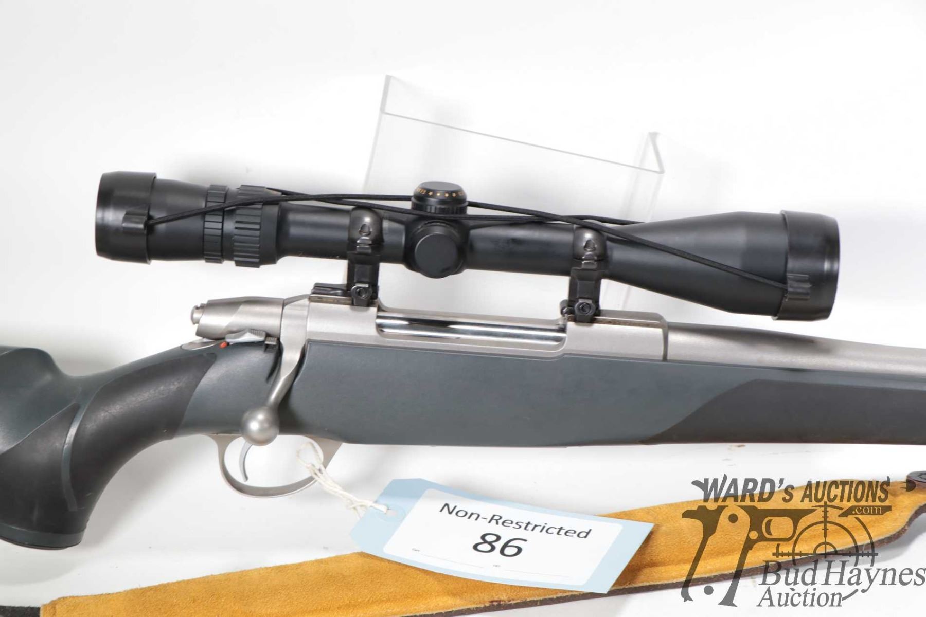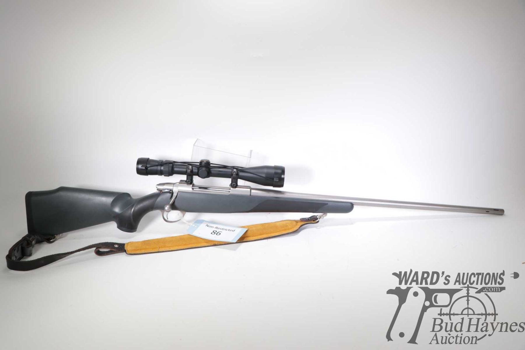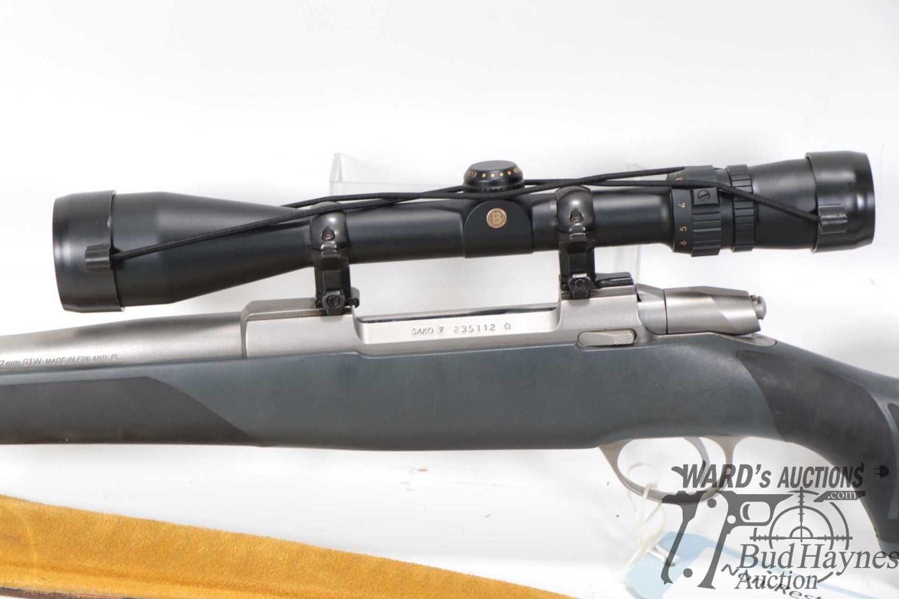 Non-Restricted rifle Sako model V, 7mm STW bolt action, w/ bbl length 26" [Satin stainless tapered barrel and receiver. No fixed sights. Fitted with Bushnell 2.5-10 X 40 scope, serial no. AJ01216. Gray synthetic stock with recoil pad and soft touch pistol and fore grip. Includes Sako branded padded leather sling. Mechanically appears excellent and likely only had light use with minor use, handling and storage marks.] serial # 235112, PAL required. Descriptions subject to change.