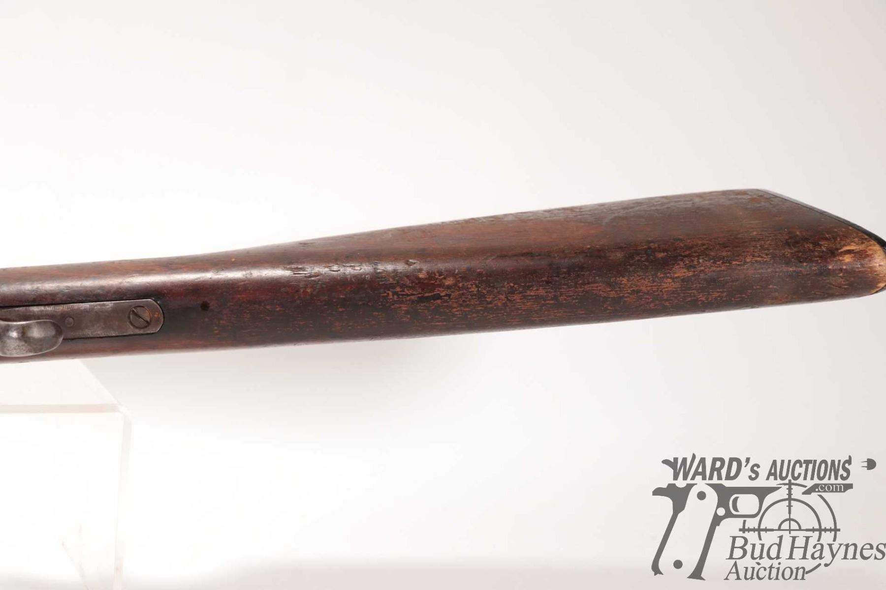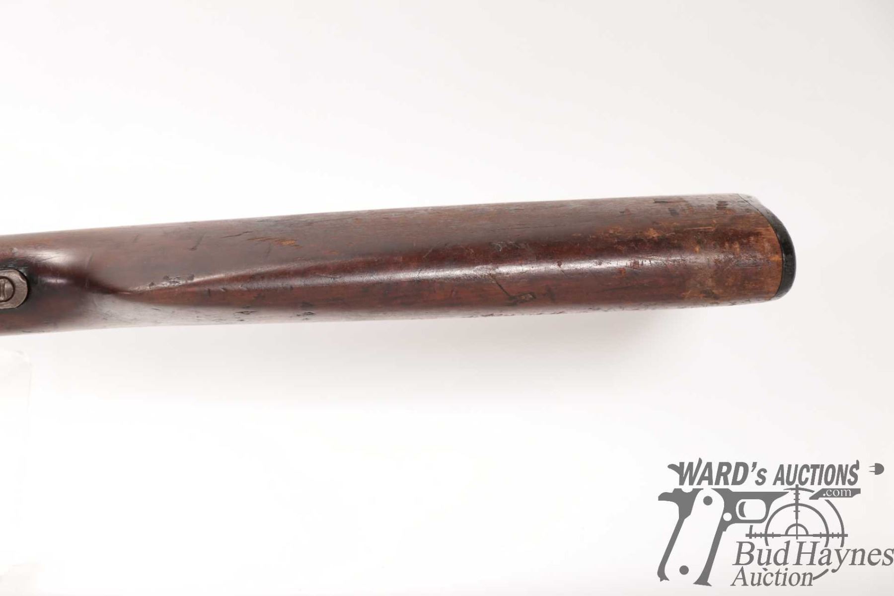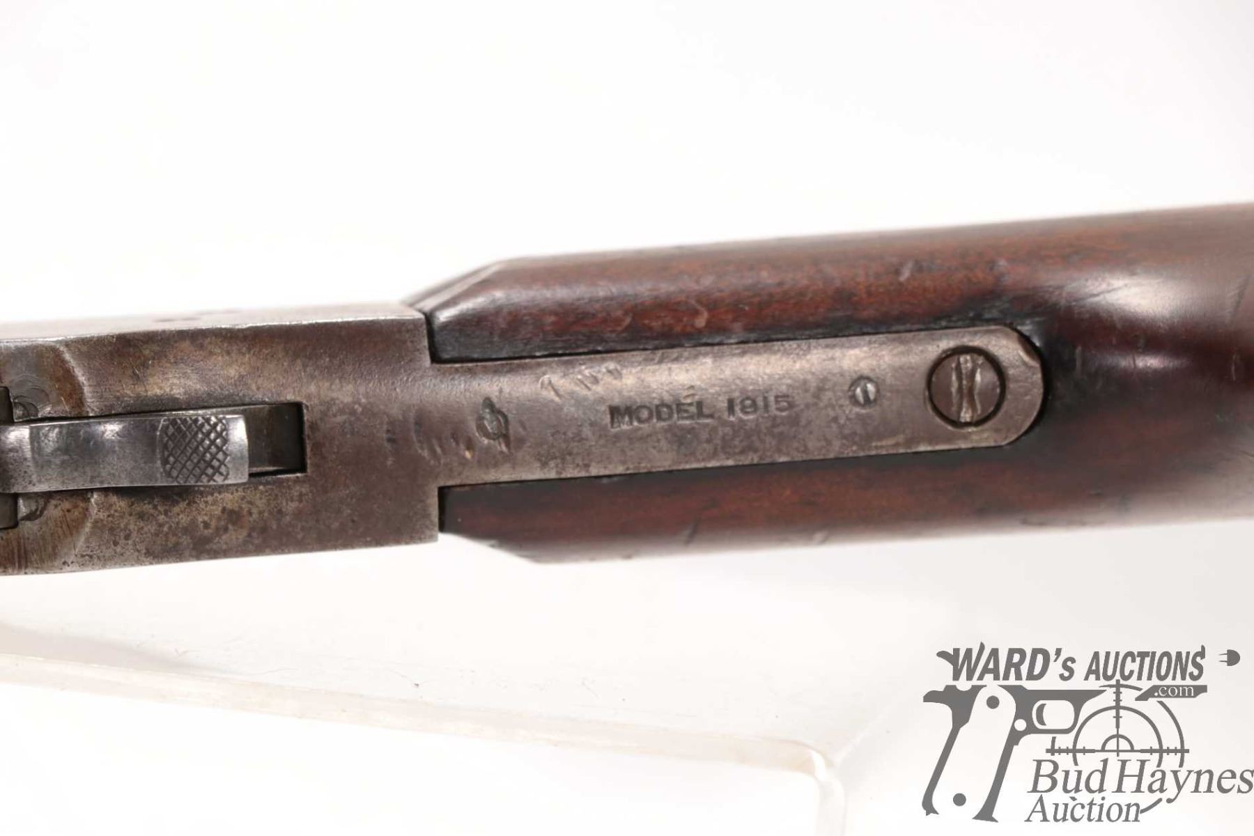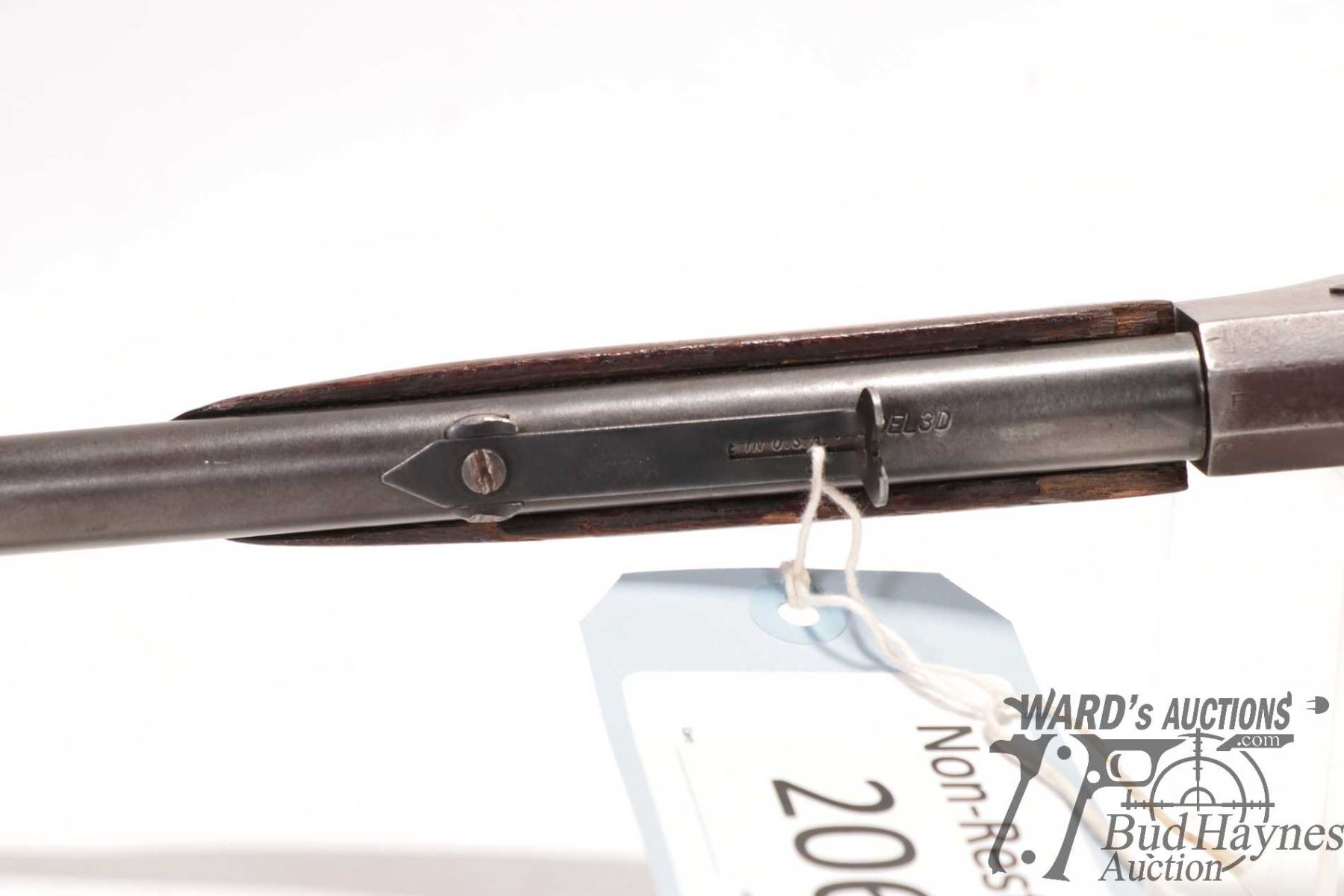Non-Restricted rifle Savage/ Stevens model 1915 Favorite/ 3D, 22 Single shot falling block, w/ bbl length 21 1/2" [Blued barrel and receiver. Fixed front and non-original rear sight. Smooth wooden stock with plastic butt plate. Action and trigger function albeit well worn and loose. Bluing worn leaving plum brown patina. Possibly some non-original screws. Sharpie writing on right side of stock. Slivers of forend missing. Nicks, dings and gouges and other use, handling and storage marks.] serial # J74, PAL required