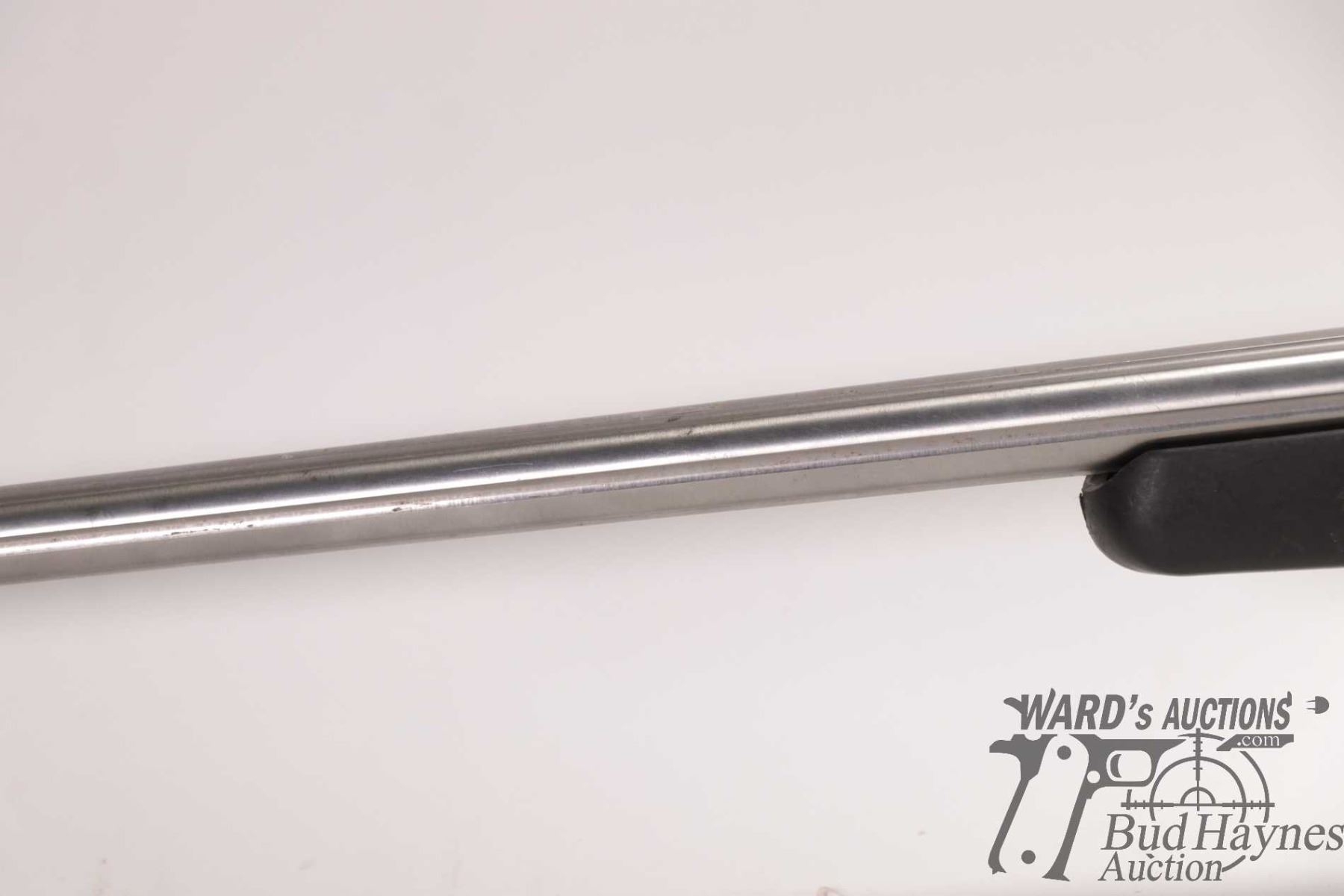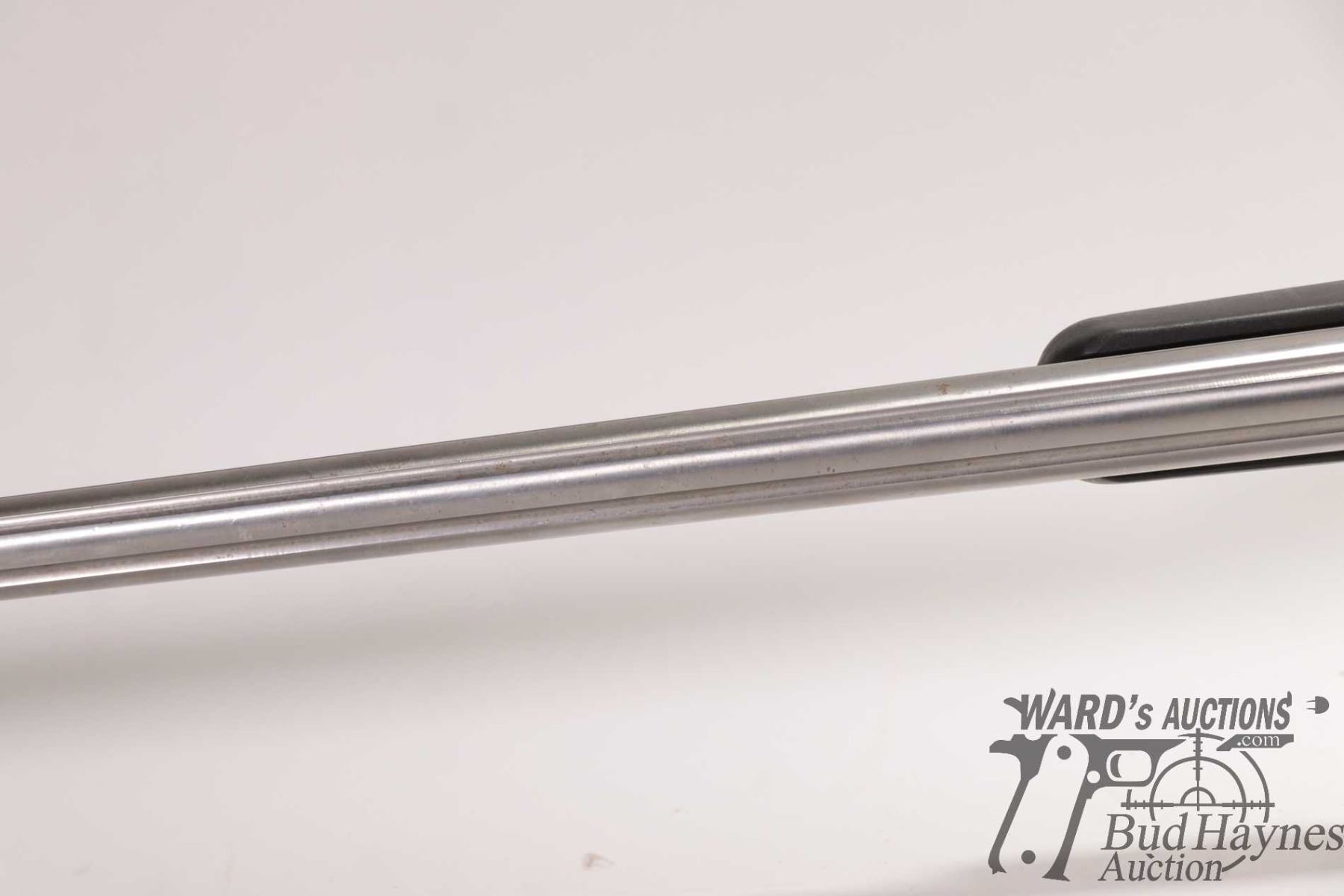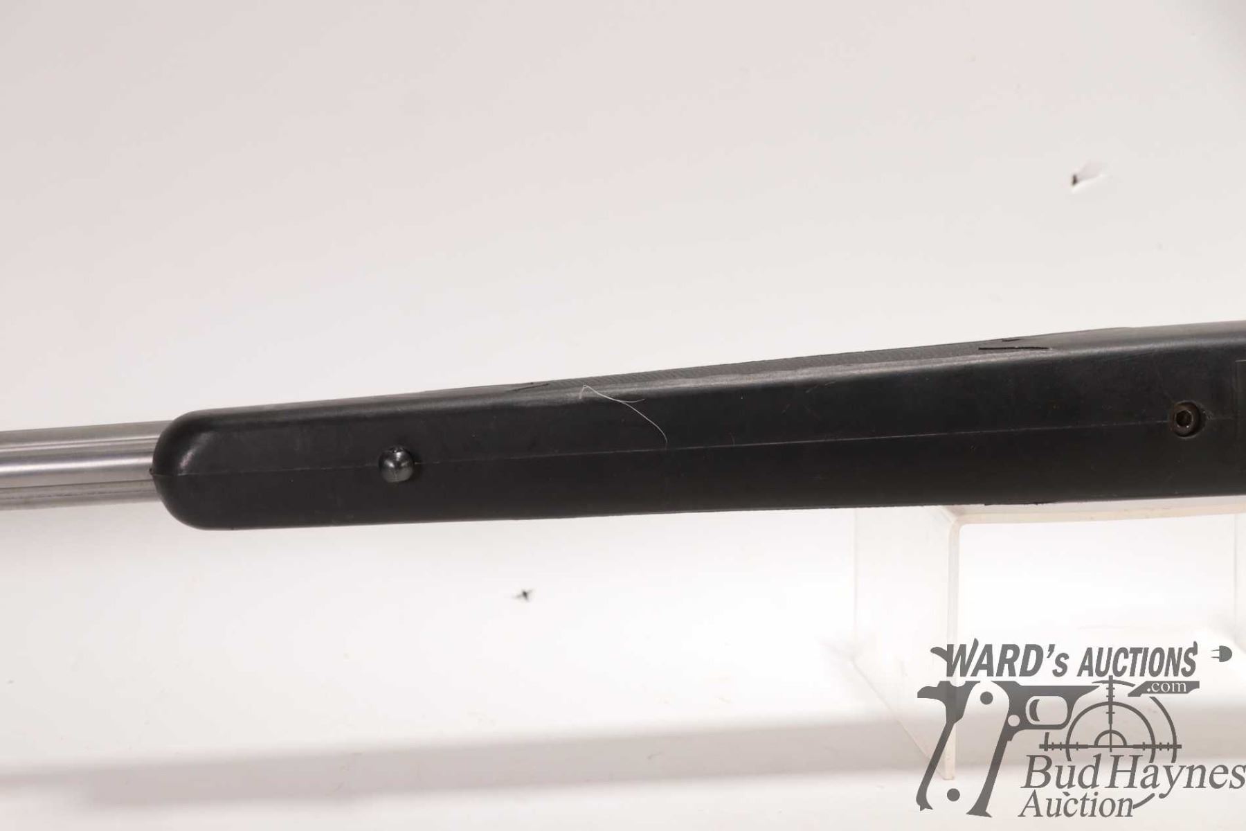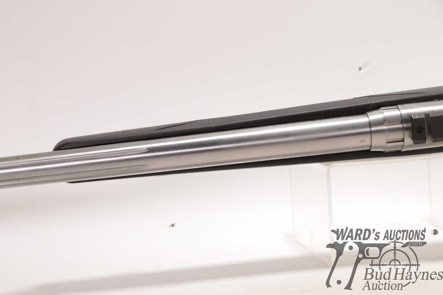Non-Restricted rifle Savage model 116, 300 Win Mag bolt action, w/ bbl length 24" [Stainless fluted barrel and receiver. No fixed sights. Fitted with scope bases. Internal blind box magazine. Black synthetic stock with recoil pad. Fitted with Nullifier flash hider style muzzle device, featuring outer sleeve to close or open ports however, sleeve is seized and had tooling marks from trying to operate it. Action functions well. Use, handling and storage marks on stock and metal.] serial # G241579, PAL required