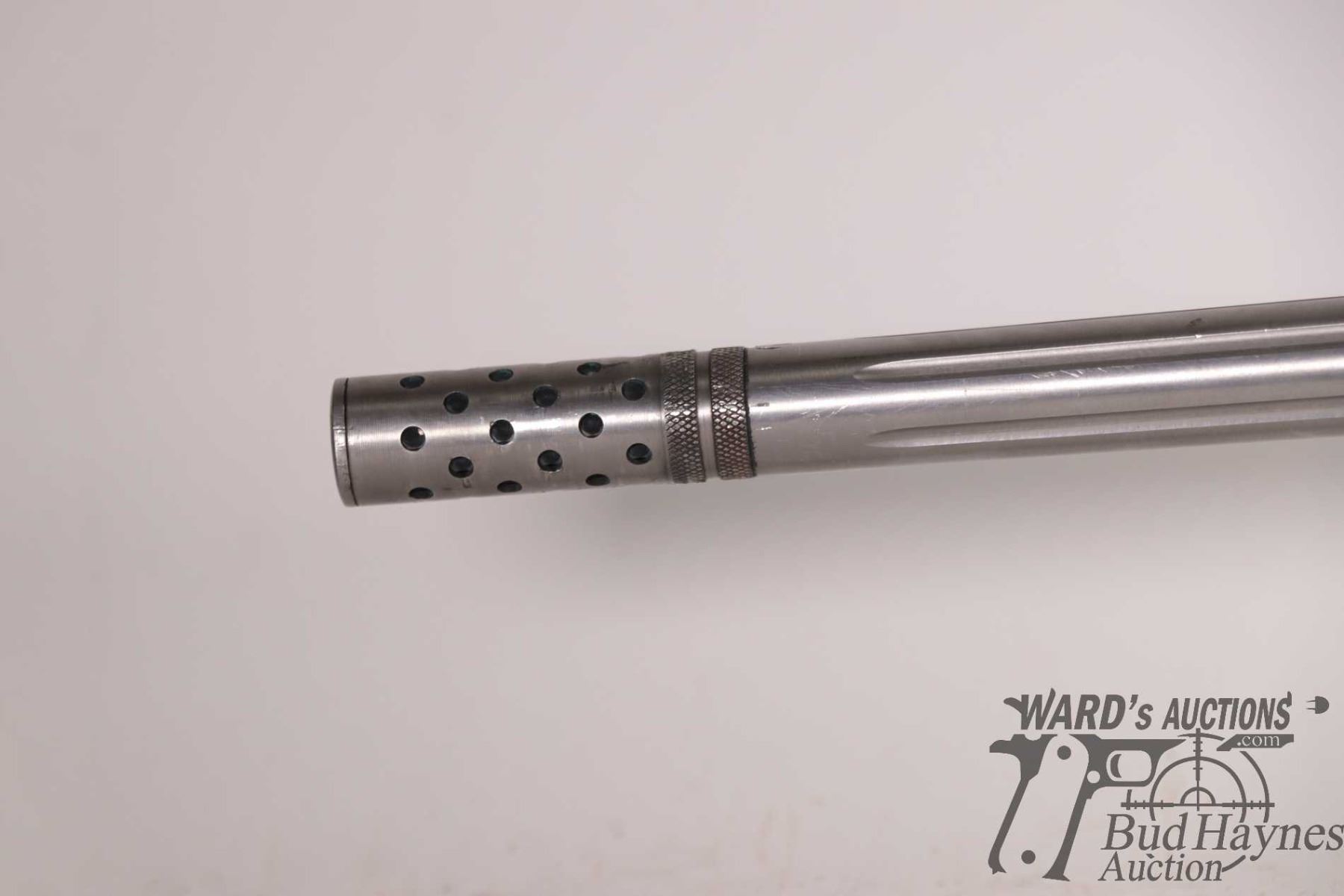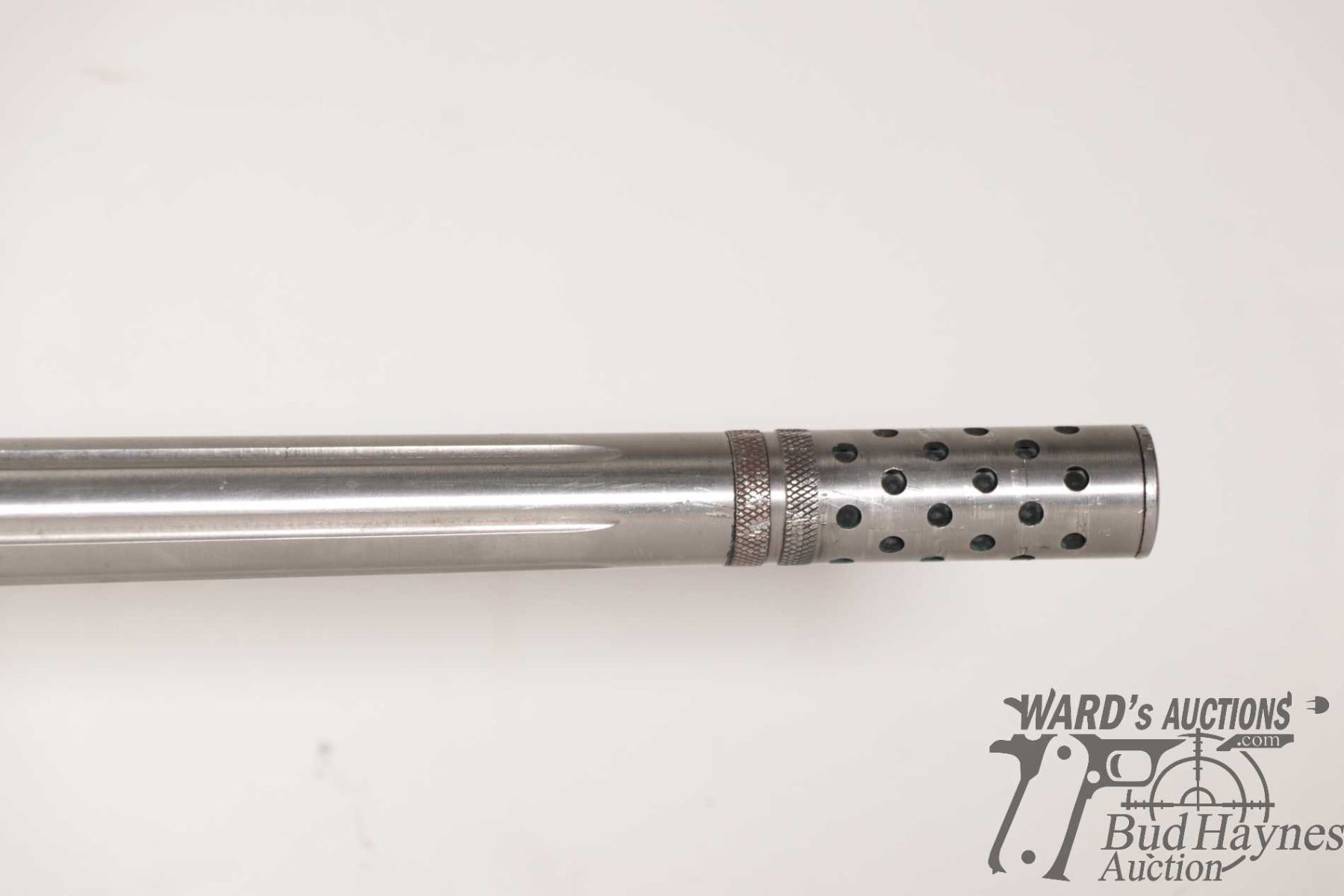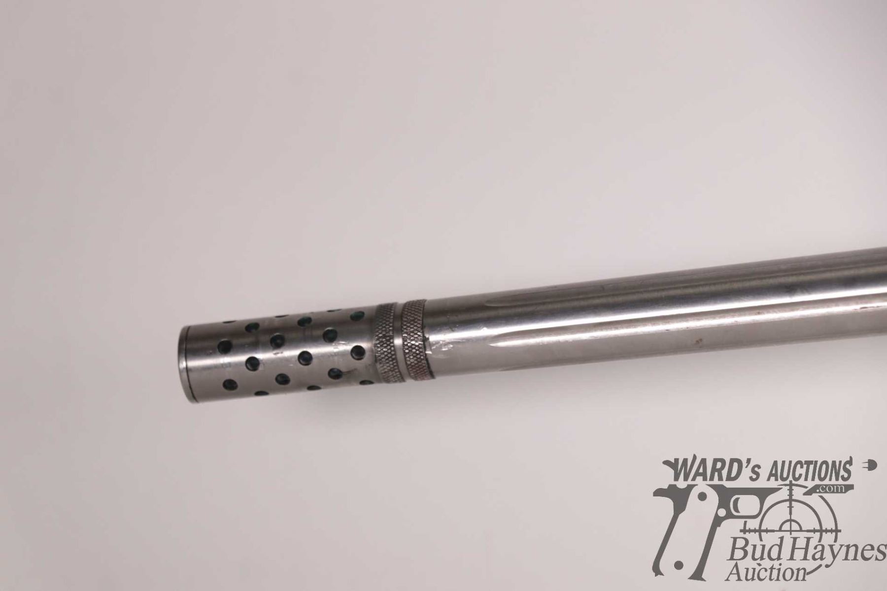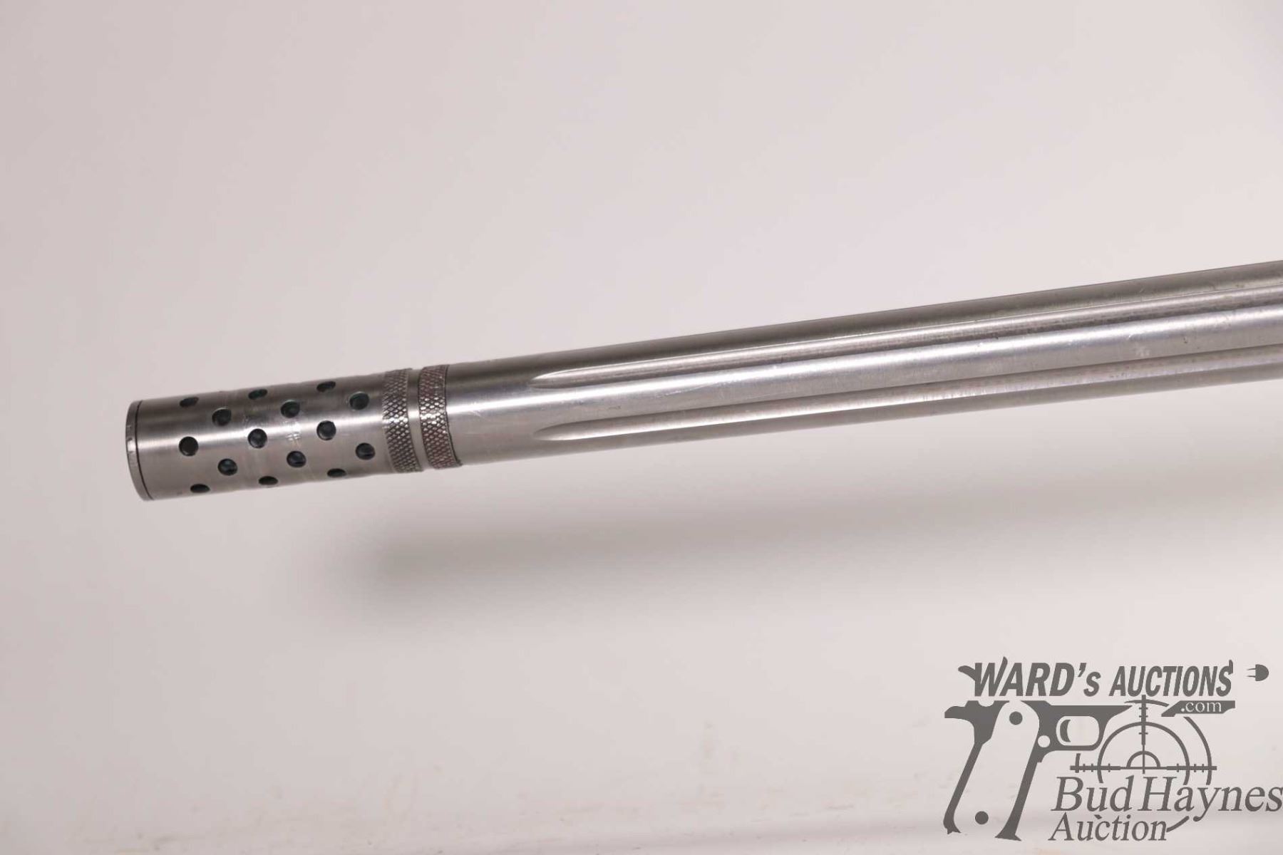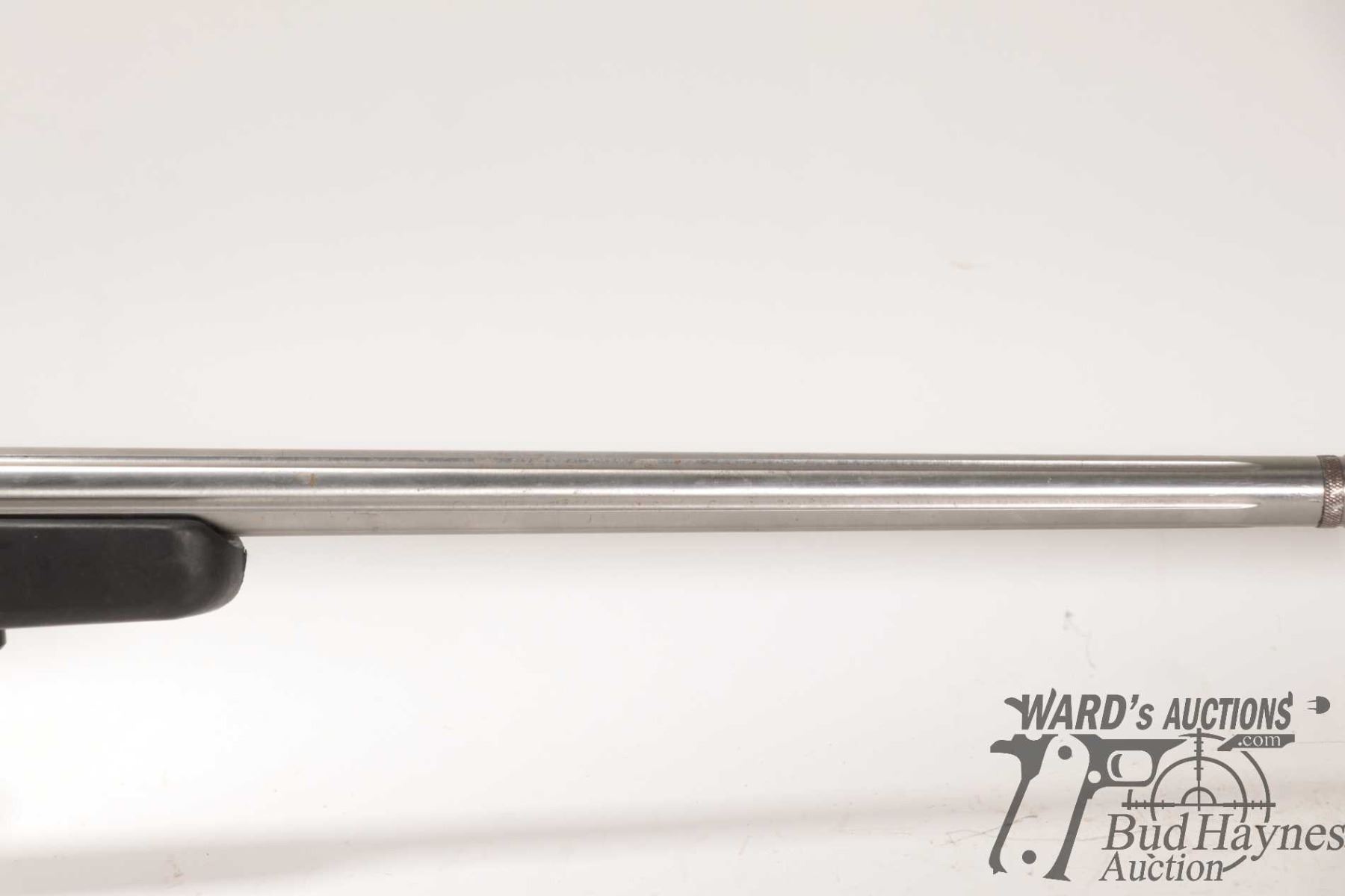 Non-Restricted rifle Savage model 116, 300 Win Mag bolt action, w/ bbl length 24" [Stainless fluted barrel and receiver. No fixed sights. Fitted with scope bases. Internal blind box magazine. Black synthetic stock with recoil pad. Fitted with Nullifier flash hider style muzzle device, featuring outer sleeve to close or open ports however, sleeve is seized and had tooling marks from trying to operate it. Action functions well. Use, handling and storage marks on stock and metal.] serial # G241579, PAL required