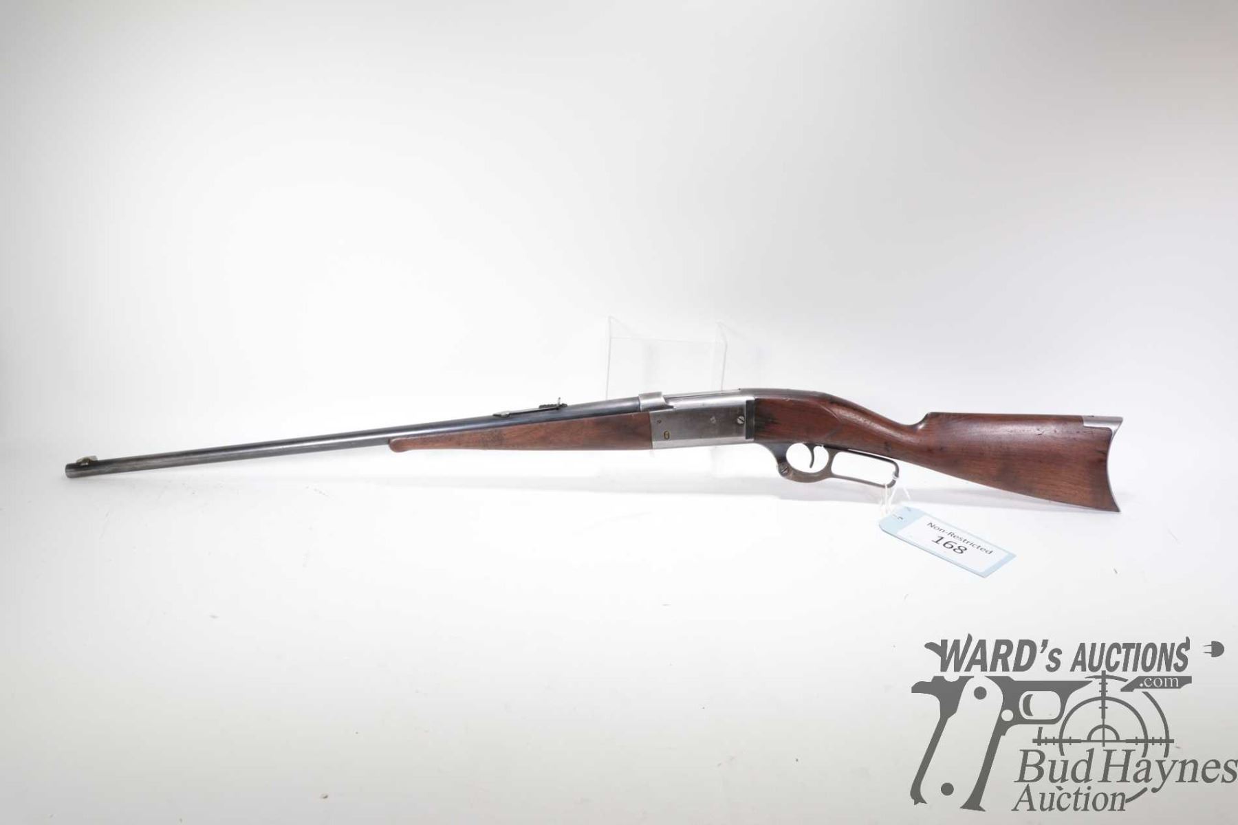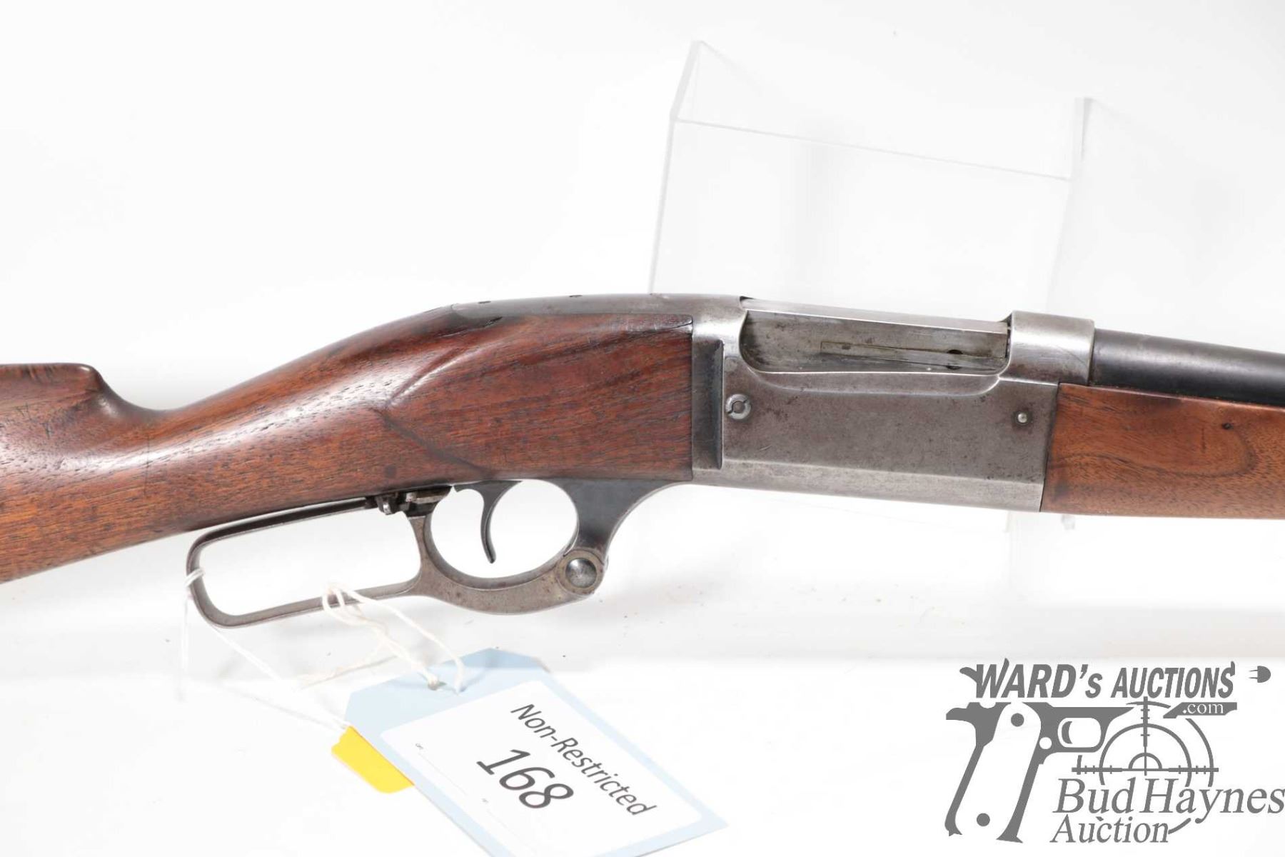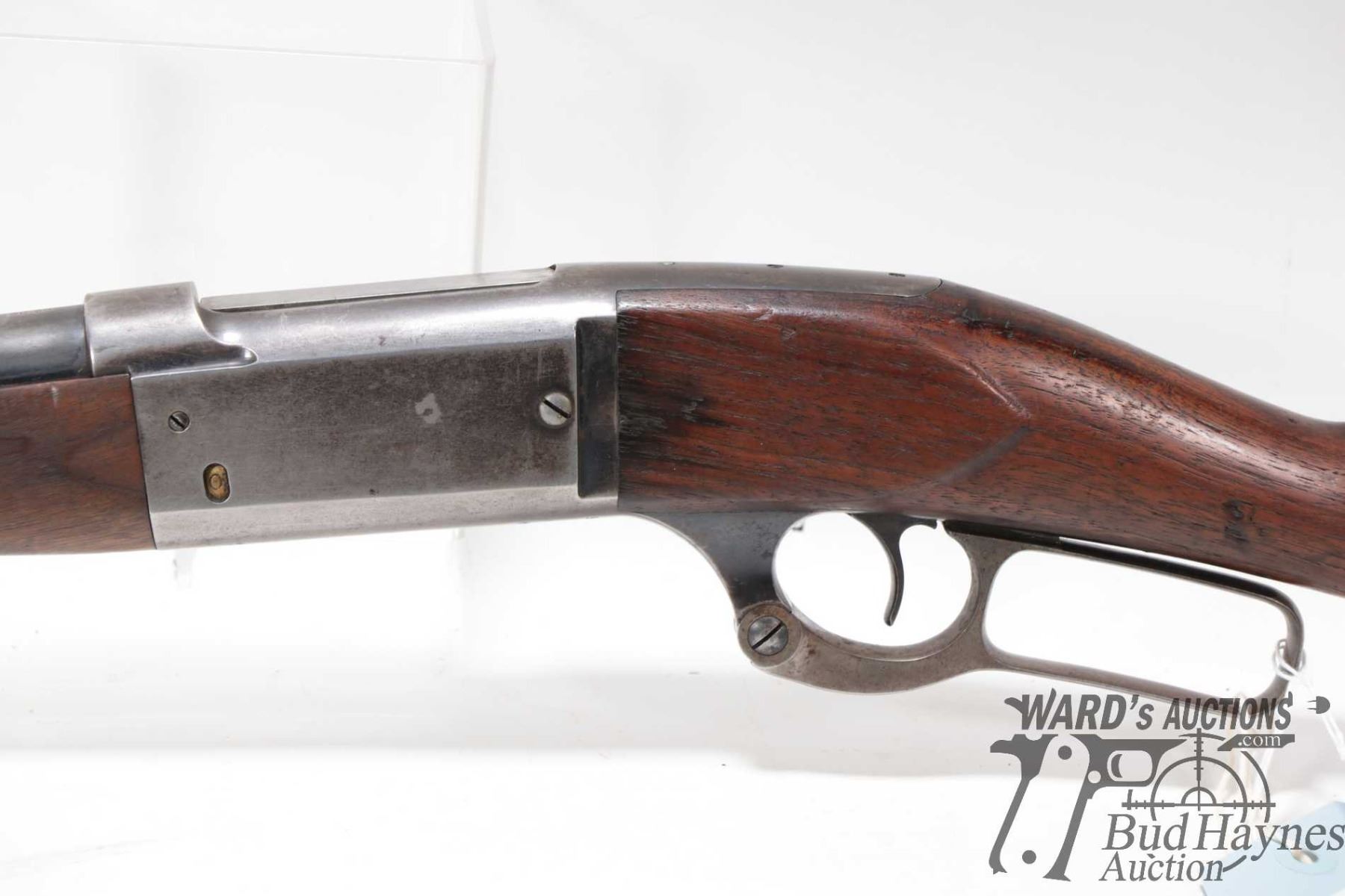 Non-Restricted rifle Savage model 1899, 33-30 lever action, w/ bbl length 26" [Blued barrel and receiver. Fixed front and adjustable rear sights. Smooth wooden stock with curved metal butt plate. Mechanically appears to function reasonably well. Rear sight adjuster set screw is missing. Bluing worn in use and handling areas. Some minor pitting. Cracks in stock leading back from upper and lower tangs. Nicks and dings and other use, handling and storage marks.] serial # 118166, PAL required