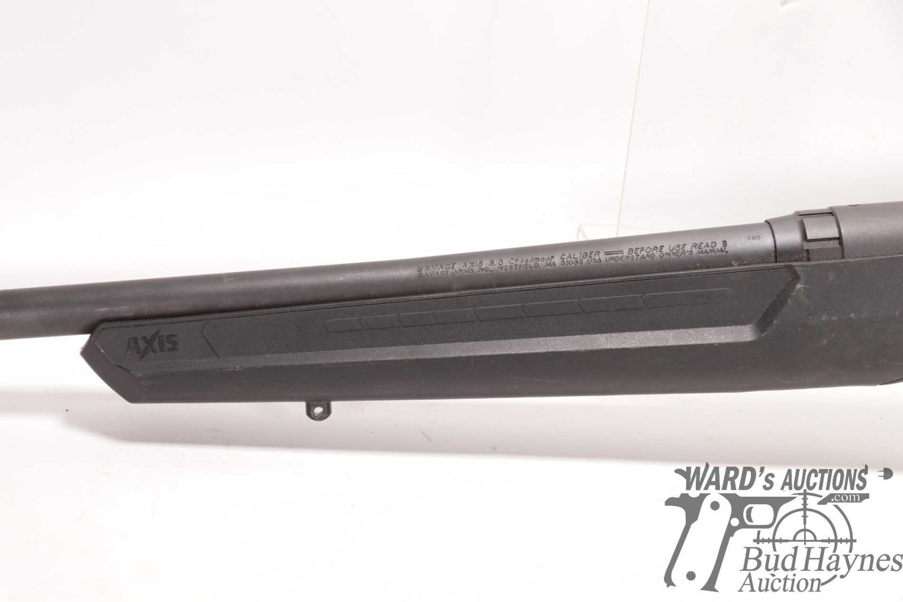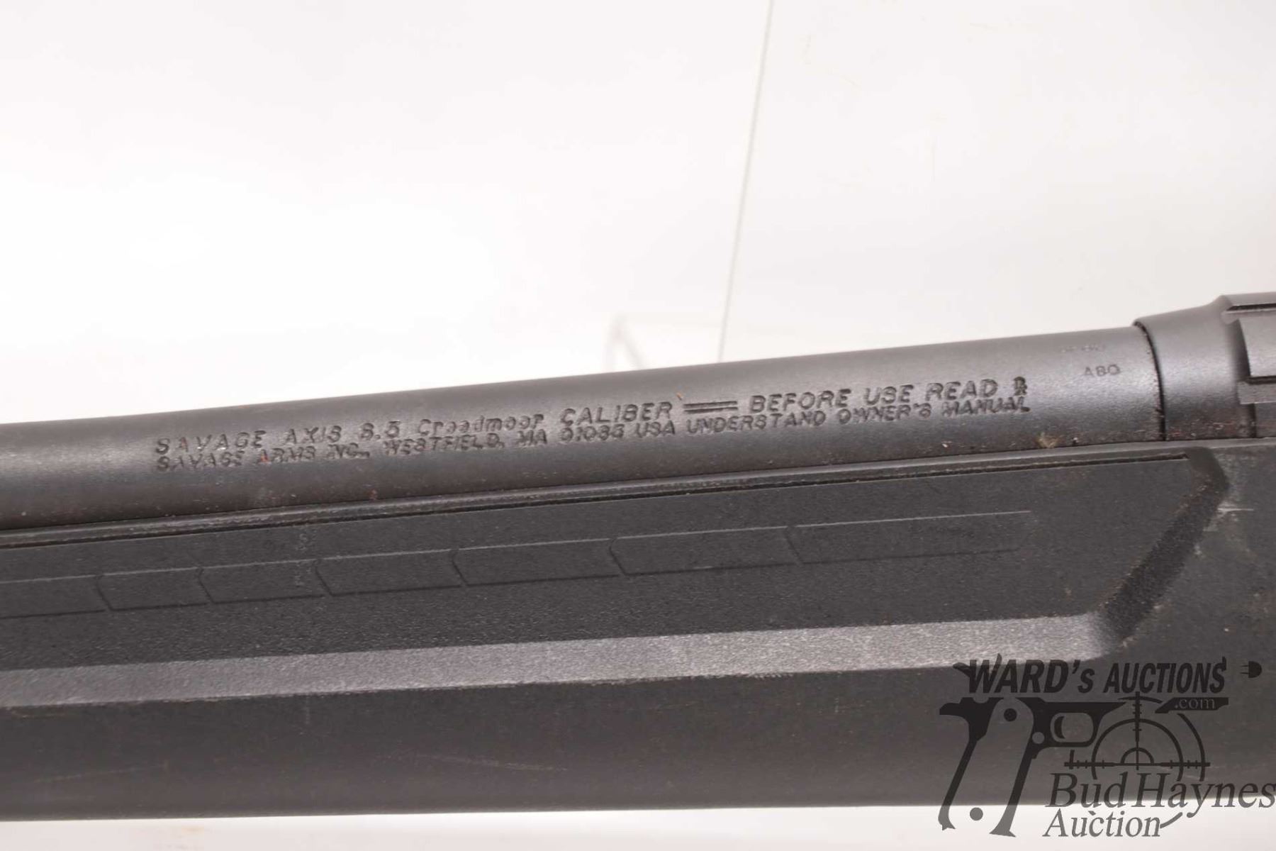 Non-Restricted rifle Savage model AXIS, 6.5 Creedmoor bolt action, w/ bbl length 22" [Satin black finish on barrel and receiver. No bolt or magazine included. Black synthetic stock with spacer and recoil pad. Some surface rust and other use, handling and storage marks.] serial # P343138, PAL required