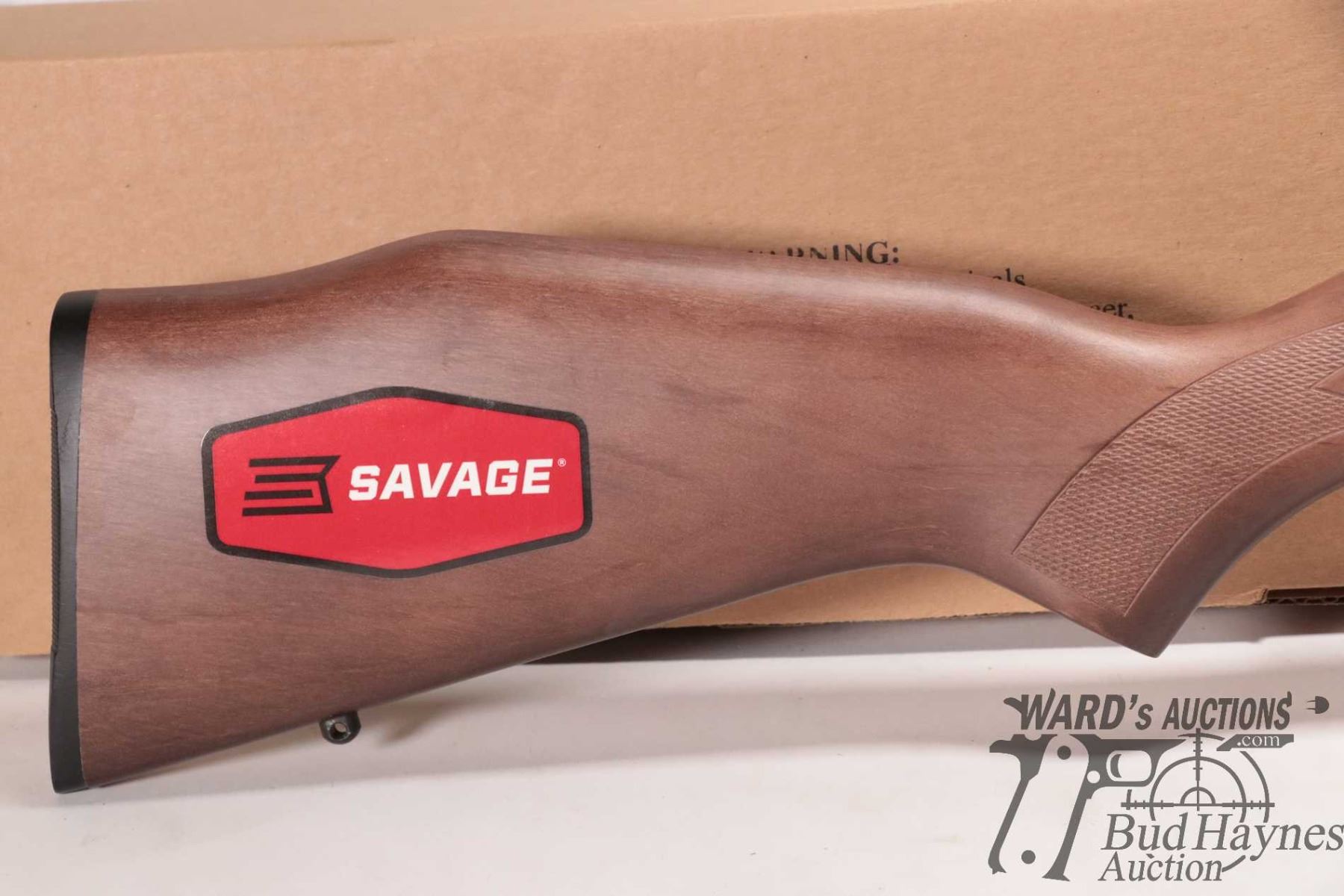 Non-Restricted rifle Savage model MK II Left hand, .22 LR bolt action, w/ bbl length 21" [Satin black Parkerized finish on barrel and receiver. Fixed front and adjustable rear sights. Receiver tapped for optic mount. Includes one detachable box magazine. Original cardboard box and manual. Checkered wooden stock with plastic butt plate. Mechanically and aesthetically appear excellent. Obviously had little to no use with minor use, handling and storage marks.] serial # 2918044, PAL required