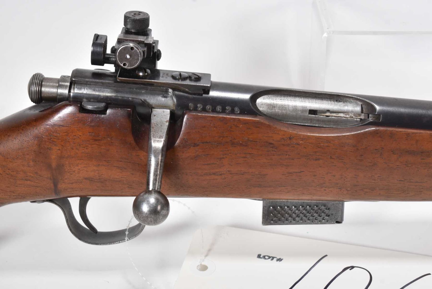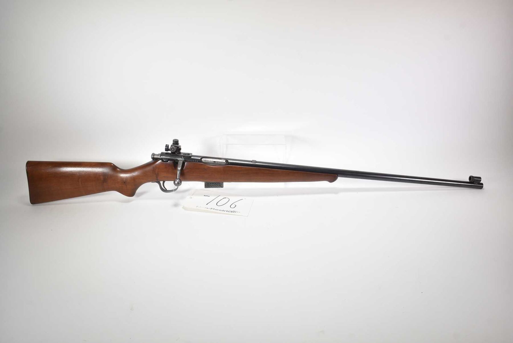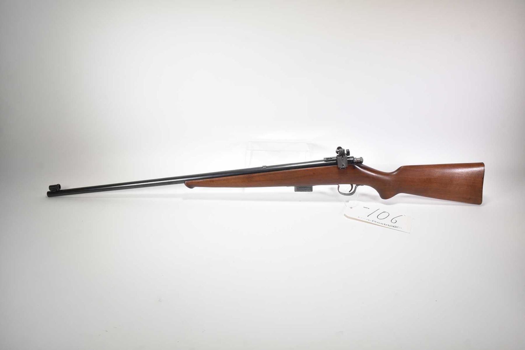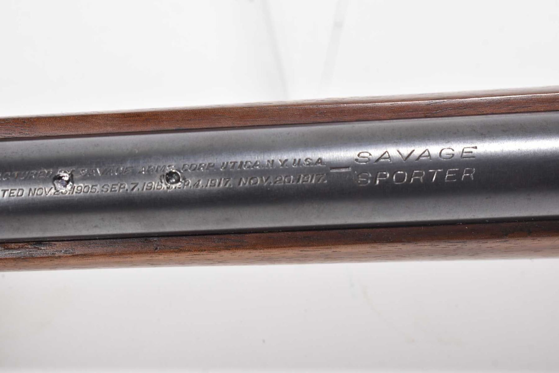 Non-Restricted rifle Savage model Sporter, 25-20 Mag fed bolt action, w/ bbl length 24 1/2" [Blued barrel with fixed target front sight and Parker target rear sight, smooth wooden stock, logo metal butt plate, barrel previously drilled and tapped. Includes one box magazine. Storage use and handling marks on wood and metal.] serial # 120625, PAL required