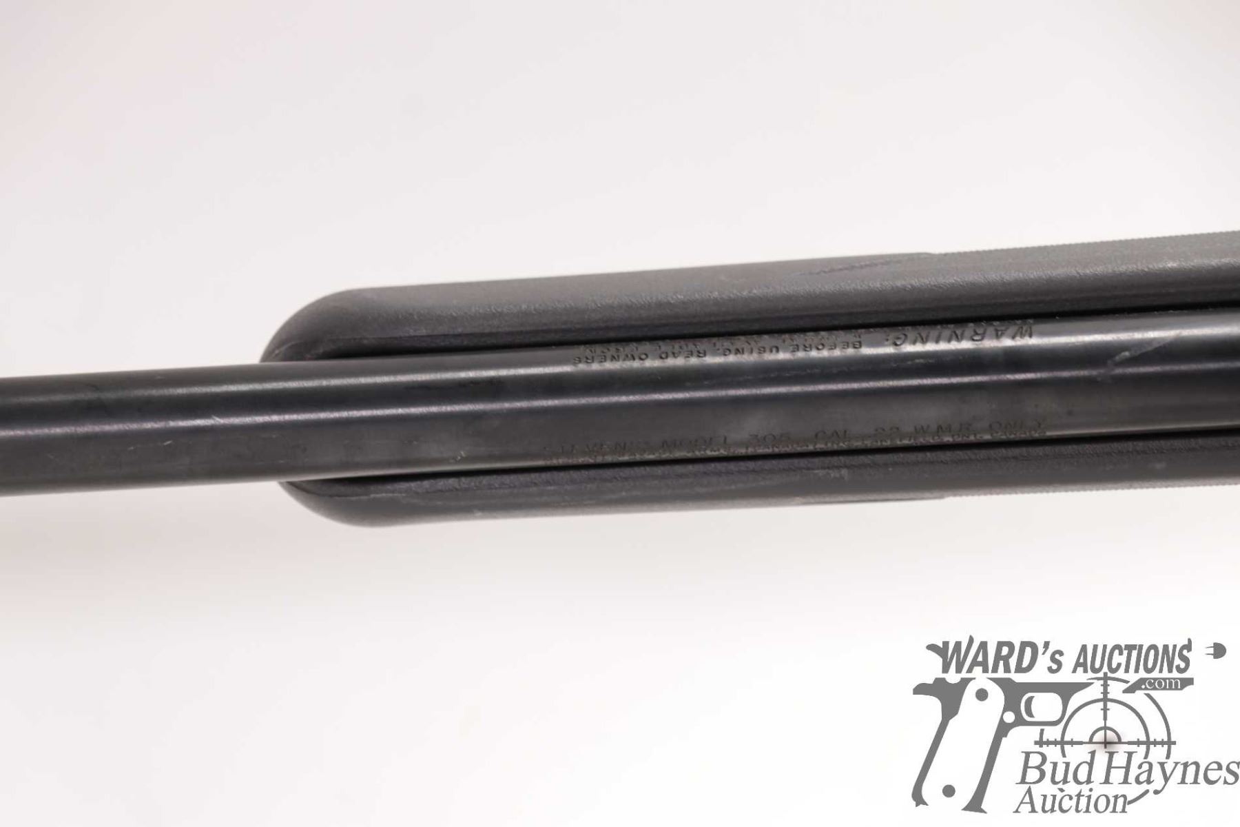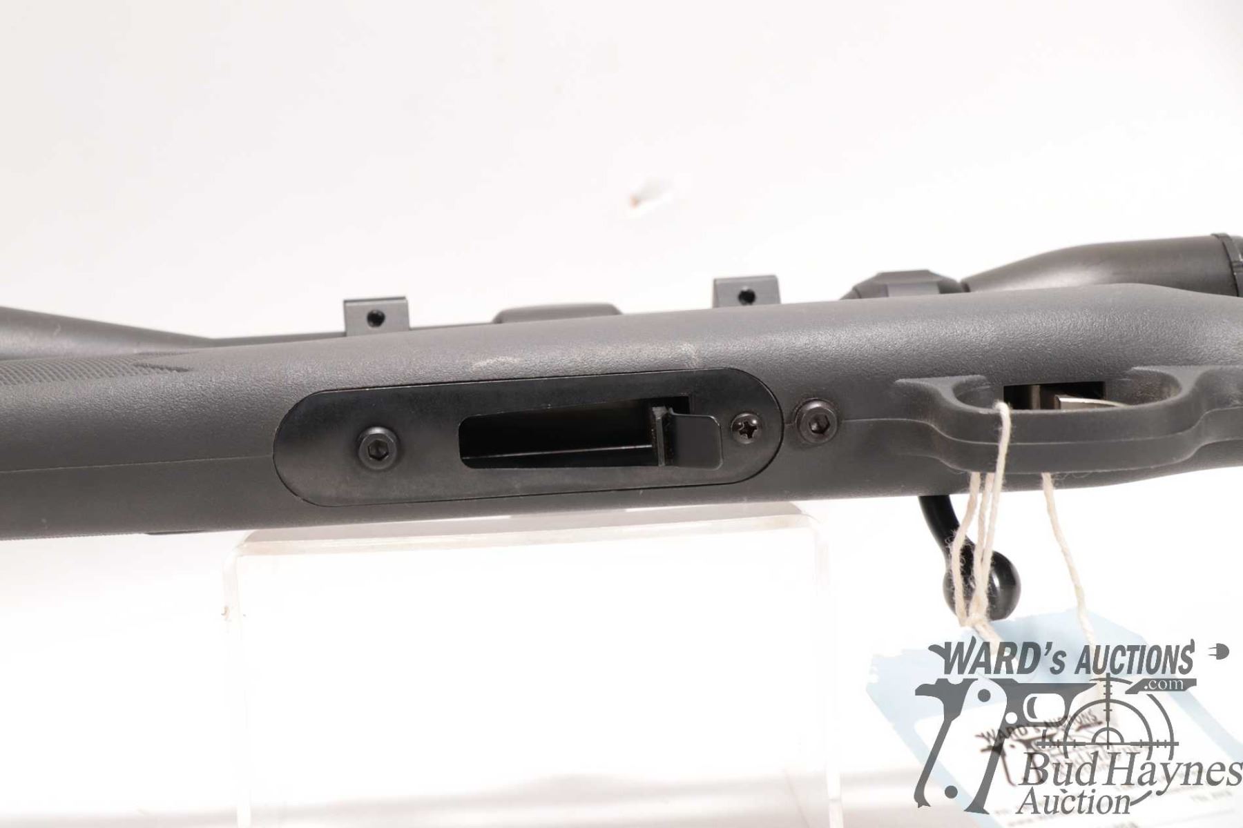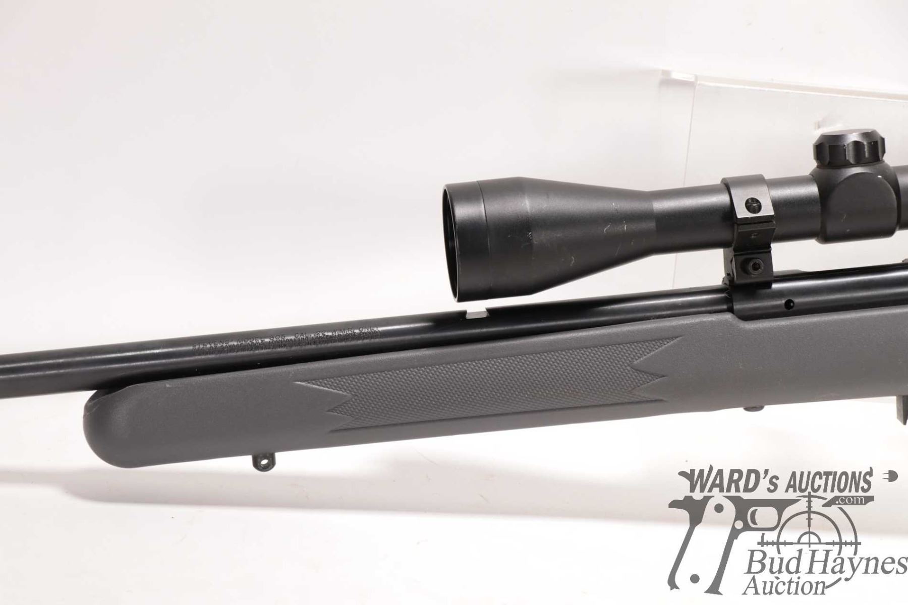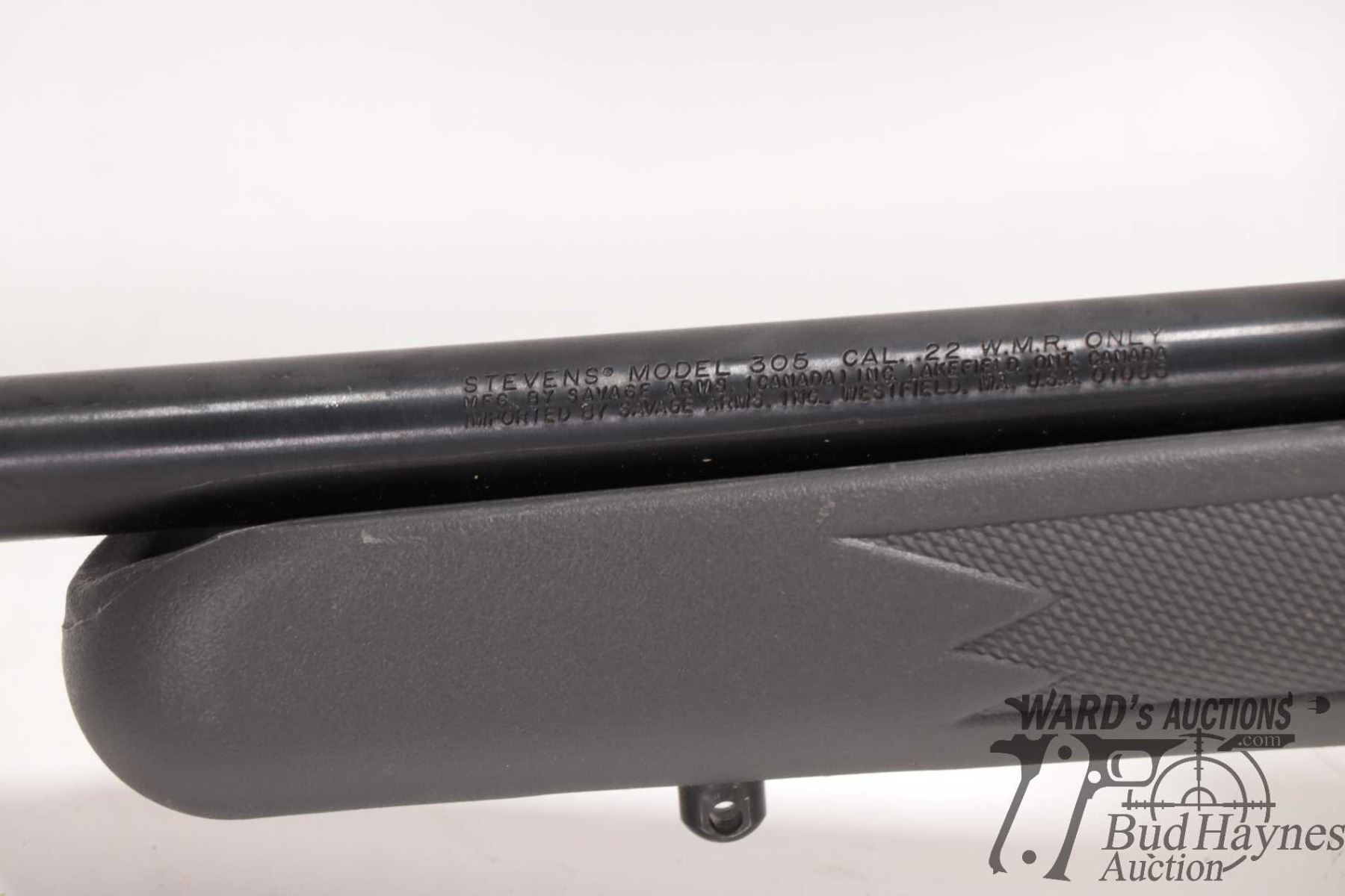 Non-Restricted rifle Stevens model 305, 22 WMR bolt action, w/ bbl length 20 1/2" [Blued finish. Fixed front sight and rear sight removed. Fitted with 3-9X40 scope. No detachable box magazine included. Grey synthetic stock with branded plastic butt plate. Action and trigger appear to function well. Bluing worn in use and handling areas and other use, handling and storage marks.] serial # 0851958, PAL required