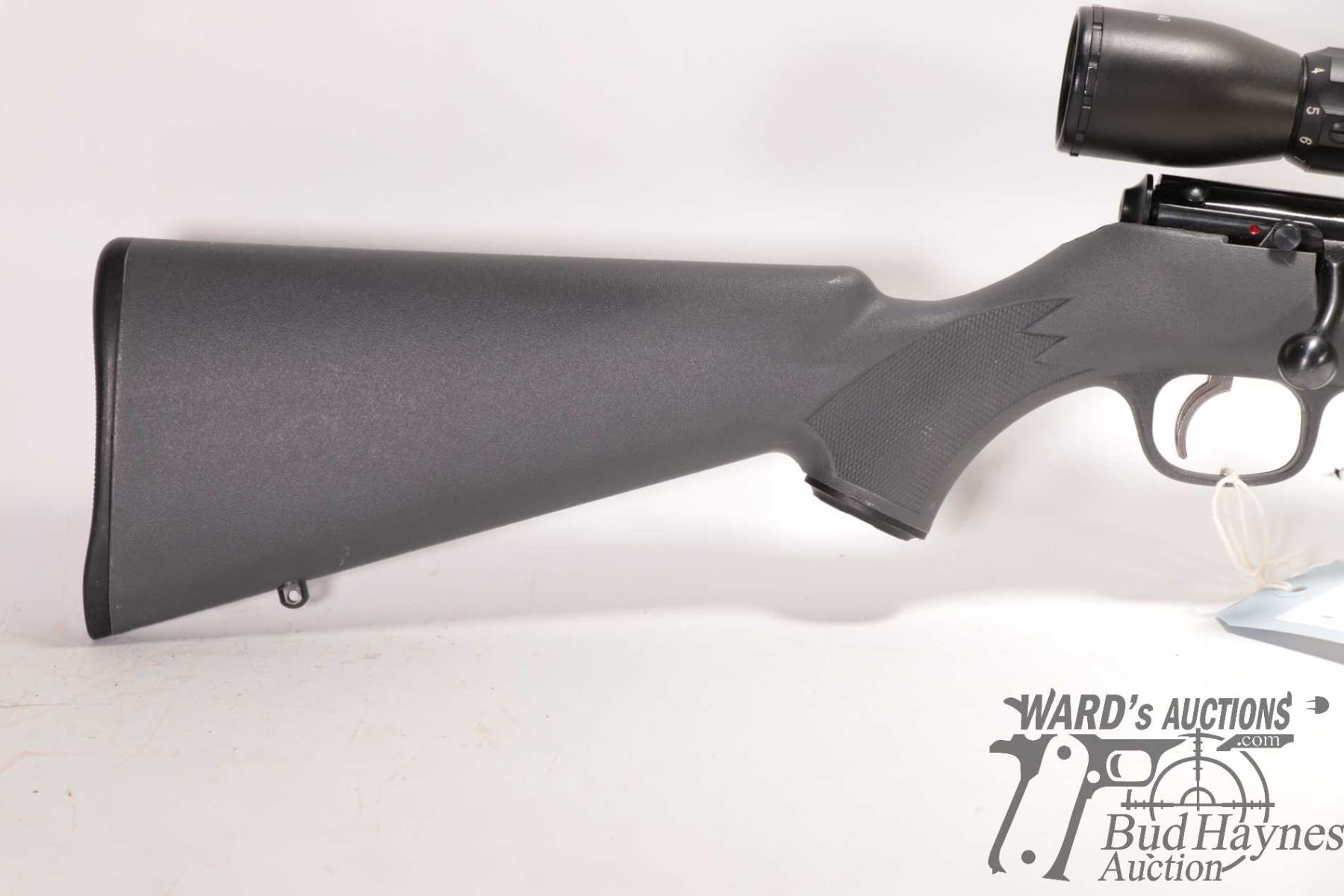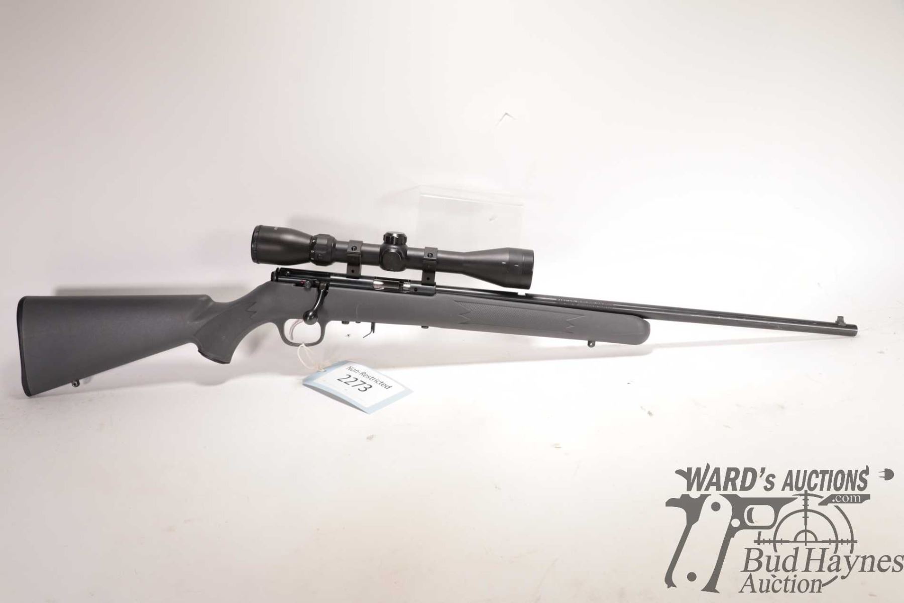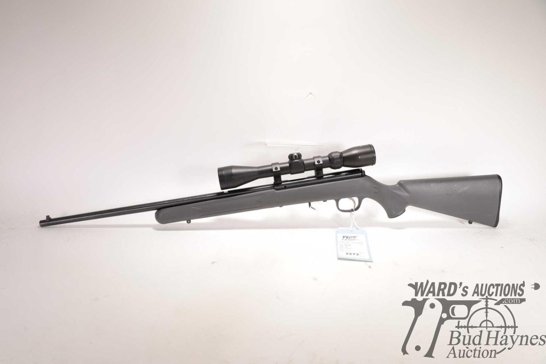 Non-Restricted rifle Stevens model 305, 22 WMR bolt action, w/ bbl length 20 1/2" [Blued finish. Fixed front sight and rear sight removed. Fitted with 3-9X40 scope. No detachable box magazine included. Grey synthetic stock with branded plastic butt plate. Action and trigger appear to function well. Bluing worn in use and handling areas and other use, handling and storage marks.] serial # 0851958, PAL required