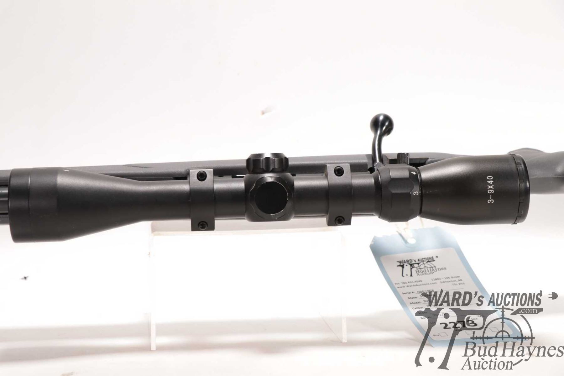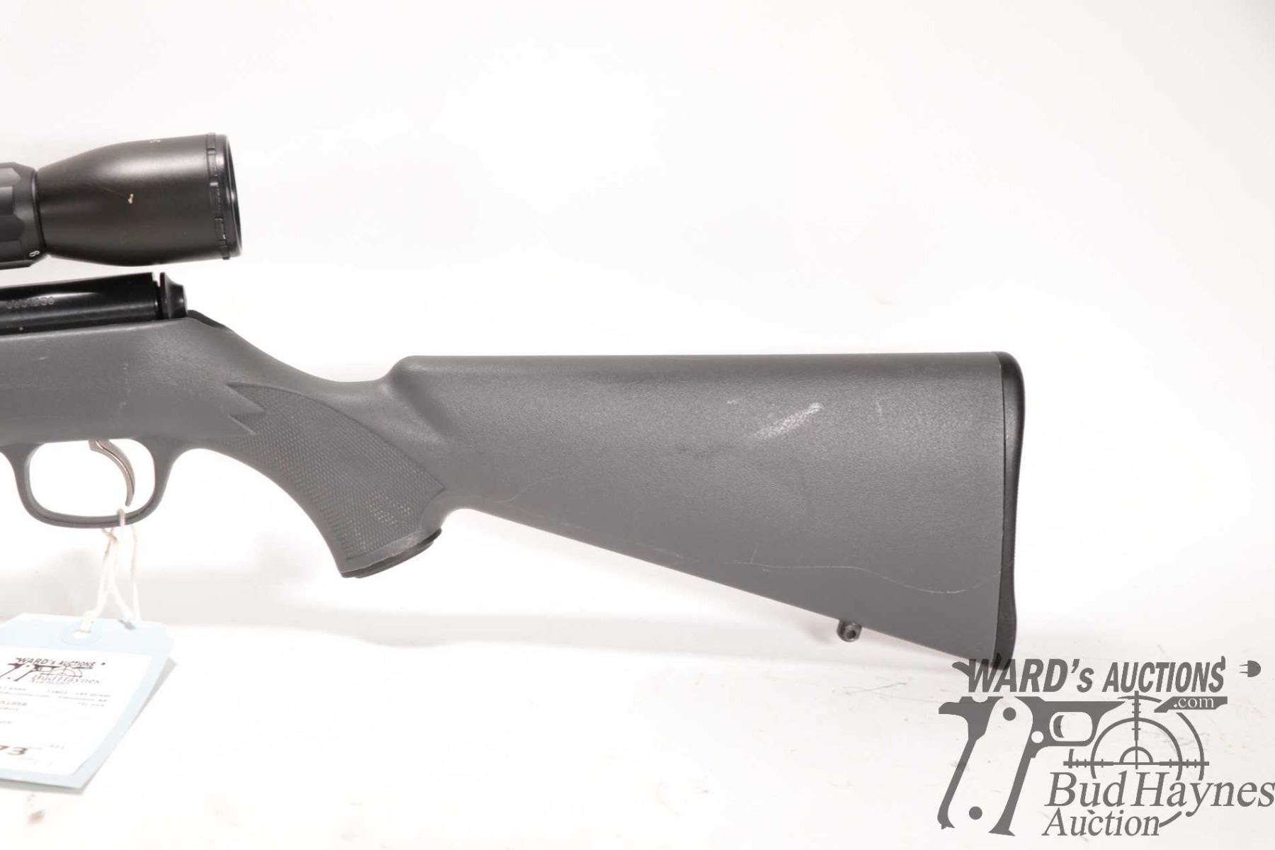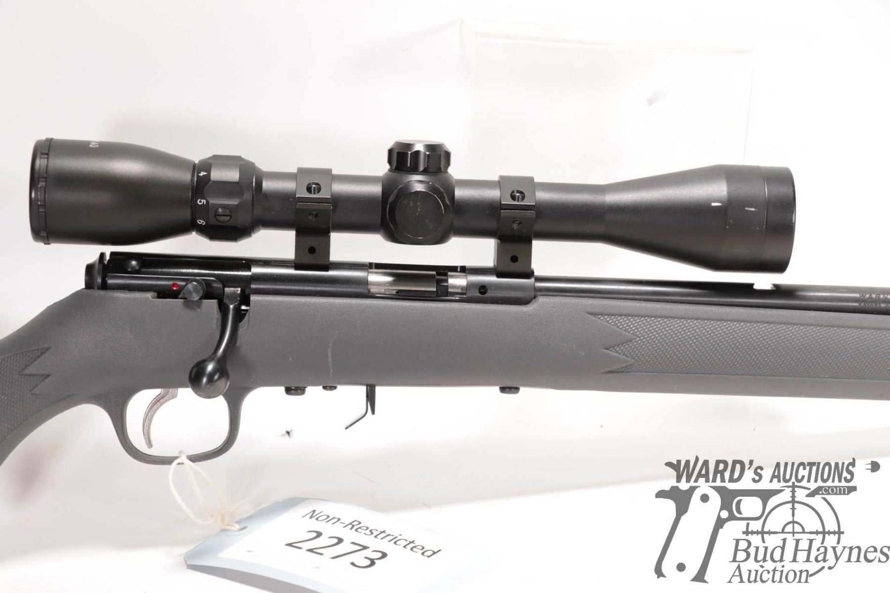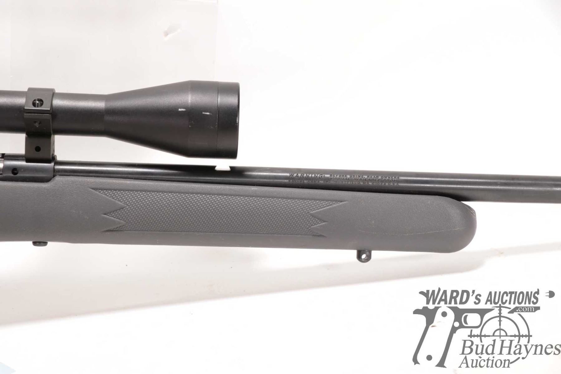 Non-Restricted rifle Stevens model 305, 22 WMR bolt action, w/ bbl length 20 1/2" [Blued finish. Fixed front sight and rear sight removed. Fitted with 3-9X40 scope. No detachable box magazine included. Grey synthetic stock with branded plastic butt plate. Action and trigger appear to function well. Bluing worn in use and handling areas and other use, handling and storage marks.] serial # 0851958, PAL required