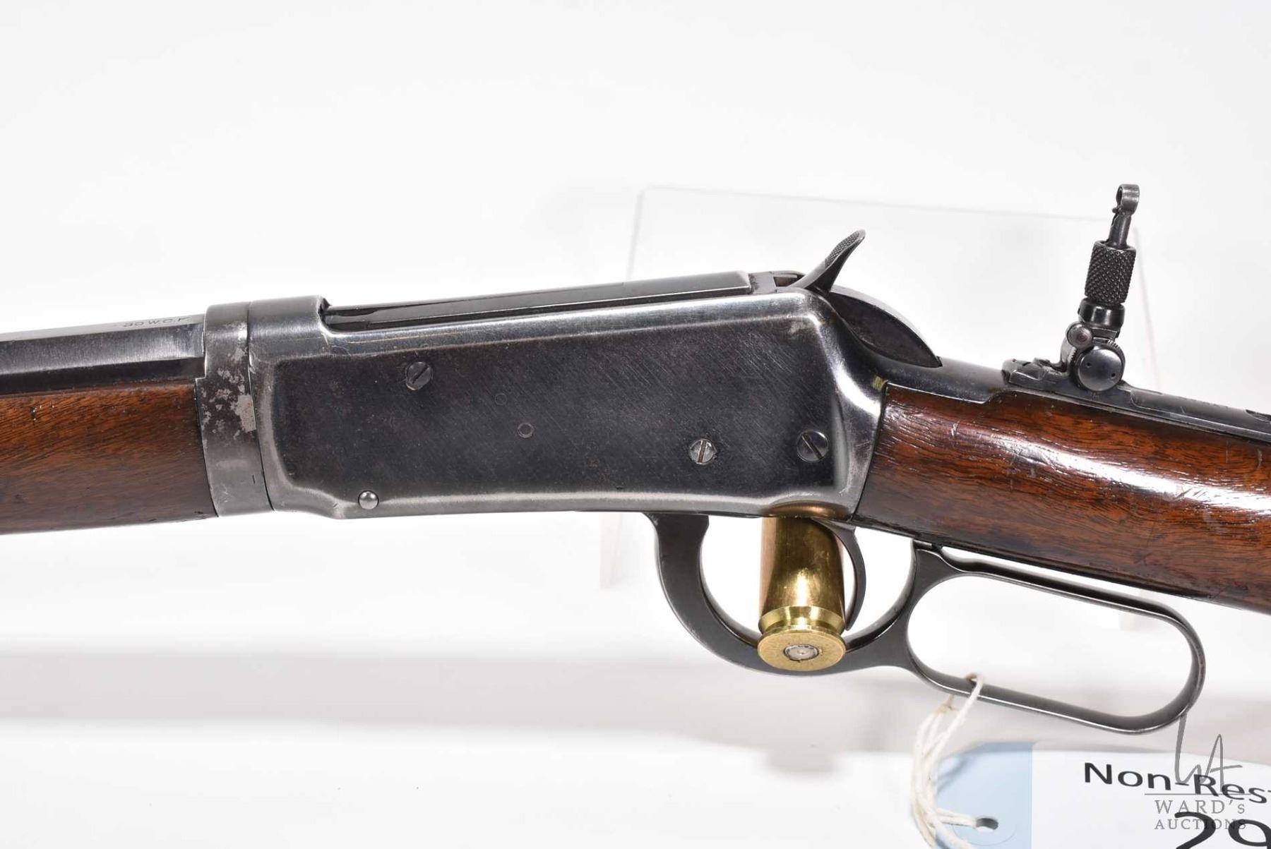 Non-Restricted rifle Winchester model 1894 (1903) Takedown, .30 WCF (30-30) lever action, w/ bbl length 20" [Blued octagonal barrel, receiver with full length tube. Fixed front and adjustable rear sights plus Lyman tang. Smooth wooden stock and forend with curved metal butt plate. Bluing worn in use and handling areas. Action and trigger feel smooth and lock up is positive. Use, handling and storage marks on wood and metal.] serial # 198874,