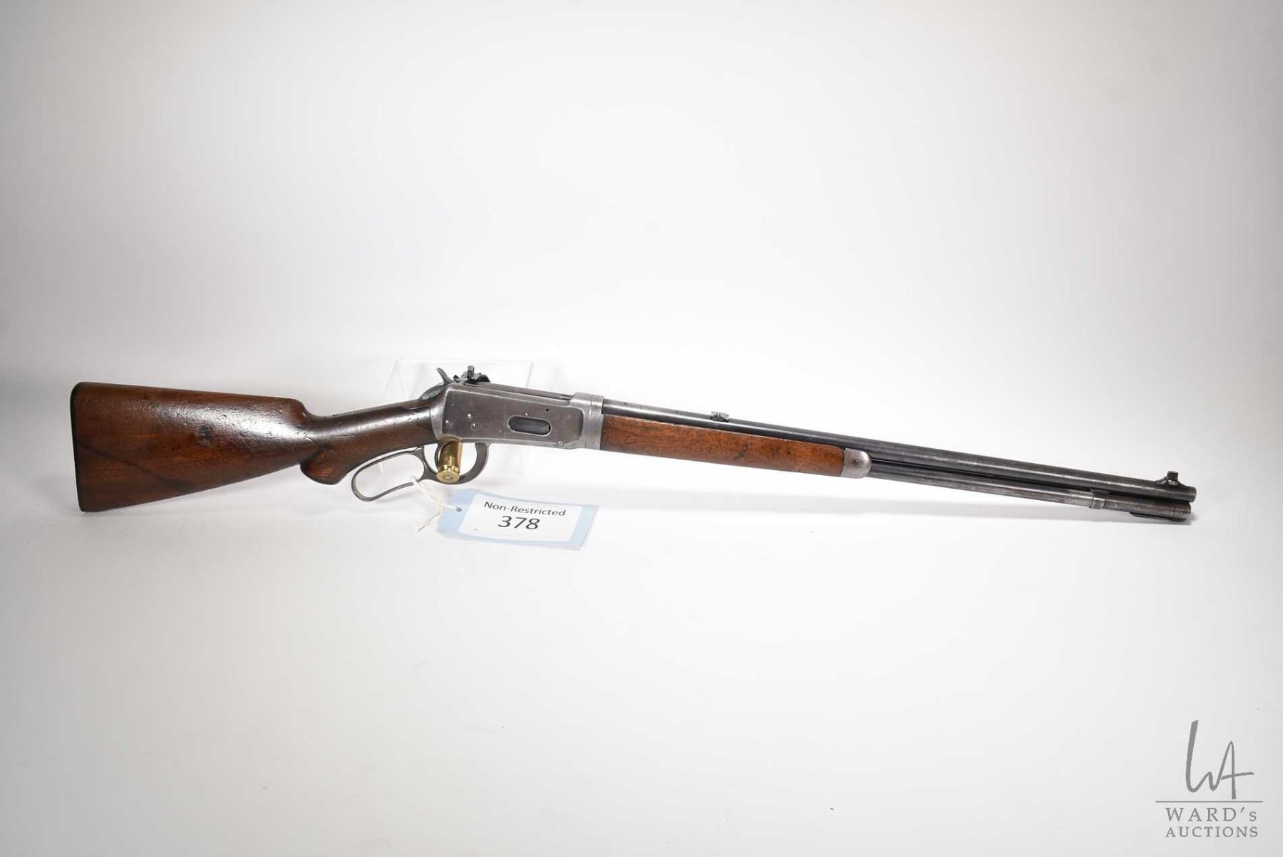 Non-Restricted rifle Winchester model 1894 Takedown, .30 WCF (30-30) lever action, w/ bbl length 22" [Blued round, receiver and full length tube. Fixed front, two position rear and side mount Lyman adjustable rear sight. Smooth wooden stock and forend. Branded butt plate. Bluing worn in use and handling area, especially on receiver and lever. Action and trigger cycle reasonably smoothly. Use, handling and storage marks to wood and metal.] serial # 480843, PAL required