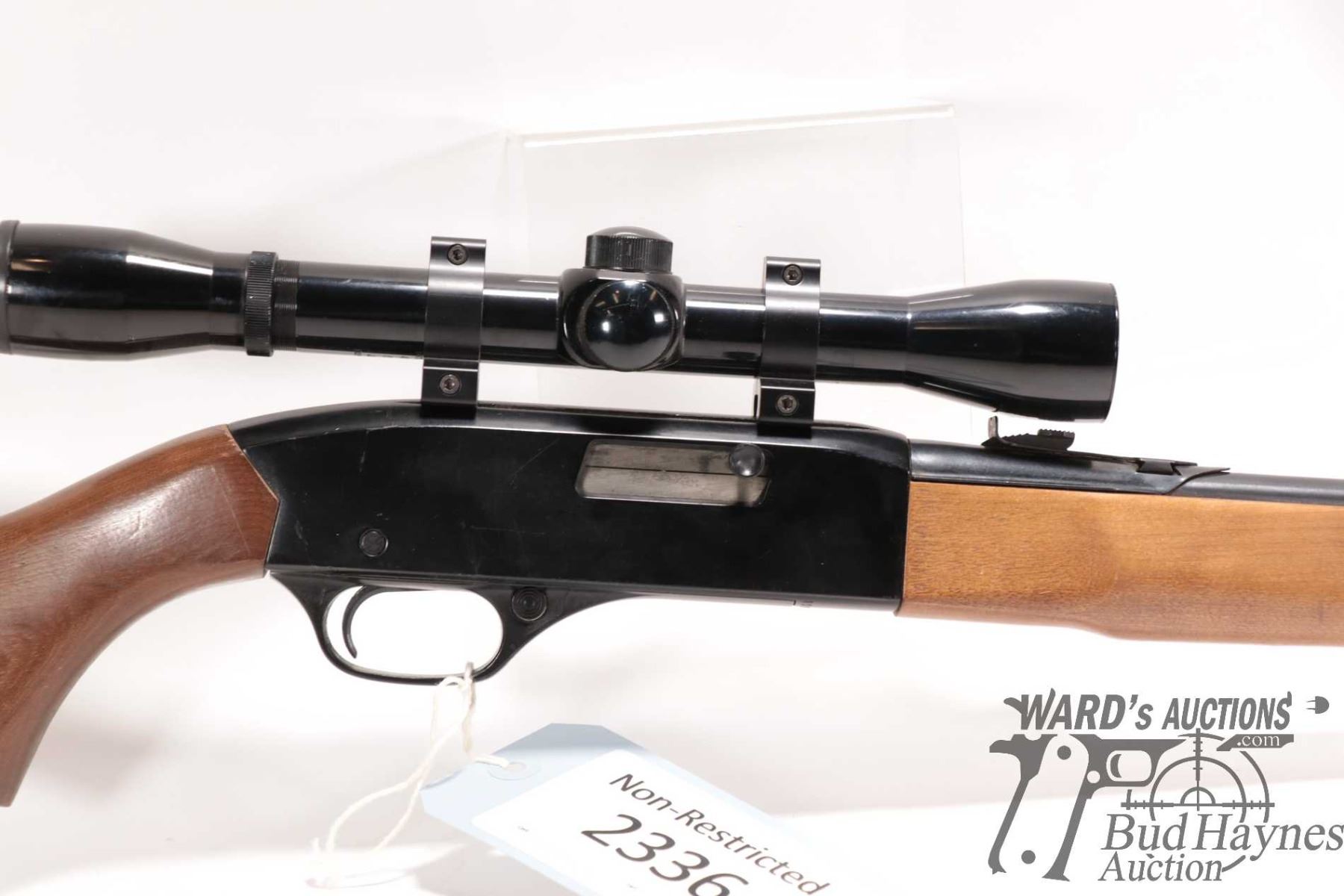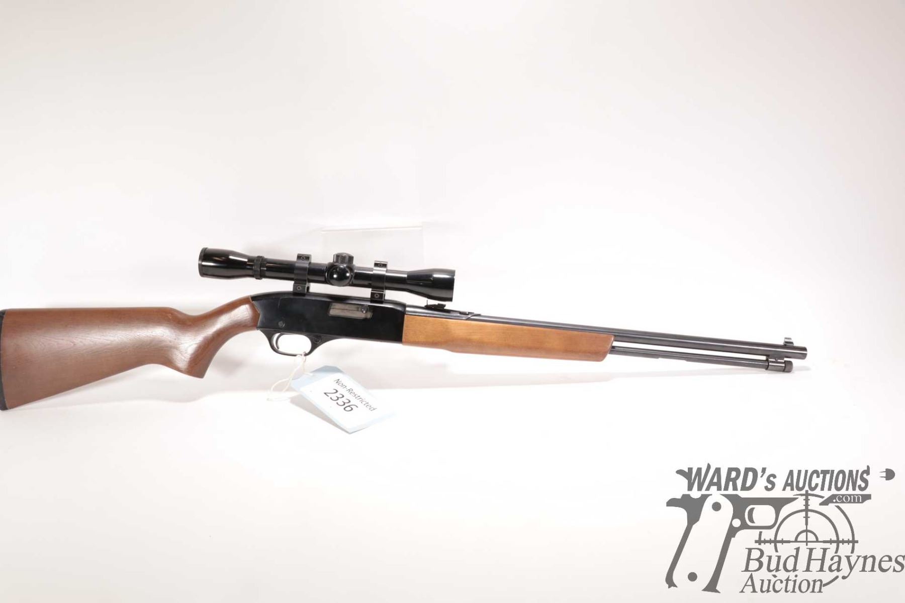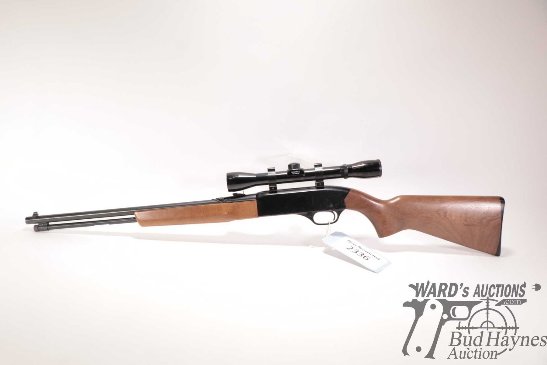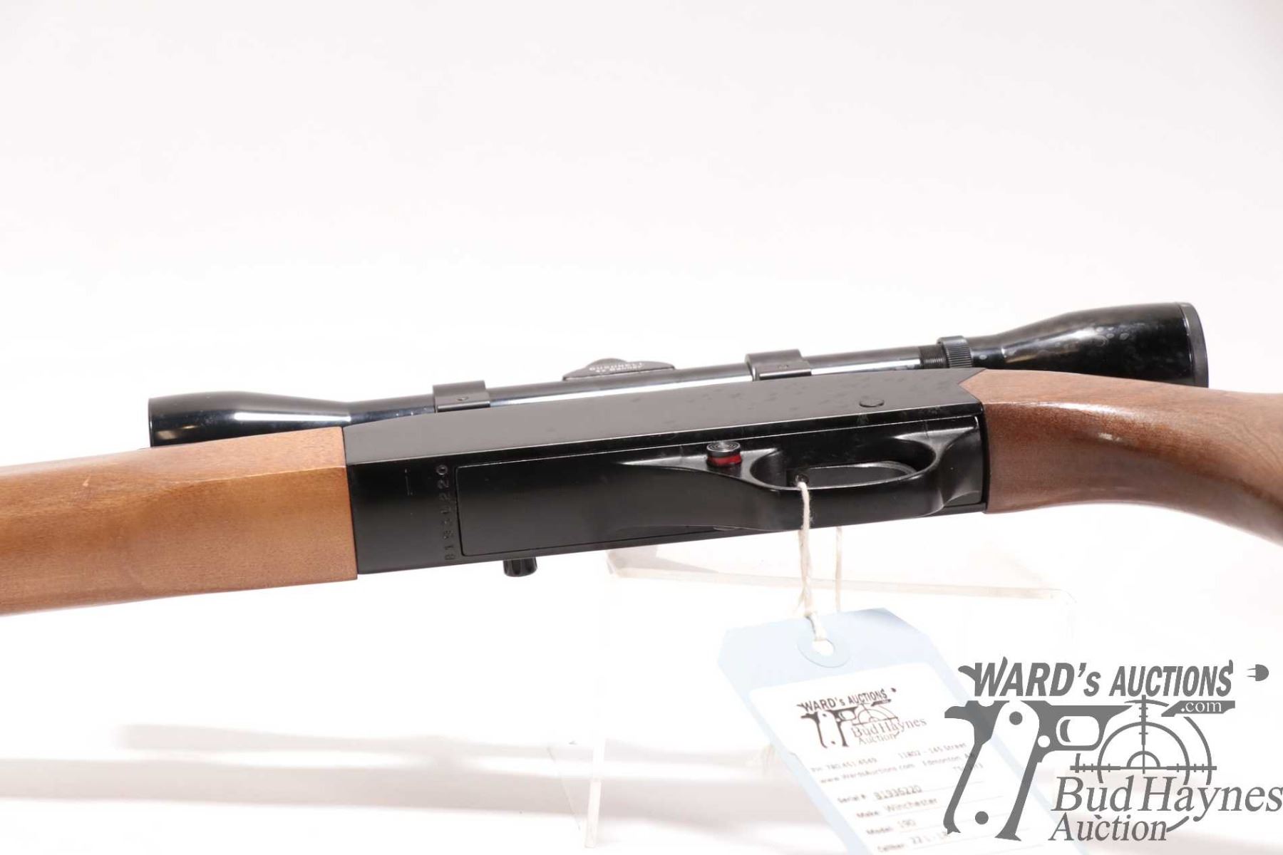 Non-Restricted rifle Winchester model 190, 22 L, LR semi automatic, w/ bbl length 20 1/2" [Blued barrel and full length tube. Fixed front and adjustable rear sights. Black alloy receiver. Fitted with Bushnell Banner 4X scope. Smooth wooden stock with branded plastic butt plate. Mechanically appears to function and appears to have had light use. Overall only minor use, handling and storage marks plus a few extra shelf rubs.] serial # B1936220, PAL required