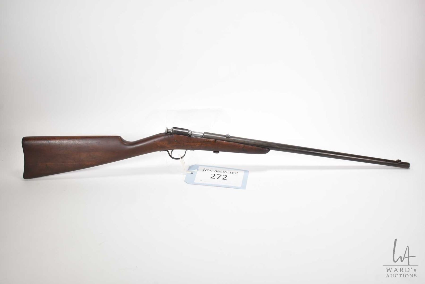 Non-Restricted rifle Winchester model 1900, .22 S, L single shot bolt action, w/ bbl length 18" [Blued barrel turning brown. Fixed front and rear sights. Smooth wooden stock. Stock cracked below bolt on left and right. Use, handling and storage marks to wood and metal.] serial # NIL, PAL required