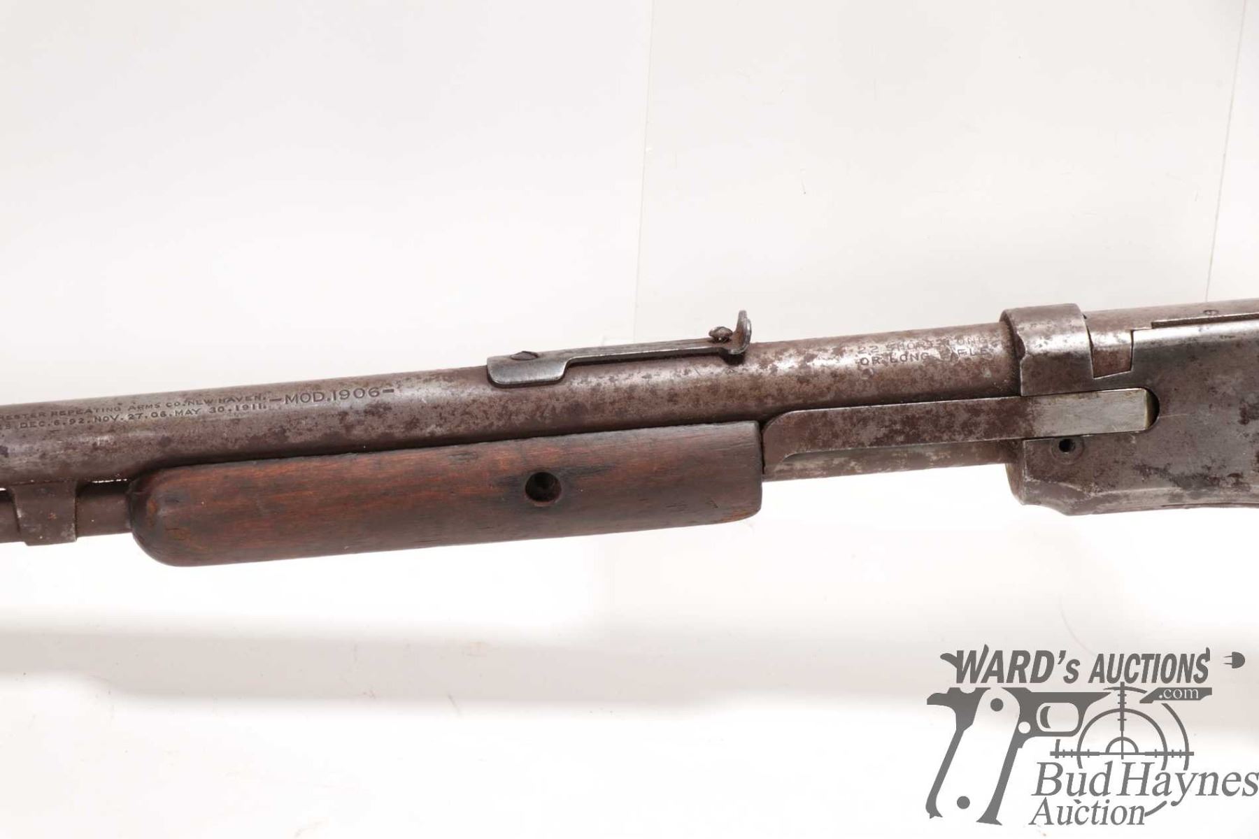 Non-Restricted rifle Winchester model 1906, 22 S, L & LR pump action, w/ bbl length 20" [Buy as project. Heavy rust and pitting. Missing screws. Cracked parts. Action does cycle.] serial # 311195B, PAL required