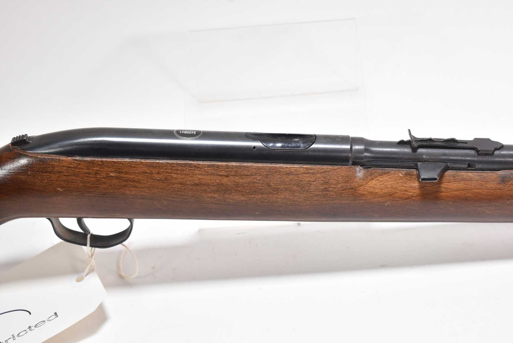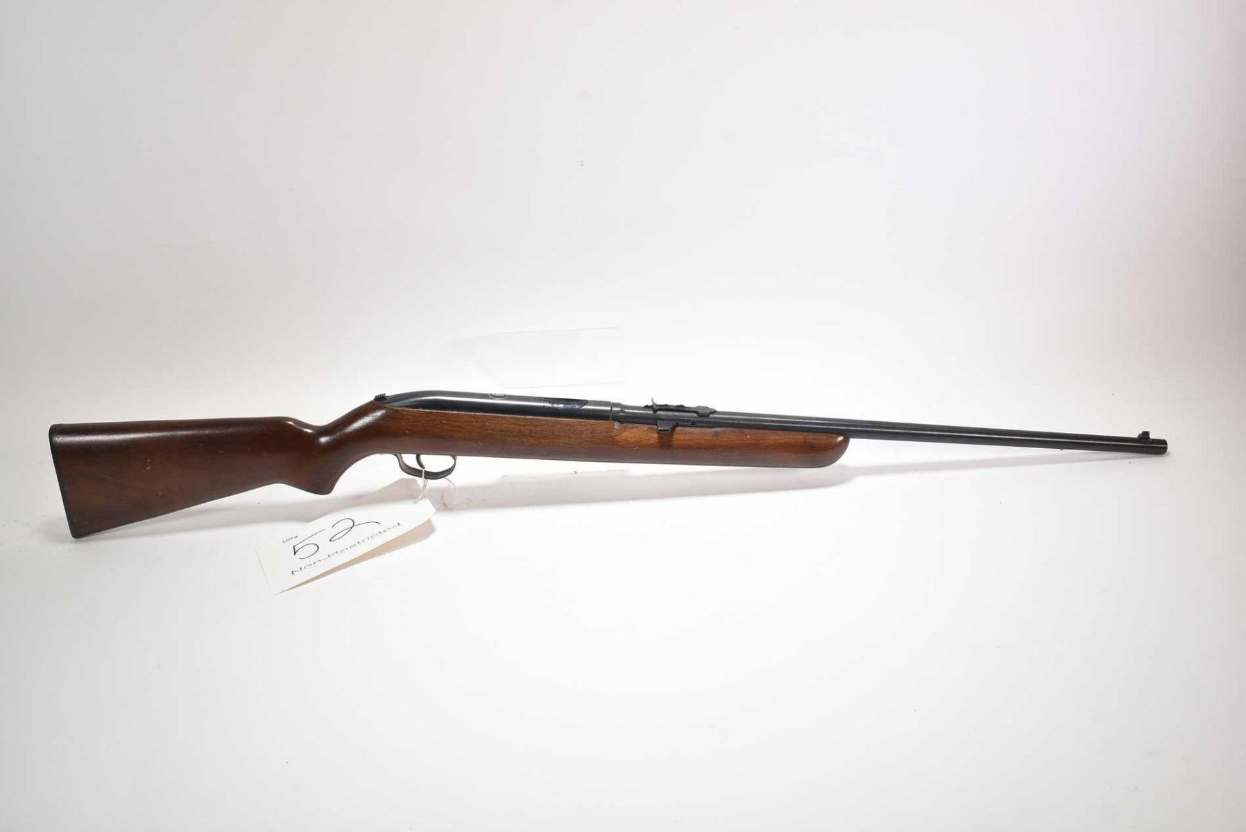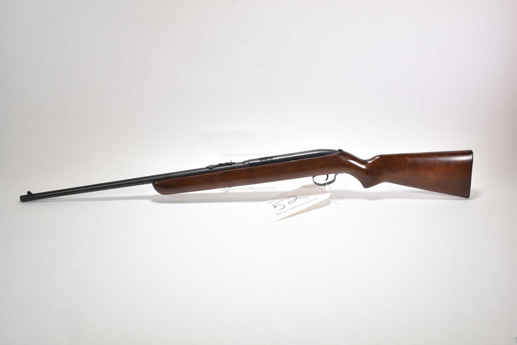 Non-Restricted rifle Winchester model 55, 22 S, L & L.R single shot bolt action, w/ bbl length 21 3/4" [Blued barrel and receiver. Fixed front and elevation adjustable rear sights. Smooth wooden stock with hard plastic butt plate. Bluing turning grey. Stiff sticky action. Overall well used condition with nicks and marks to wood and metal.] serial # NIL, PAL required