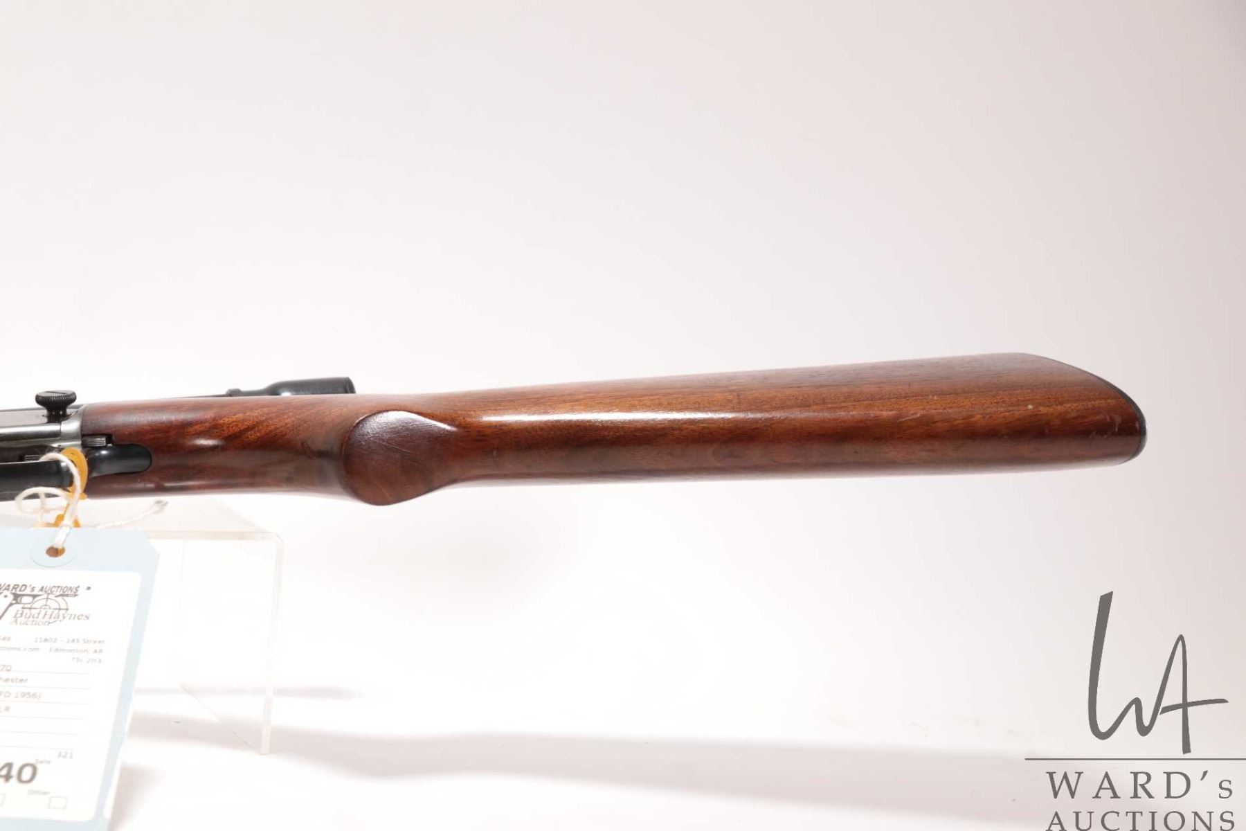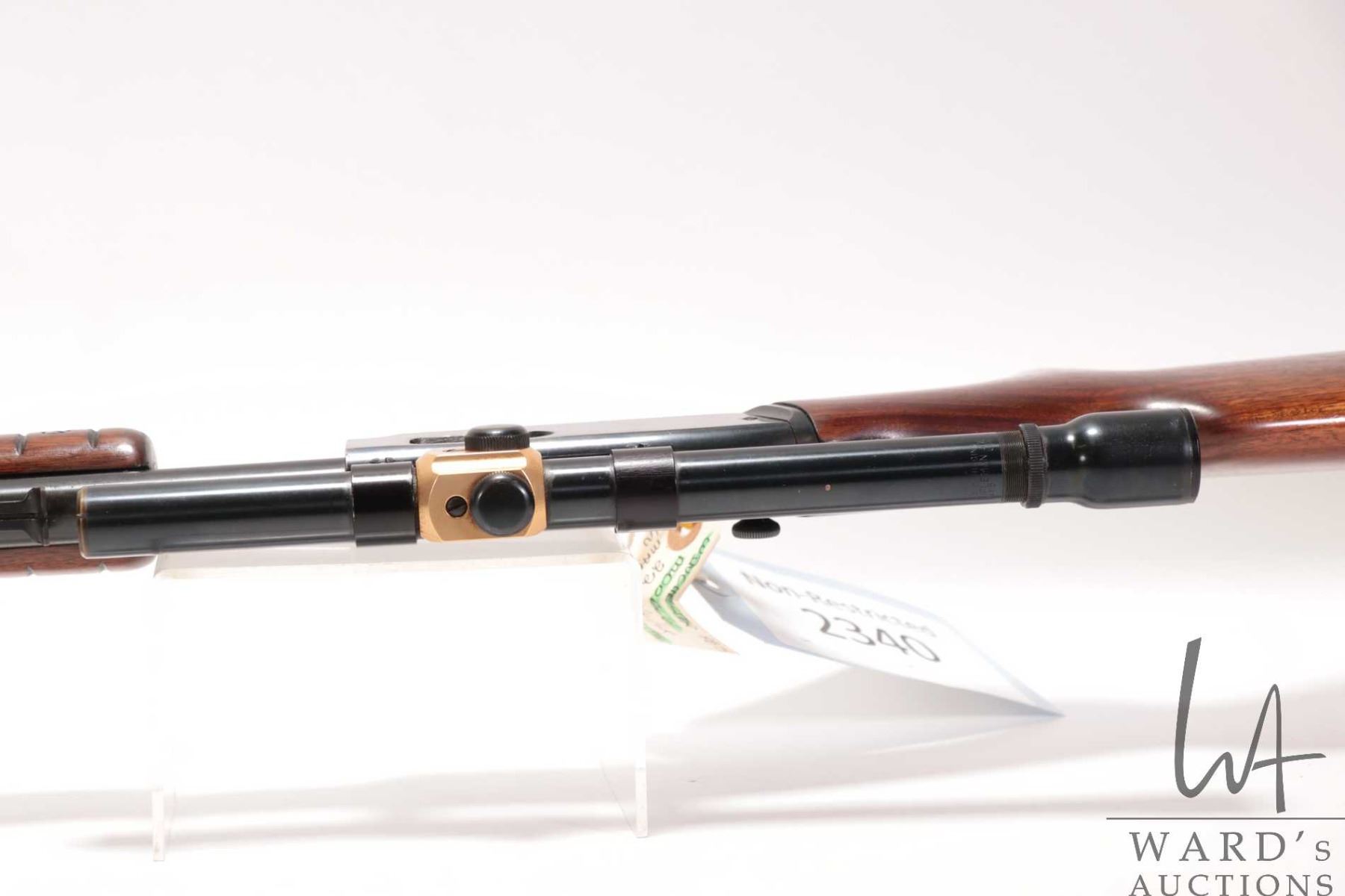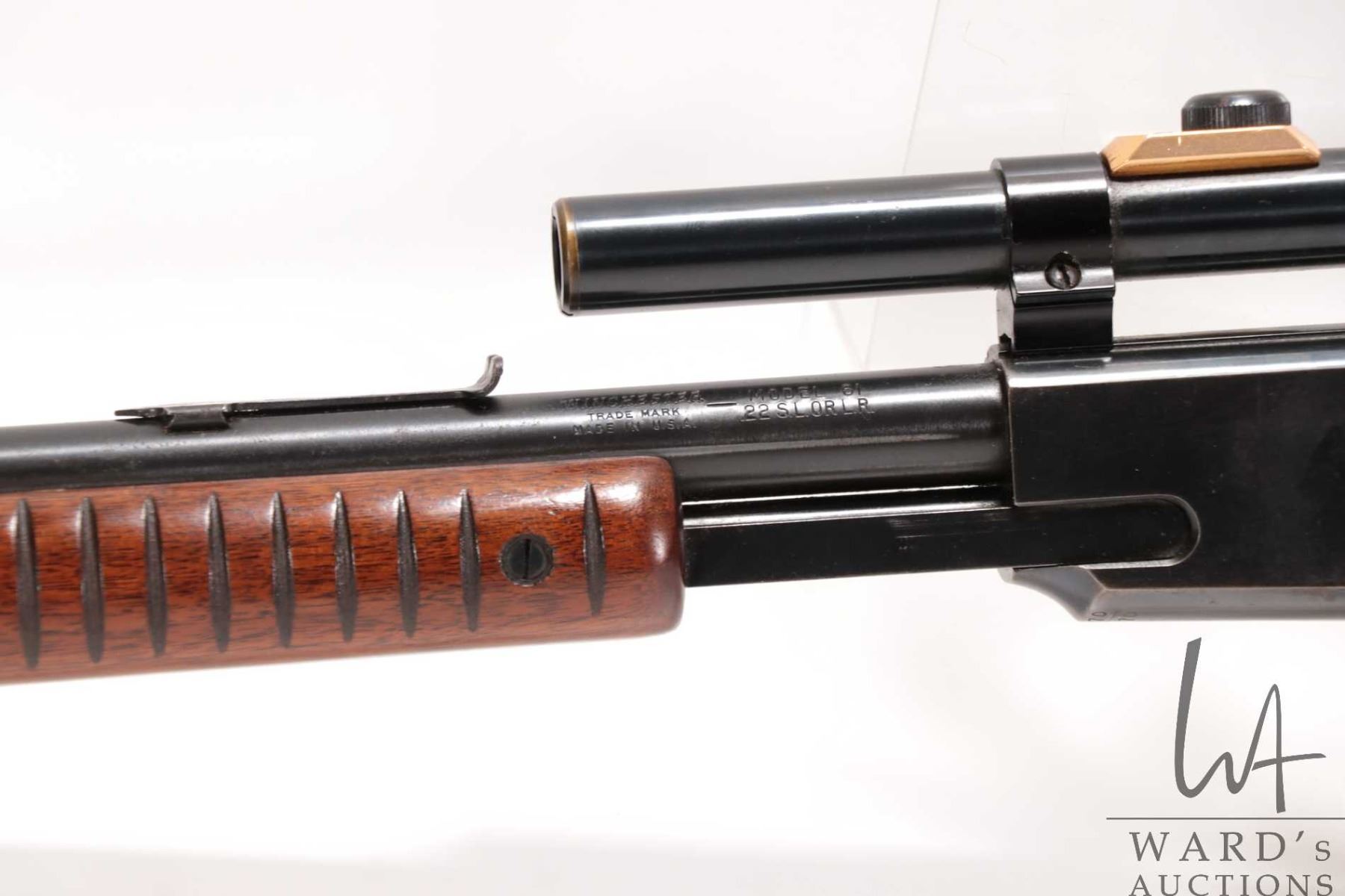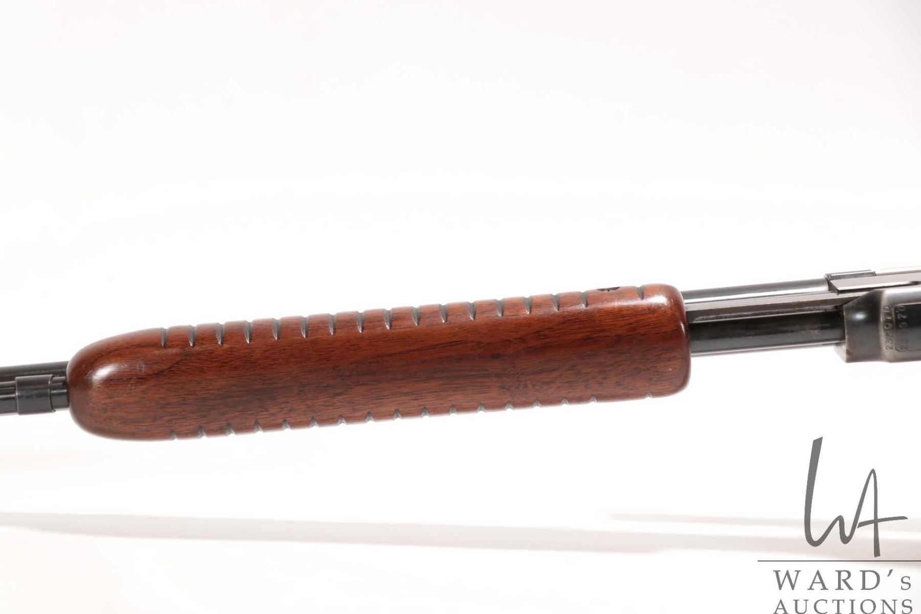 Non-Restricted rifle Winchester model 61 (circa 1956), .22 S, L & LR pump action, w/ bbl length 24" [Blued barrel and receiver. Fixed front and adjustable rear sight with ramp missing. Fitted with J.C. Higgins Rifleman 4X scope. Smooth wooden stock with checkered metal butt plate. Mechanically appears near excellent. Minor bluing wear and some isolated areas of light surface rust and other minor use, handling and storage marks.] serial # 238970, PAL required
