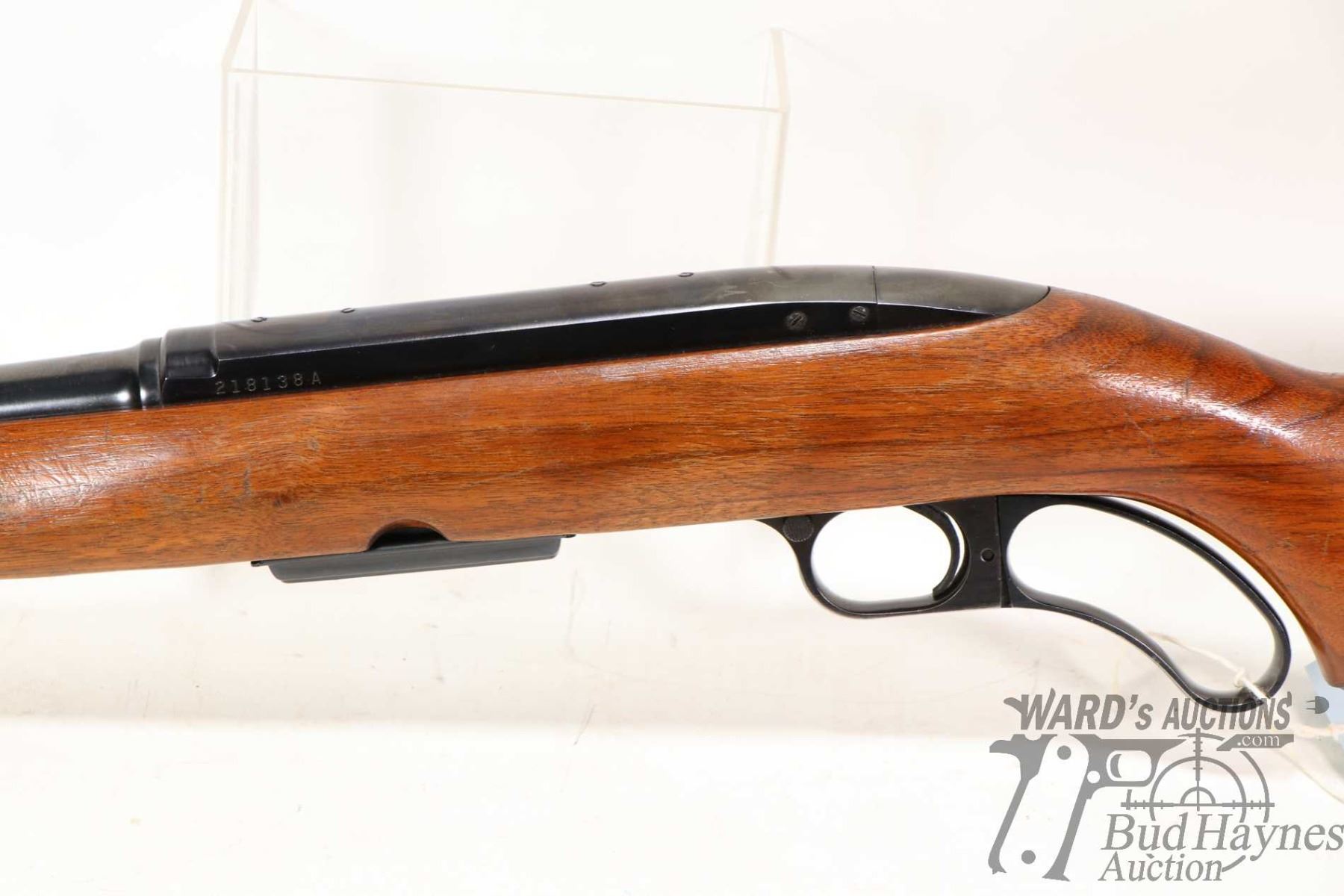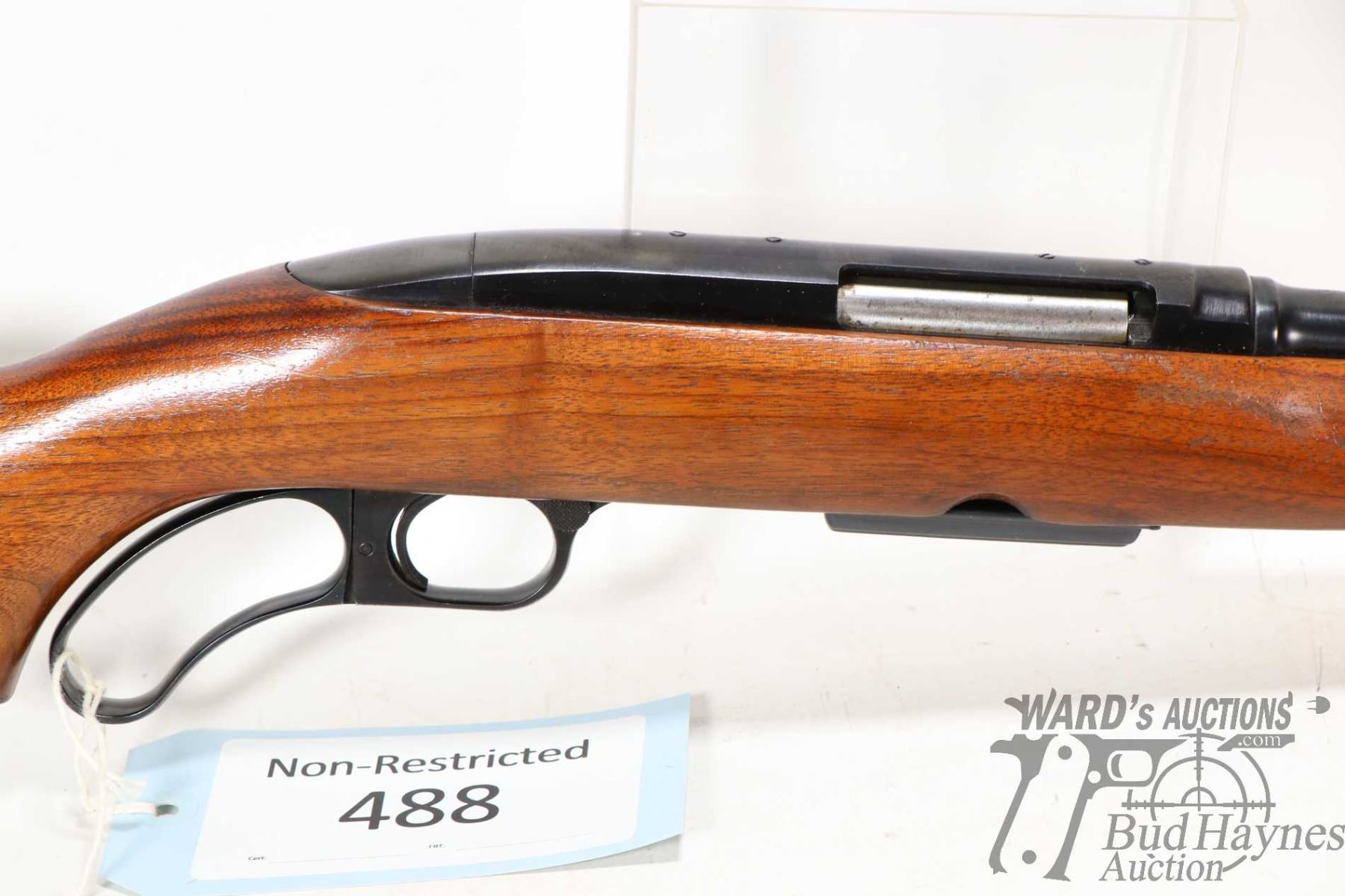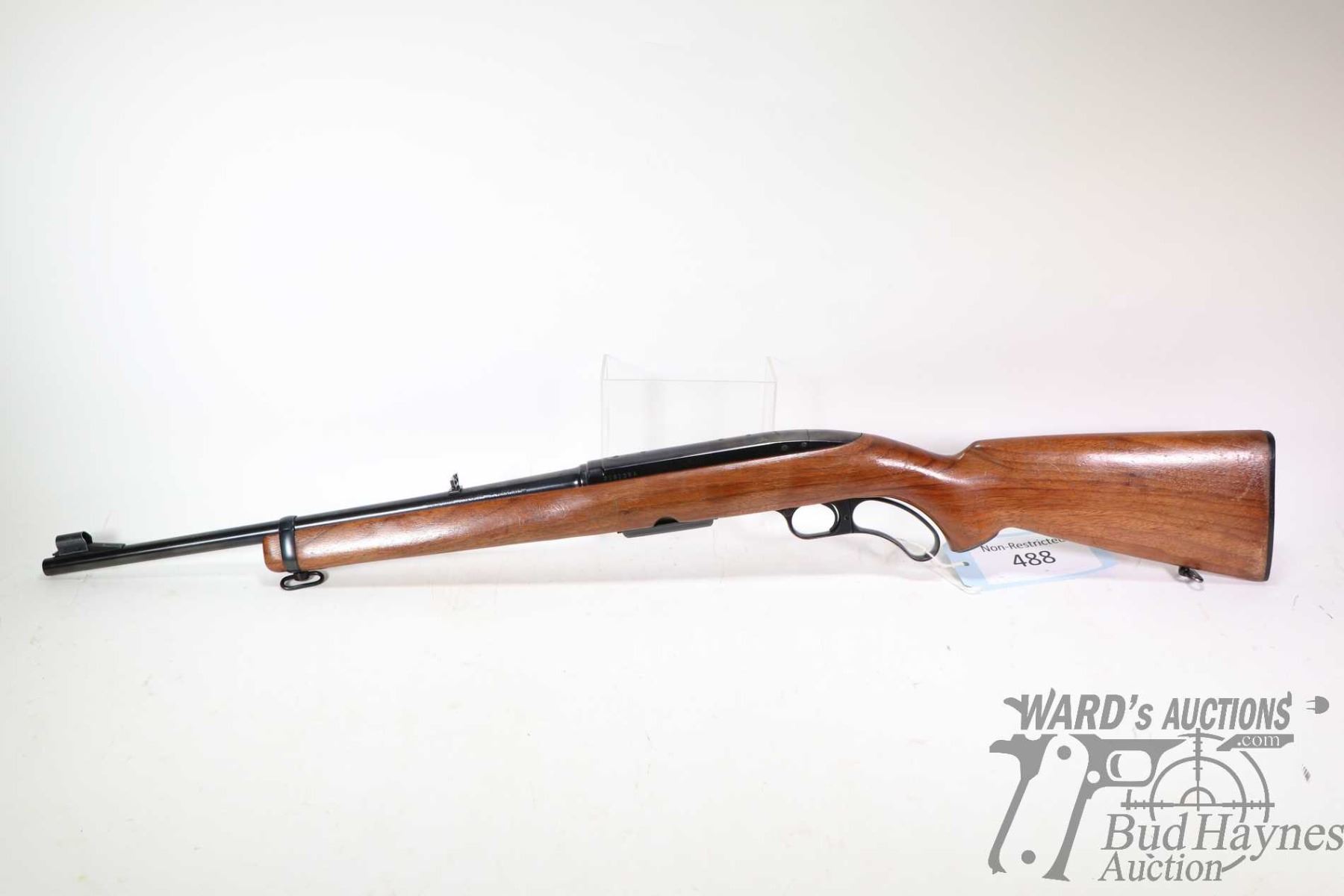 Non-Restricted rifle Winchester model 88 carbine, .308 Win lever action, w/ bbl length 18 1/2" [Blued barrel and receiver. Fixed front and adjustable rear sights. Smooth wooden stock with checkered plastic butt plate. Fitted with sling ring and includes one detachable magazine. Action and trigger appear to function well with use, handling and storage marks to wood and metal.] serial # 218138A, PAL required