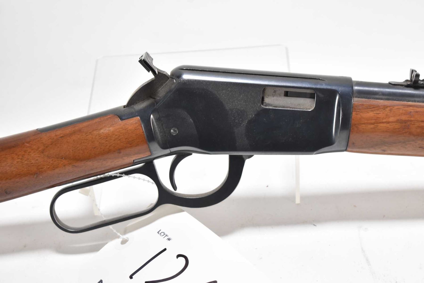 Non-Restricted rifle Winchester model 9422, .22 S,L,LR, tube fed lever action, w/ bbl length 20 1/4" [Blued barrel and receiver, fixed front and elevation adjustable rear sights, extended thumb cocker/decocker on hammer, saddle ring, smooth walnut stock and forend. Use and handling marks on wood and metal.] serial # F229814, PAL required