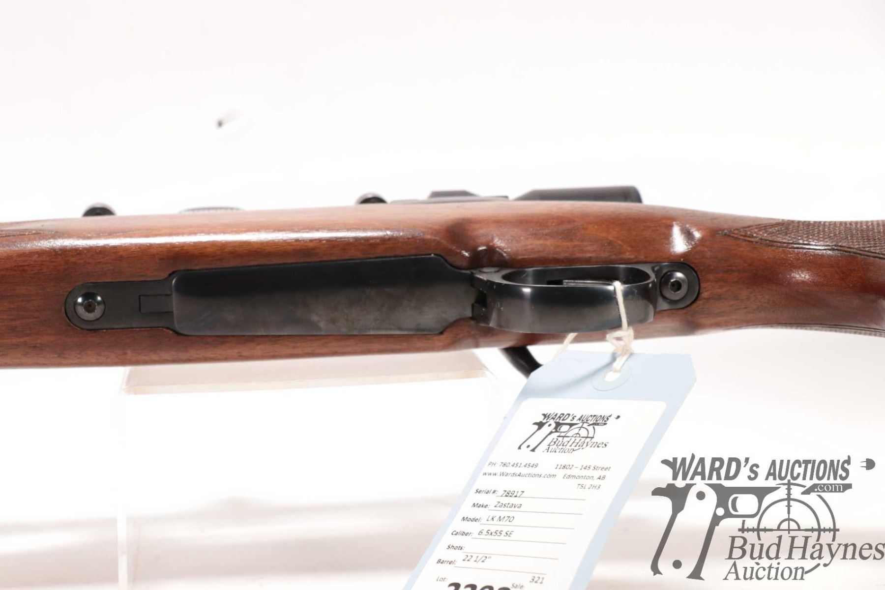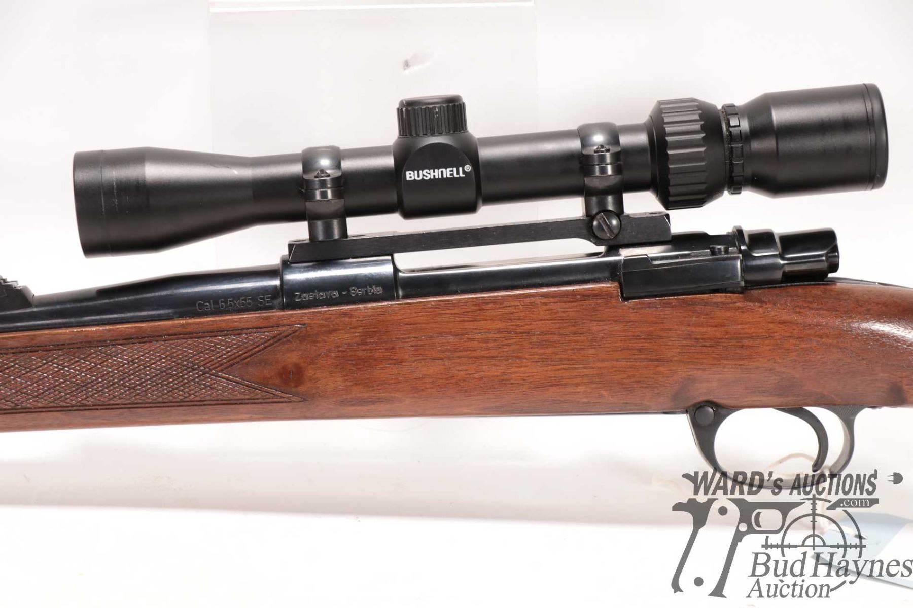 Non-Restricted rifle Zastava model LK M70, 6.5X55 SE bolt action, w/ bbl length 22 1/2" [Blued barrel and receiver. Fixed front and adjustable rear sights and fitted with Bushnell 4-9 scope. Internal box magazine. Hardwood stock with branded recoil pad. Mechanically appears to function well. Only minor bluing wear in use and handling areas and other minor use, handling and storage marks.] serial # 78917, PAL required