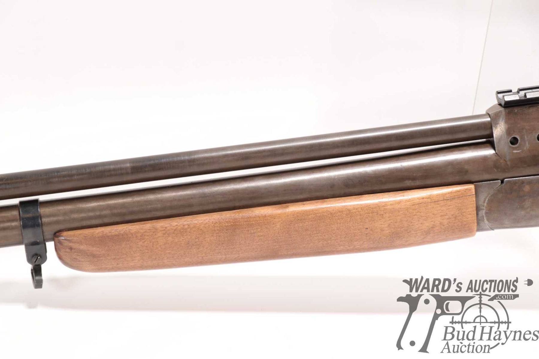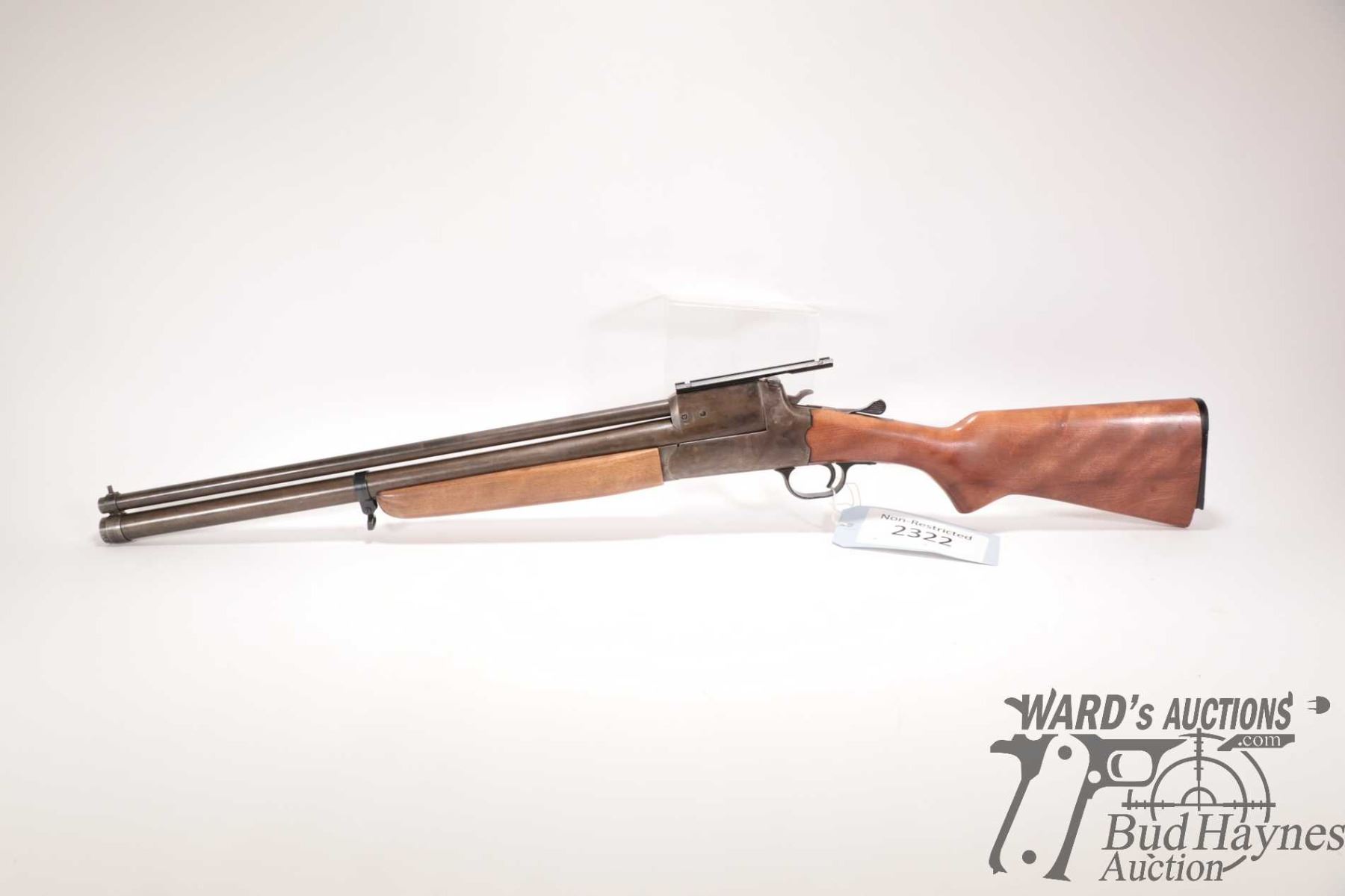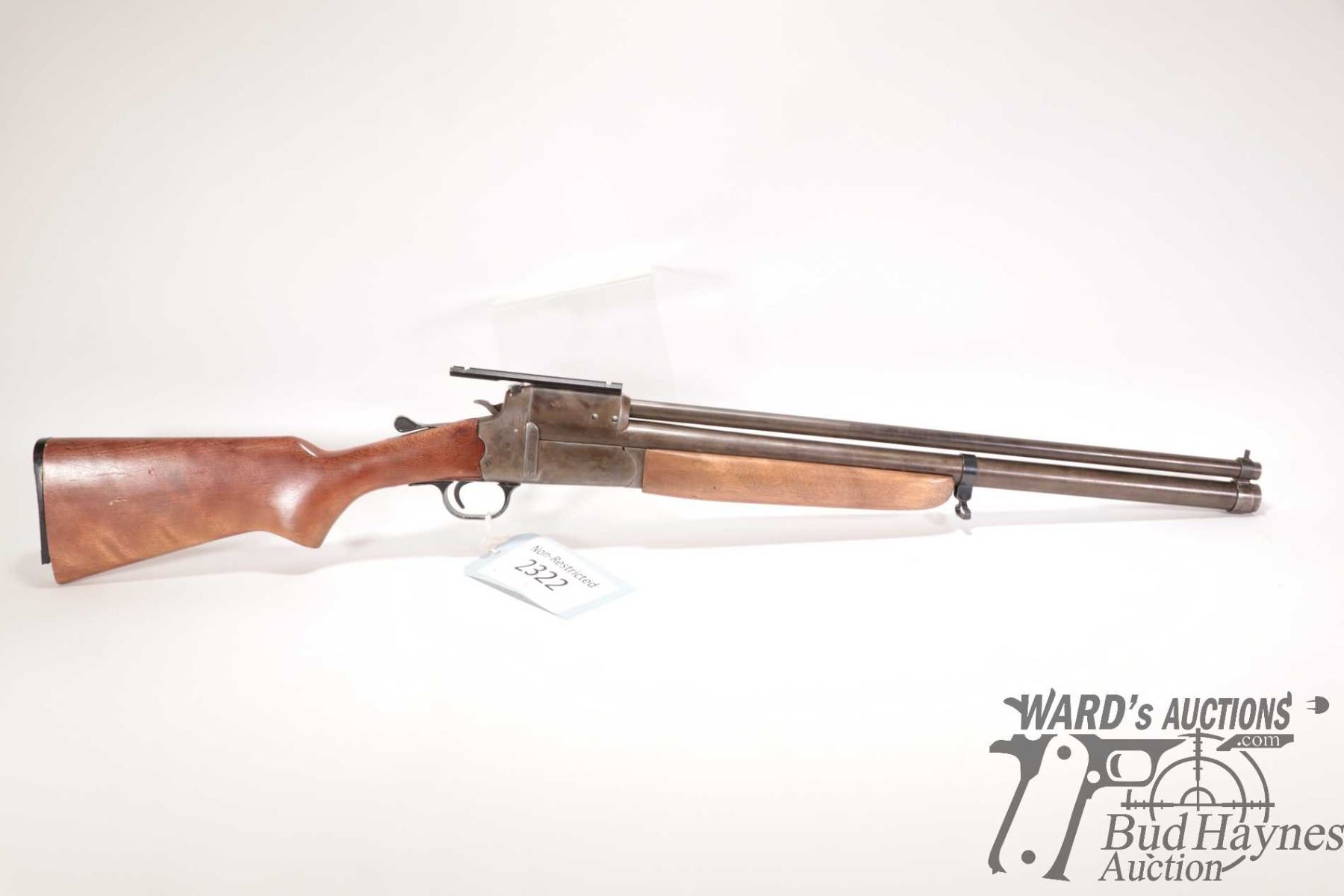 Non-Restricted rifle/shotgun Unknown model Combination gun, 12 ga. 2 3/4", 22 Hornet? Two shot hinge break, w/ bbl length 21 1/2" [Re-cold blued finish over stripped metal. Fixed front sight and no rear sight. Fitted with non-original scope base. Smooth wooden stock with broken butt plate. Chambering of top barrel not confirmed, .22 cal at muzzle. Mechanically appears to function. Original bluing appears mechanically removed with tooling marks visible plus other use, handling and storage marks.] serial # NIL, PAL required