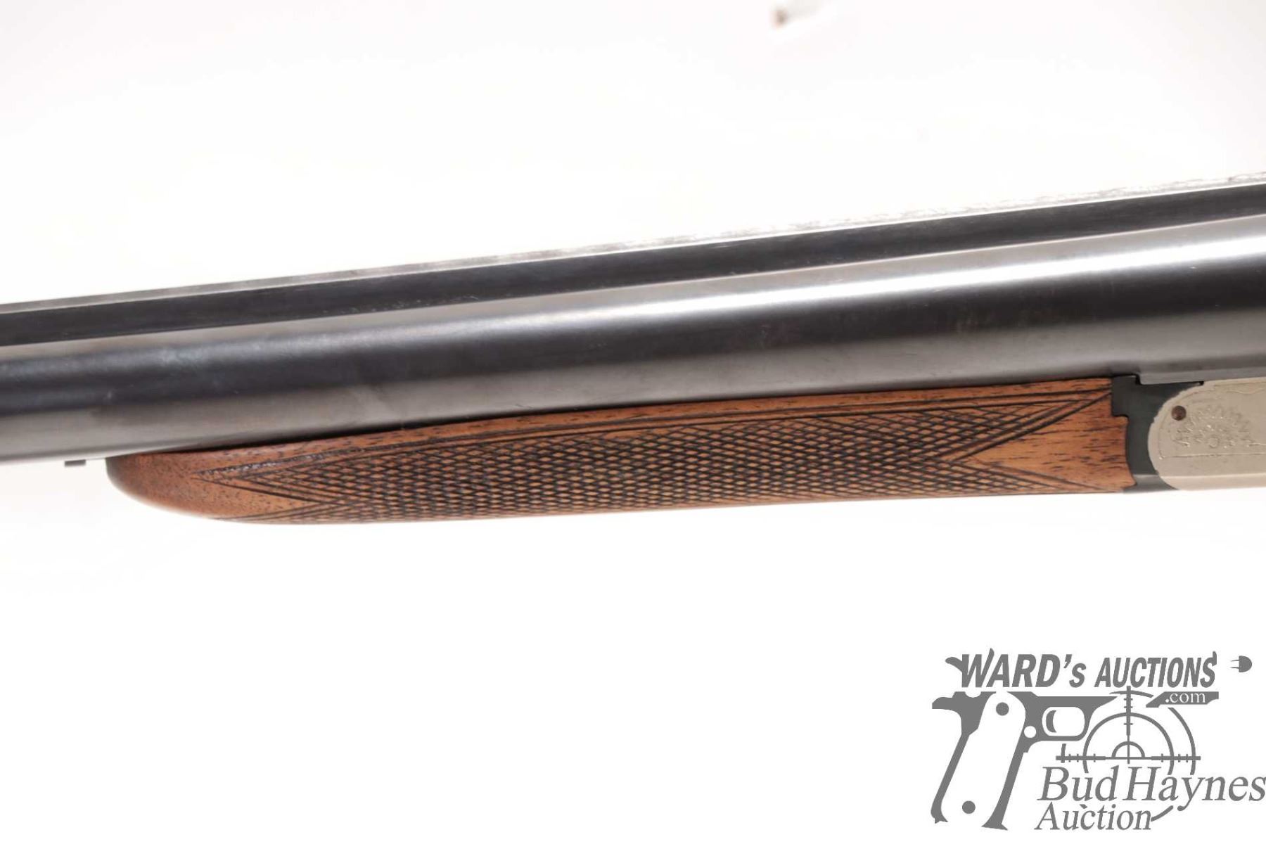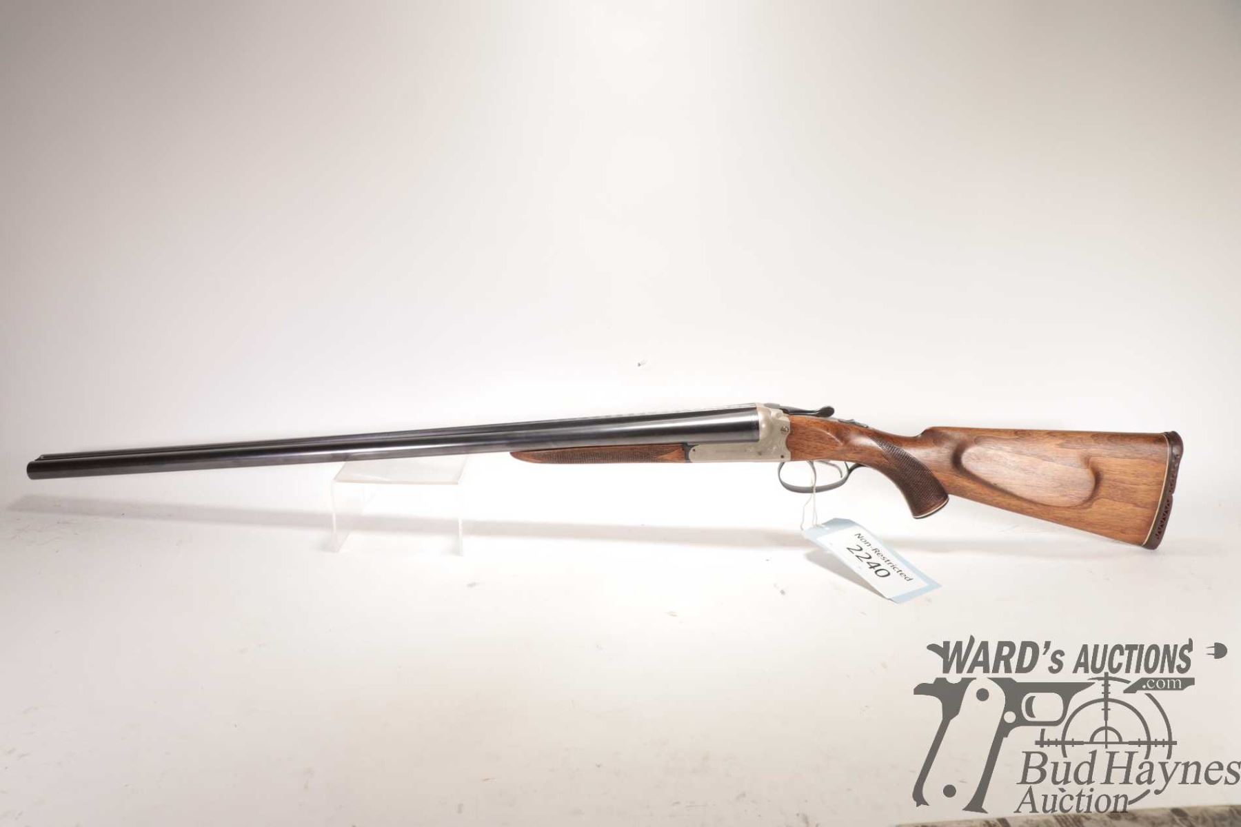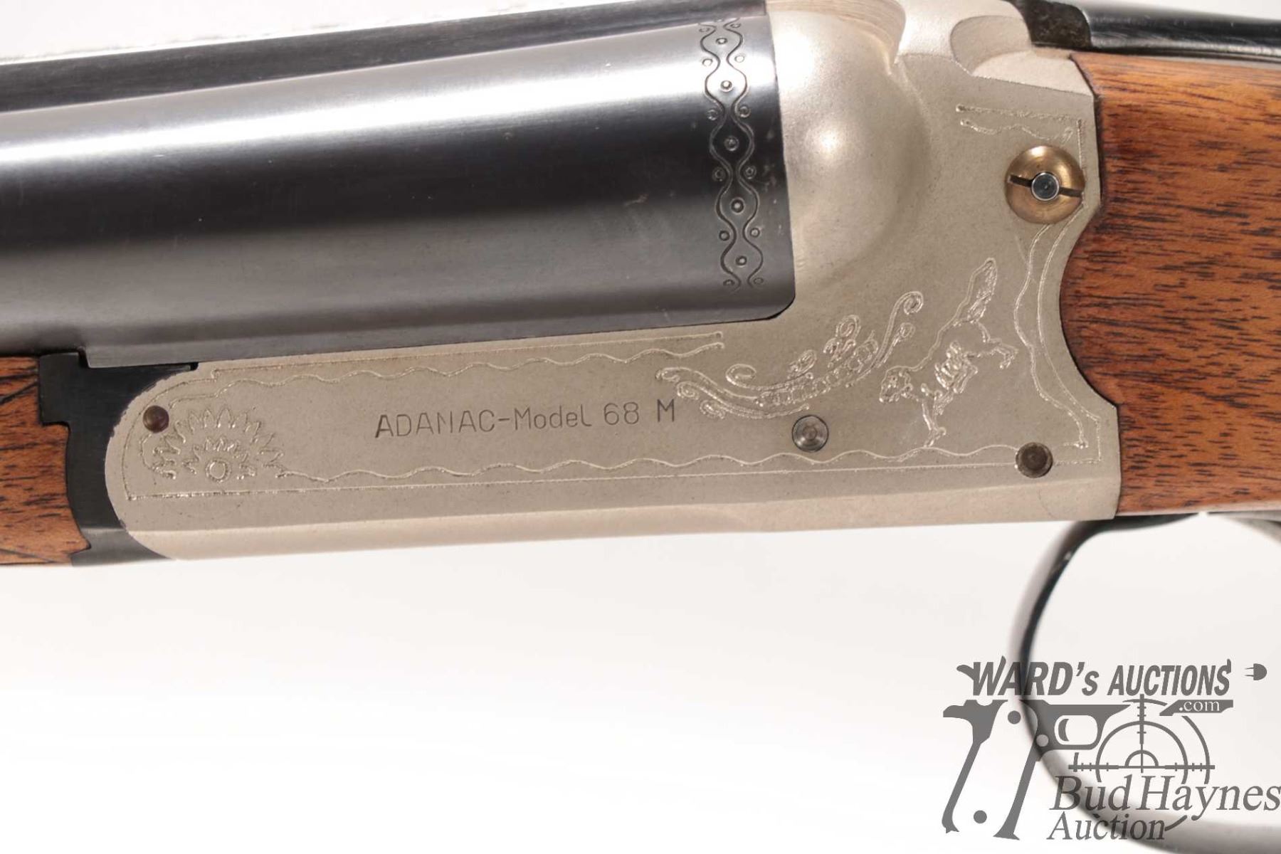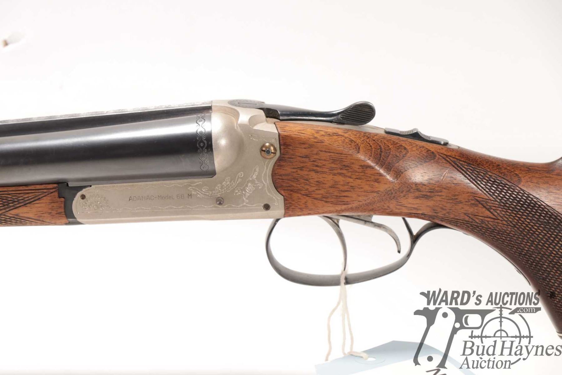Non-Restricted shotgun ADANAC model 68M, 12 ga. 3" Two shot hinge break, w/ bbl length 30" [Choked markings include (Left 17.3, Right 17.8), bore diameter as measured 6" from muzzle (Left .7175, Right .717), muzzle diameter (Left .6805, Right .697)] [Blued barrels with single bead sight. Satin finish white metal receiver. Hardwood stock. Matching serial number on water table, barrels and forend. Fitted with ejectors. Mechanically appears to function near excellent. Overall only minor use, handling marks except extra wear on the recoil pad.] serial # 84662, PAL required