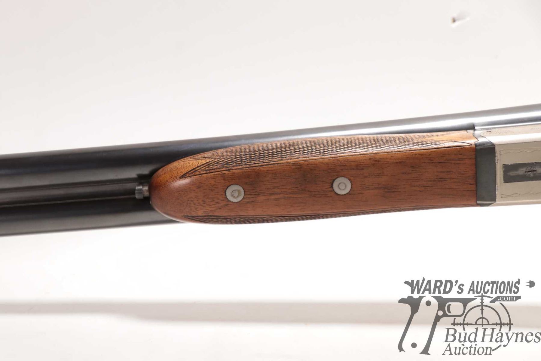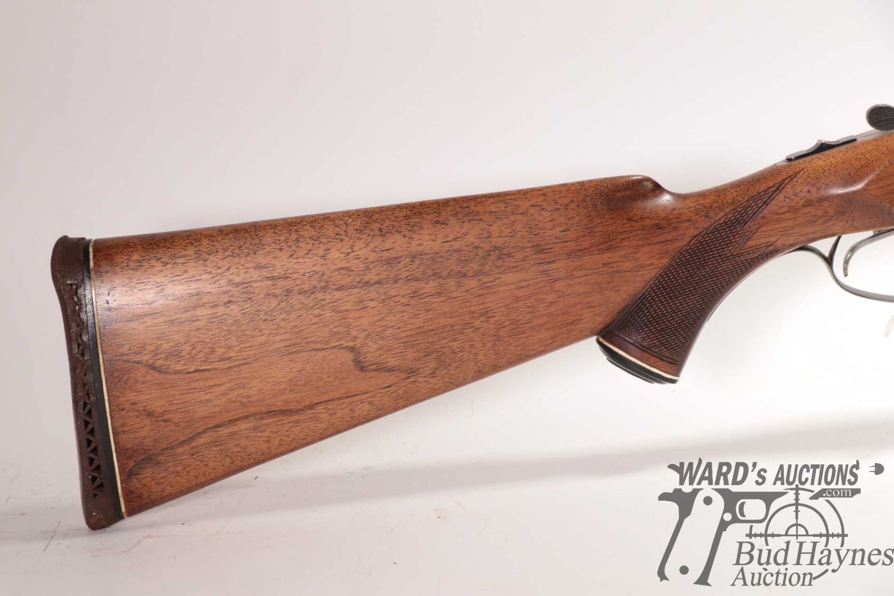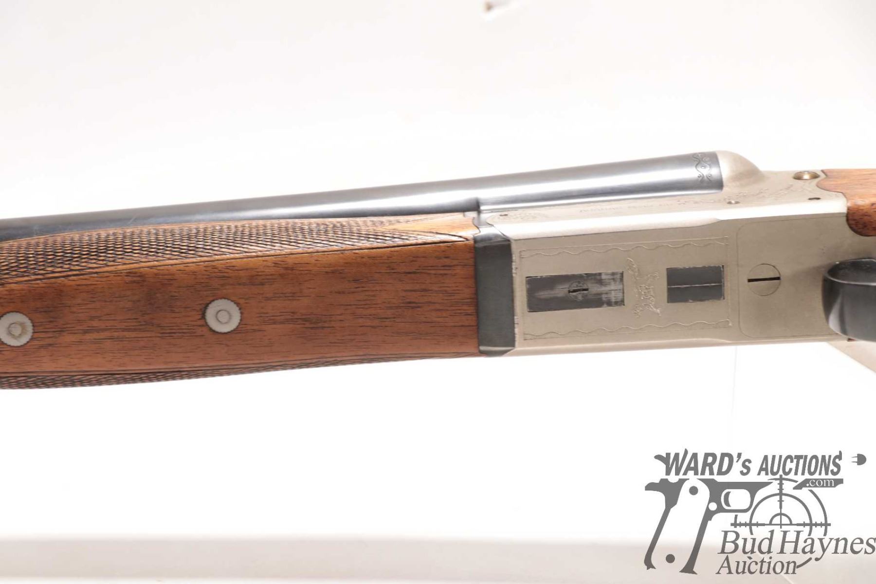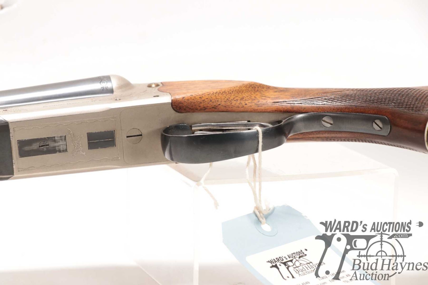 Non-Restricted shotgun ADANAC model 68M, 12 ga. 3" Two shot hinge break, w/ bbl length 30" [Choked markings include (Left 17.3, Right 17.8), bore diameter as measured 6" from muzzle (Left .7175, Right .717), muzzle diameter (Left .6805, Right .697)] [Blued barrels with single bead sight. Satin finish white metal receiver. Hardwood stock. Matching serial number on water table, barrels and forend. Fitted with ejectors. Mechanically appears to function near excellent. Overall only minor use, handling marks except extra wear on the recoil pad.] serial # 84662, PAL required