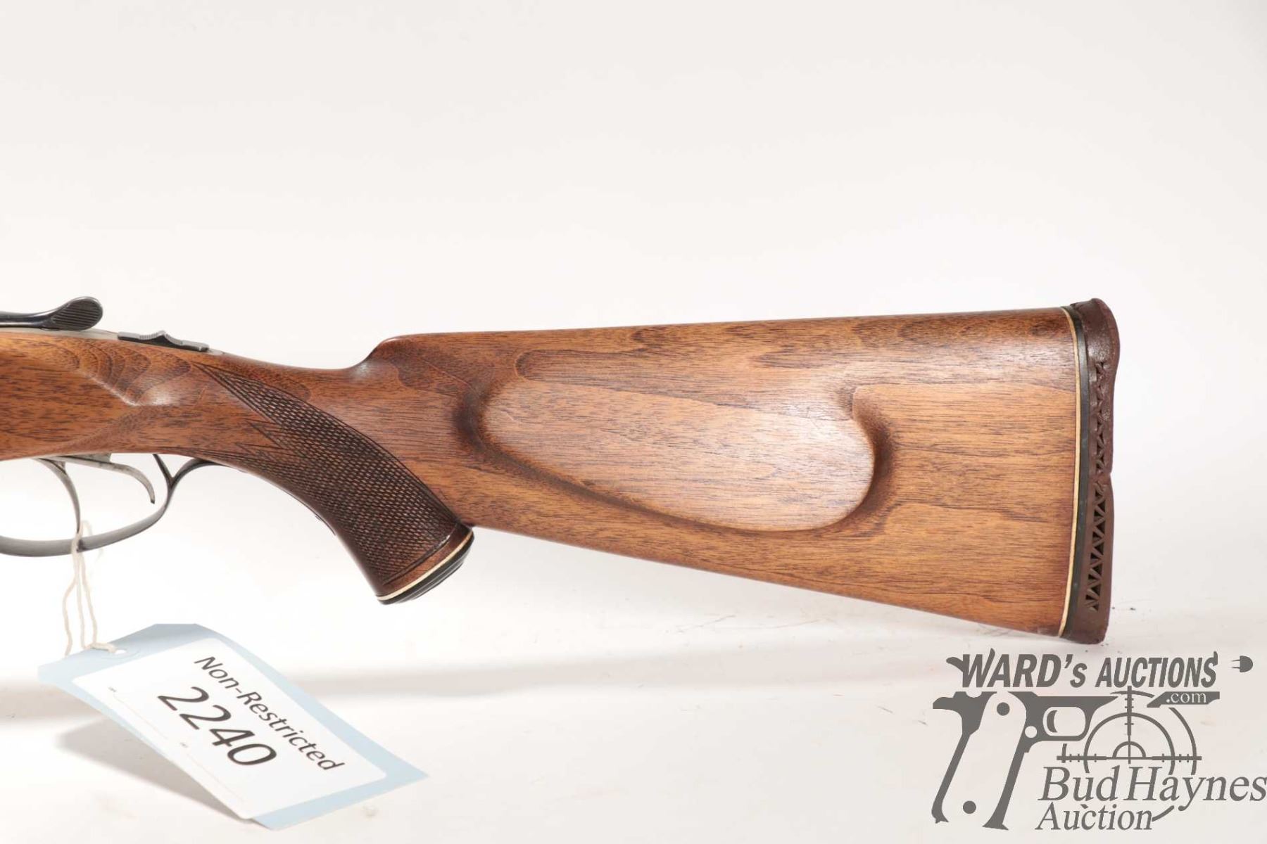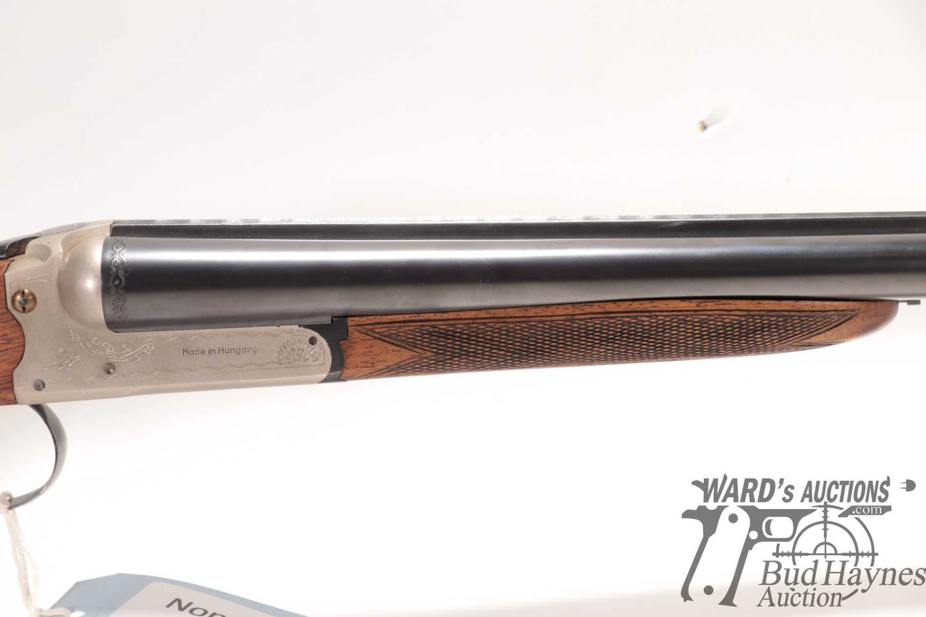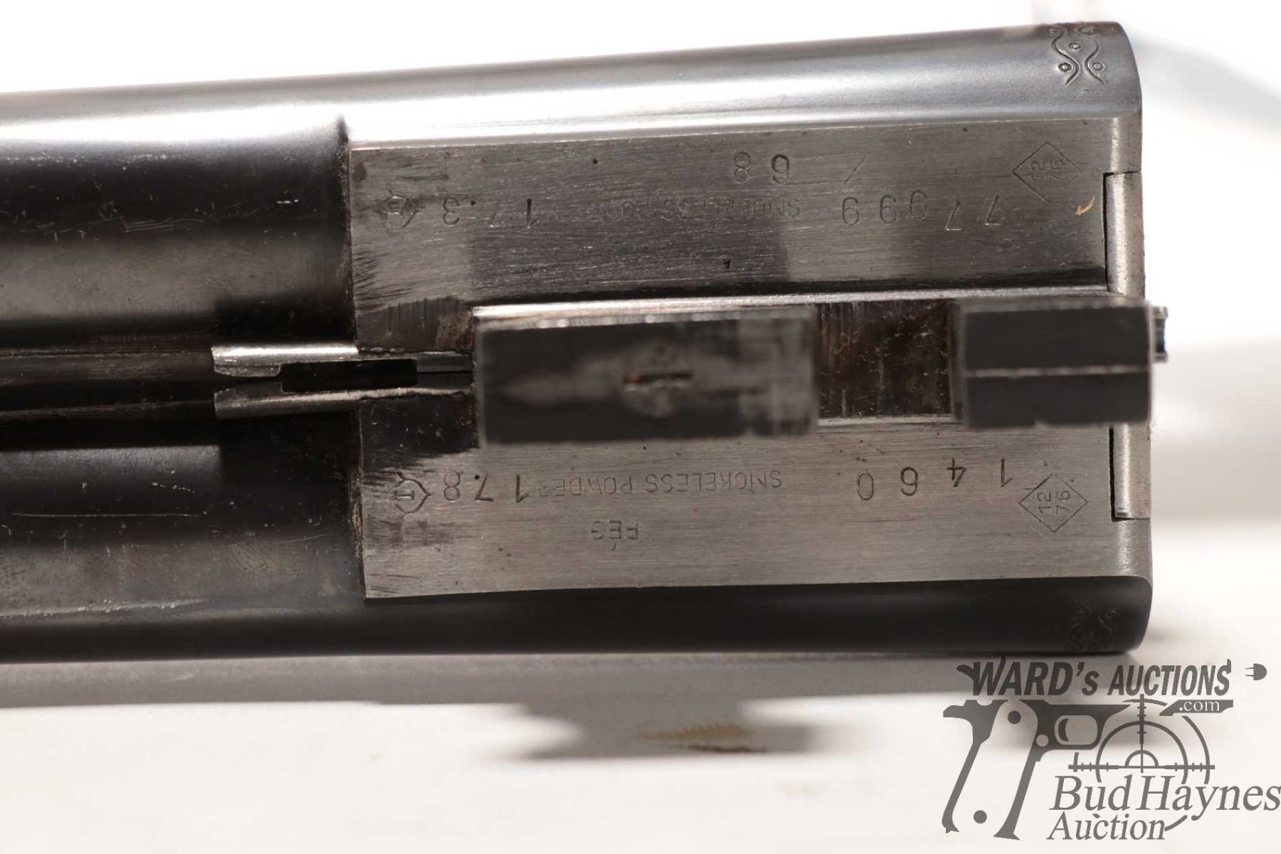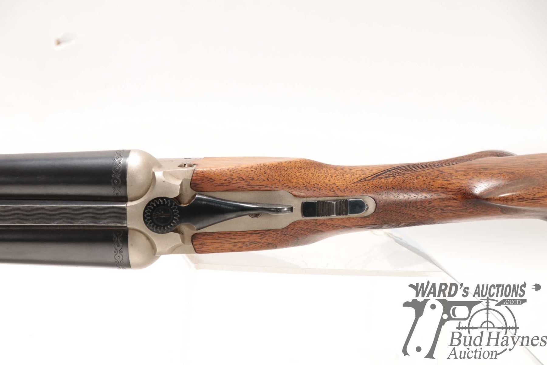 Non-Restricted shotgun ADANAC model 68M, 12 ga. 3" Two shot hinge break, w/ bbl length 30" [Choked markings include (Left 17.3, Right 17.8), bore diameter as measured 6" from muzzle (Left .7175, Right .717), muzzle diameter (Left .6805, Right .697)] [Blued barrels with single bead sight. Satin finish white metal receiver. Hardwood stock. Matching serial number on water table, barrels and forend. Fitted with ejectors. Mechanically appears to function near excellent. Overall only minor use, handling marks except extra wear on the recoil pad.] serial # 84662, PAL required