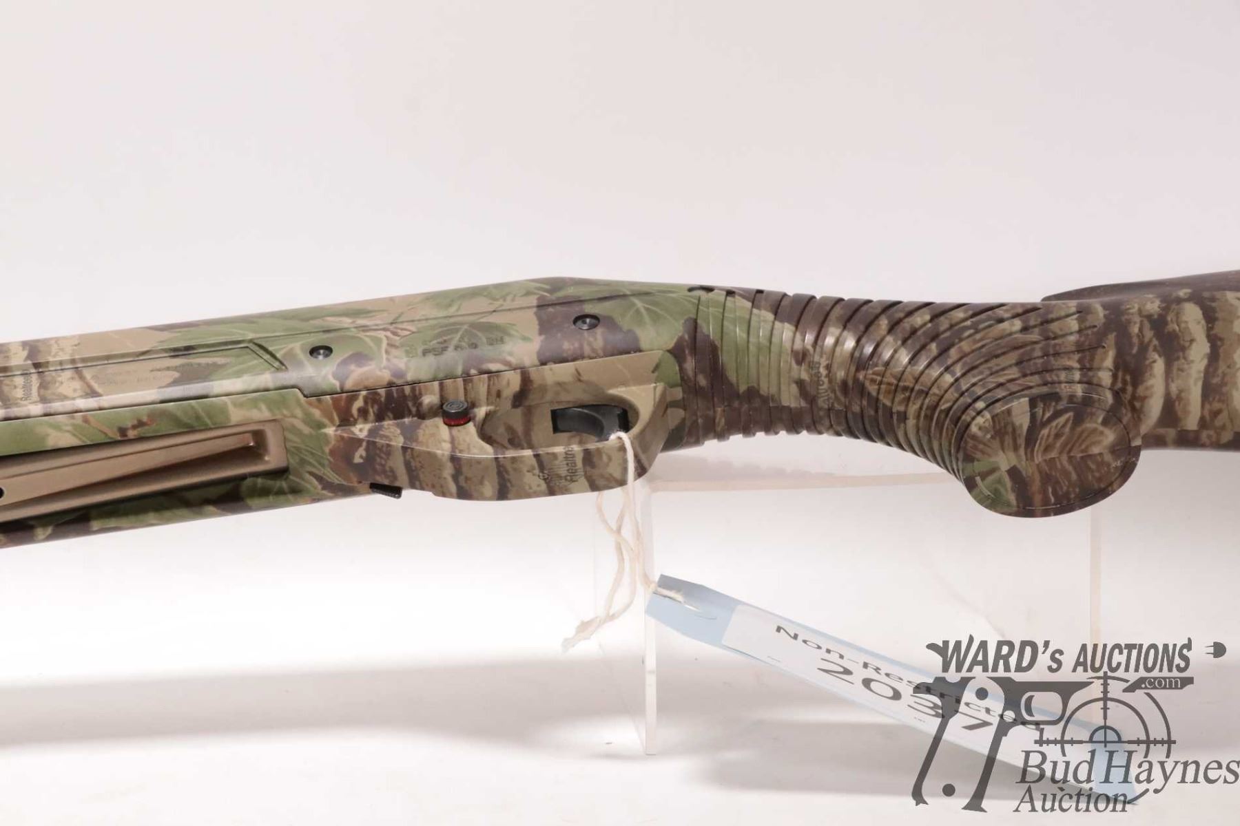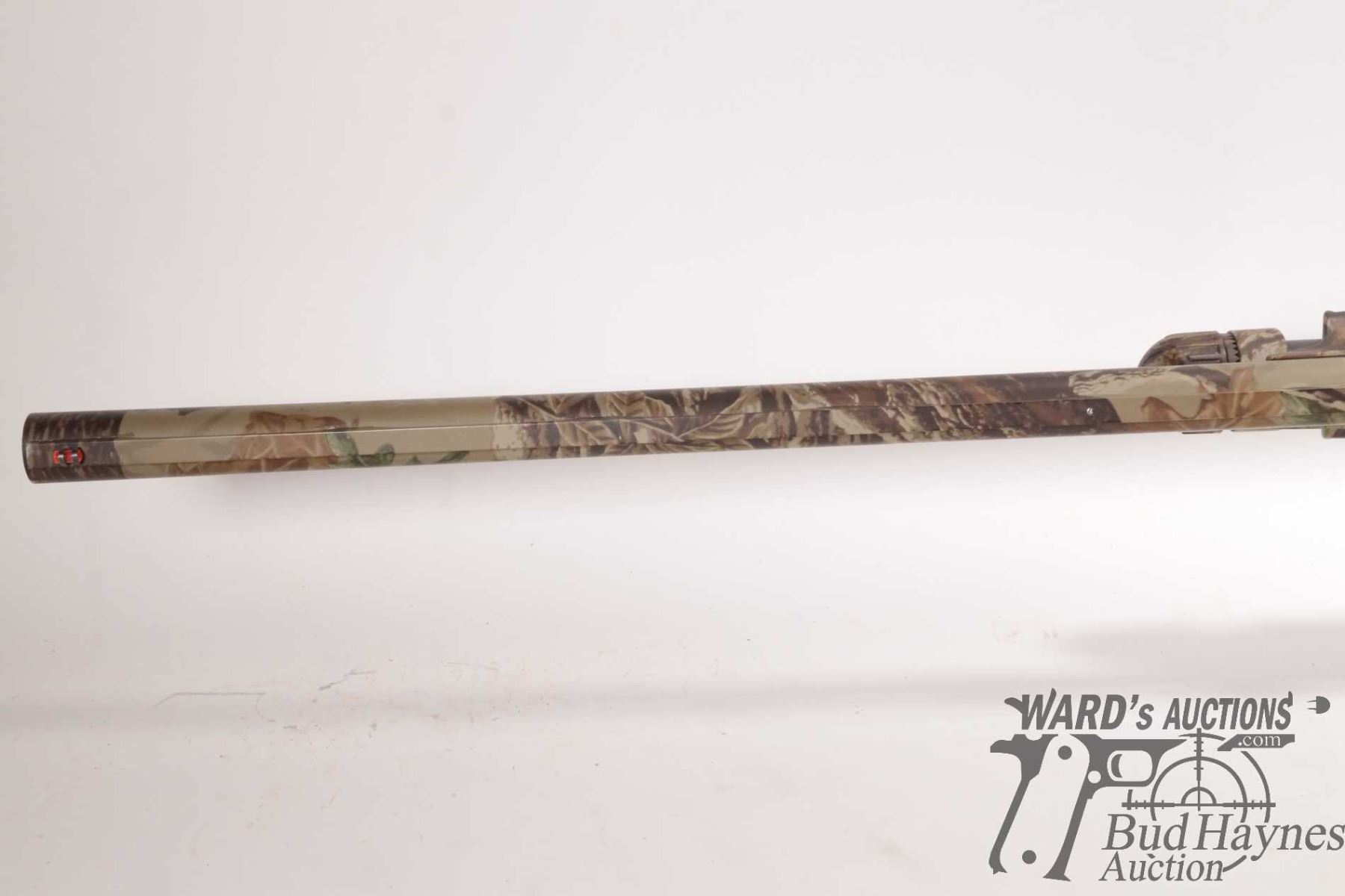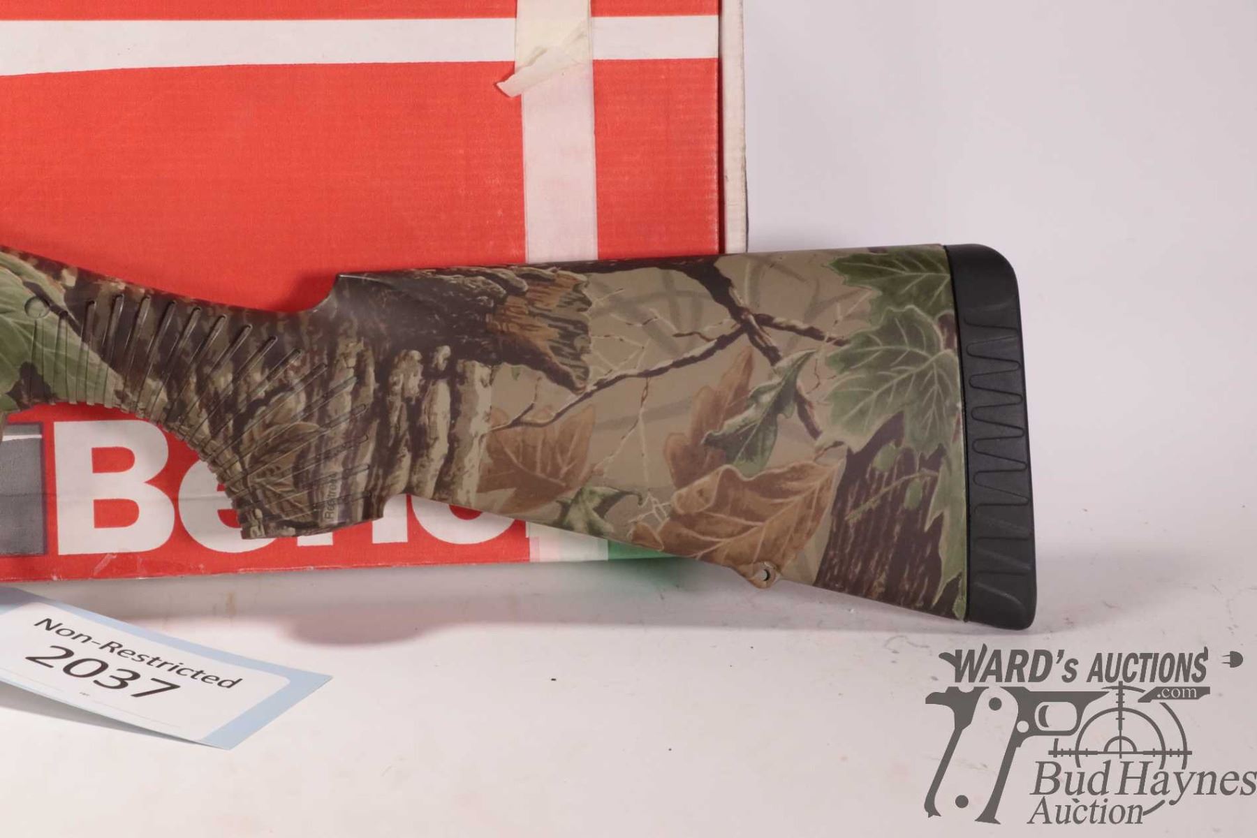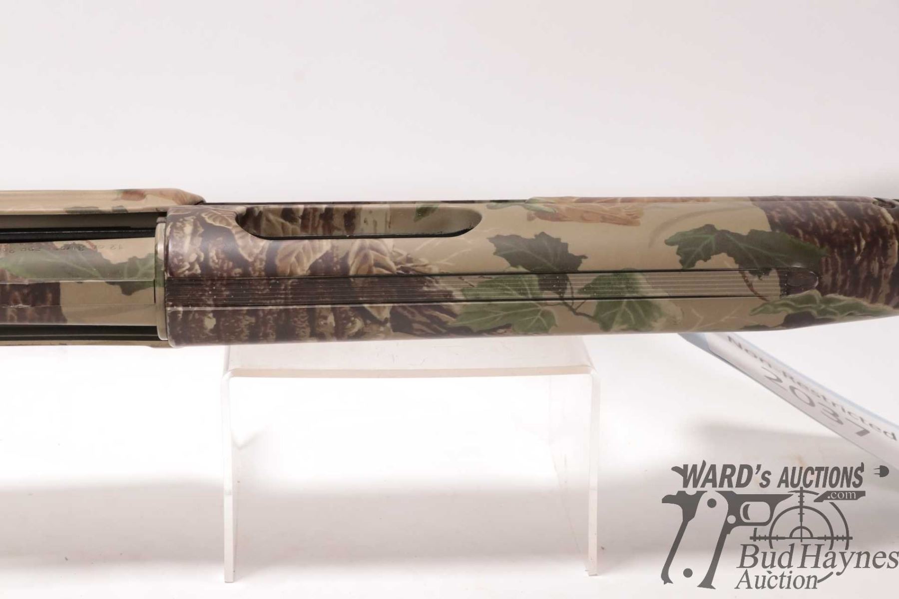 Non-Restricted shotgun Benelli model Nova, 12 ga. 2 3/4"-3 1/2" pump action, w/ bbl length 27 1/2" [RealTree Camouflage shotgun with double bead sight and fiber optic insert. Tubular magazine. Includes original box, manual and three screw in chokes. Mechanically and aesthetically appear near excellent. Possibly only factory test fired.] serial # Z046672, PAL required