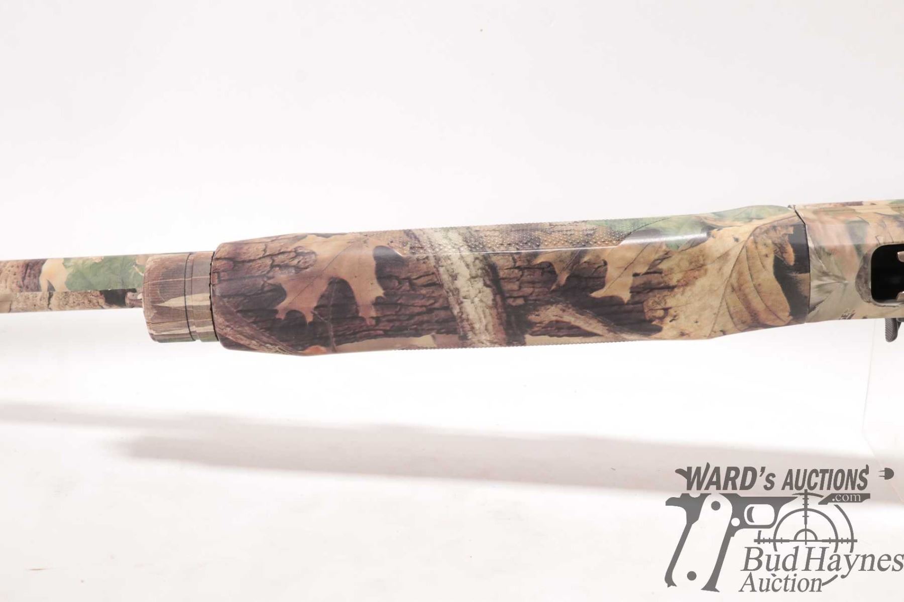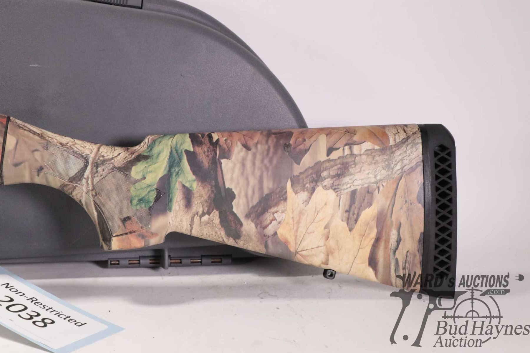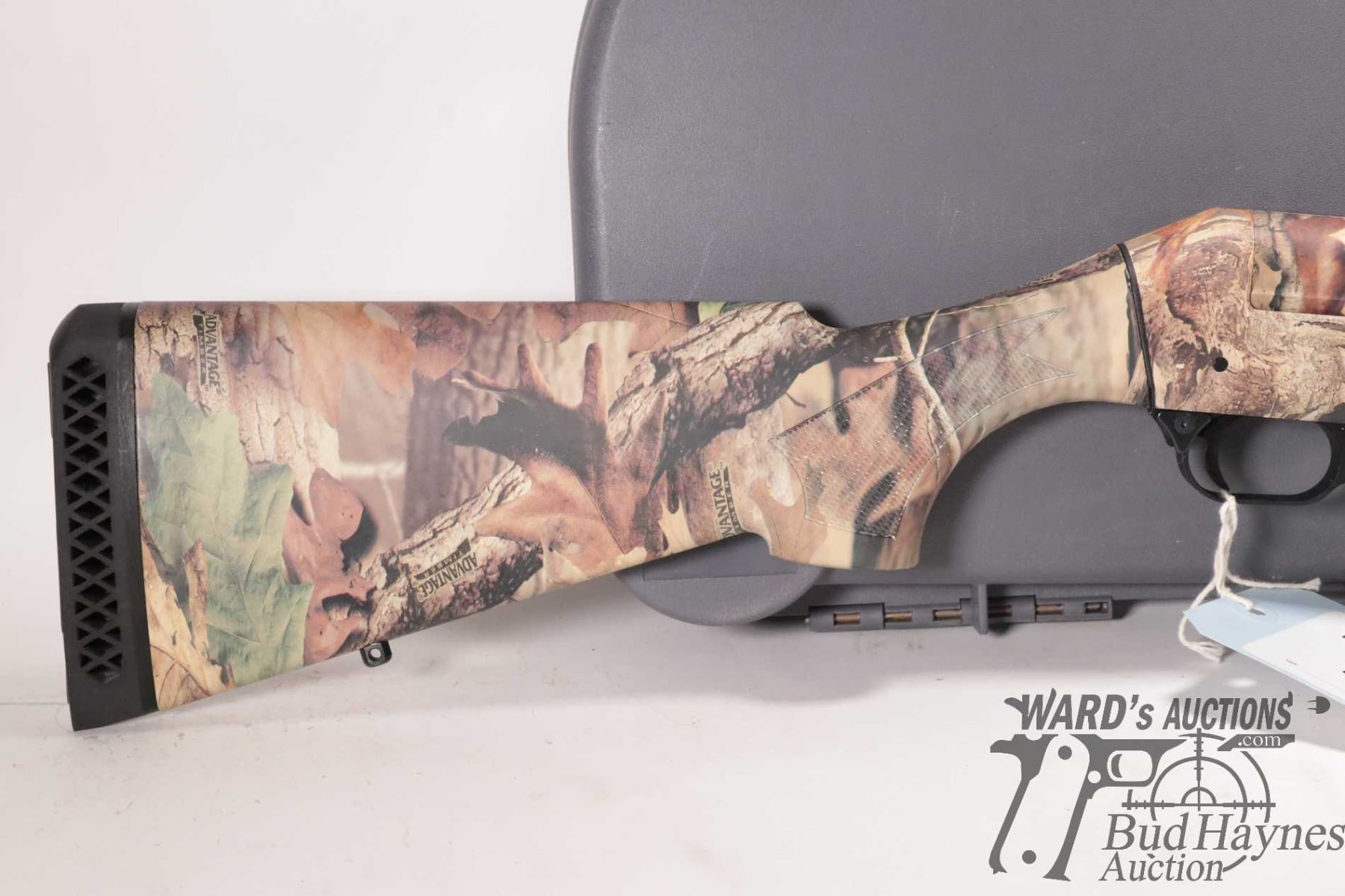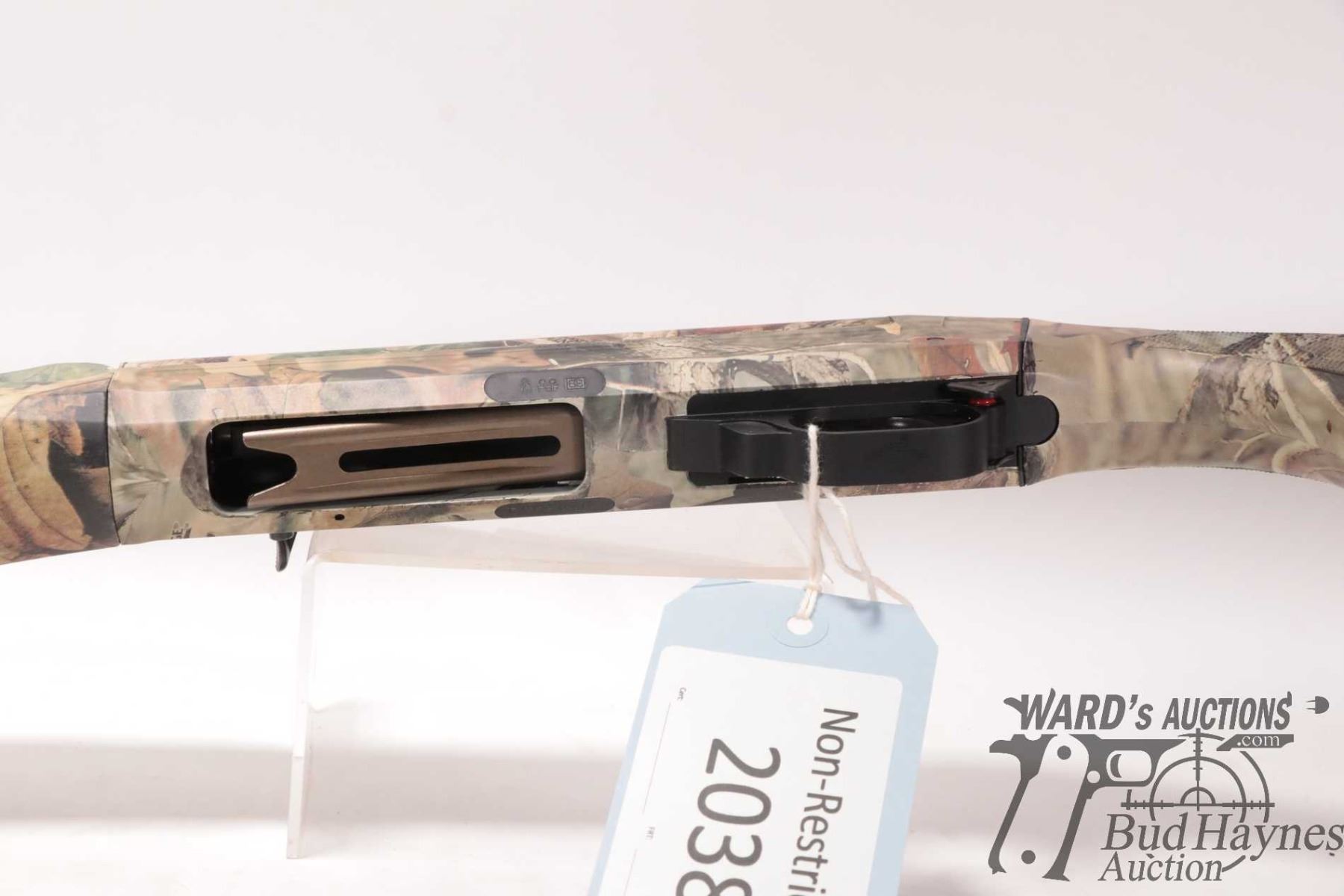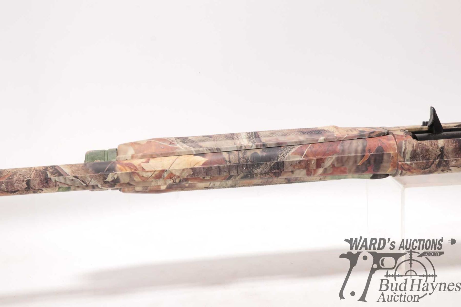 Non-Restricted shotgun Benelli model Super Black Eagle, 12 ga. 2 3/4"- 3 1/2" semi automatic, w/ bbl length 27 1/2" muzzle diameter (Threaded)] [Advantage Timber Camouflaged shotgun with ribbed barrel, double bead sight and front fiber optic insert. Tubular magazine. Includes molded plastic case, five screw in chokes etc. Mechanically and aesthetically appear excellent. Possibly only factory fired.] serial # U192969, PAL required