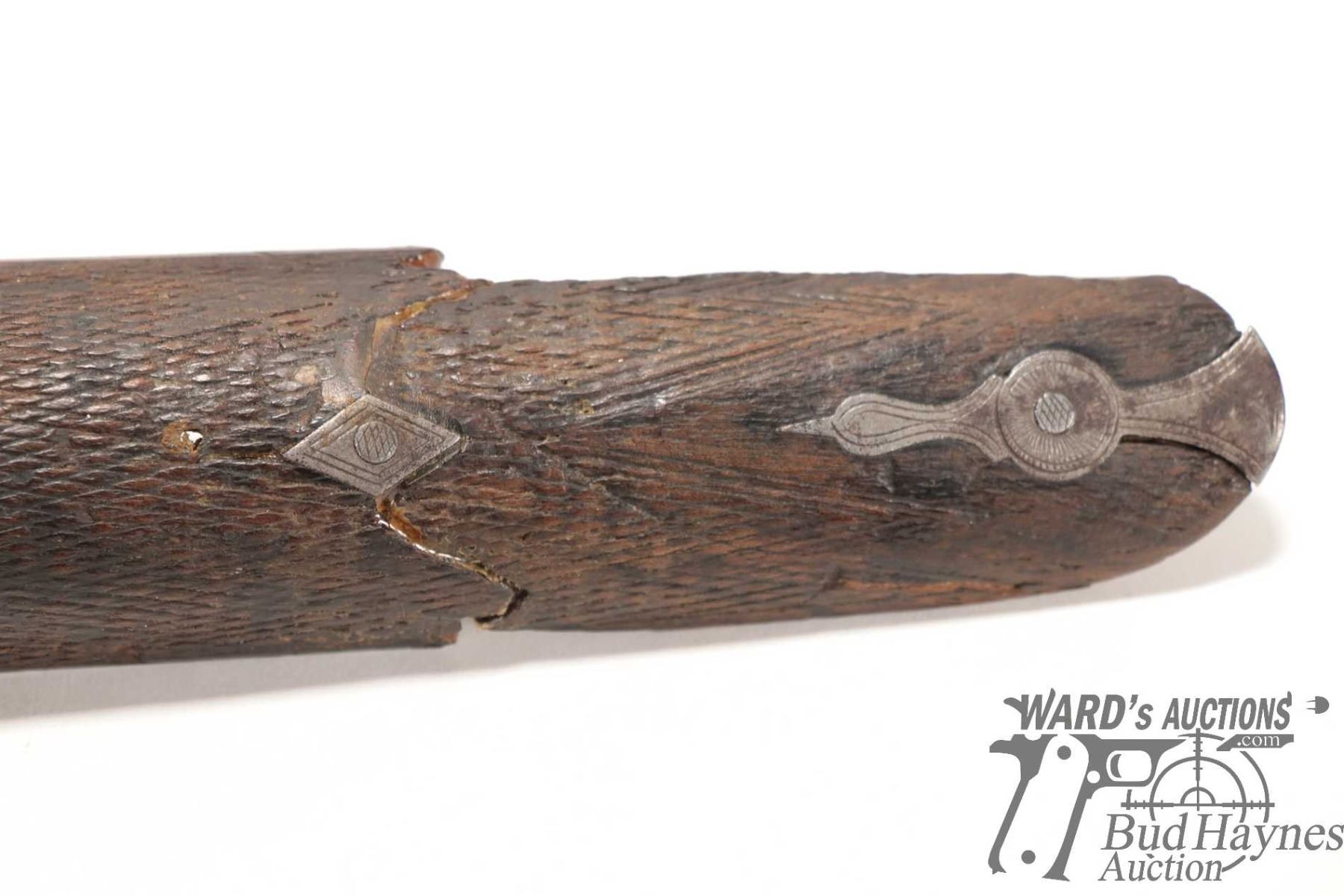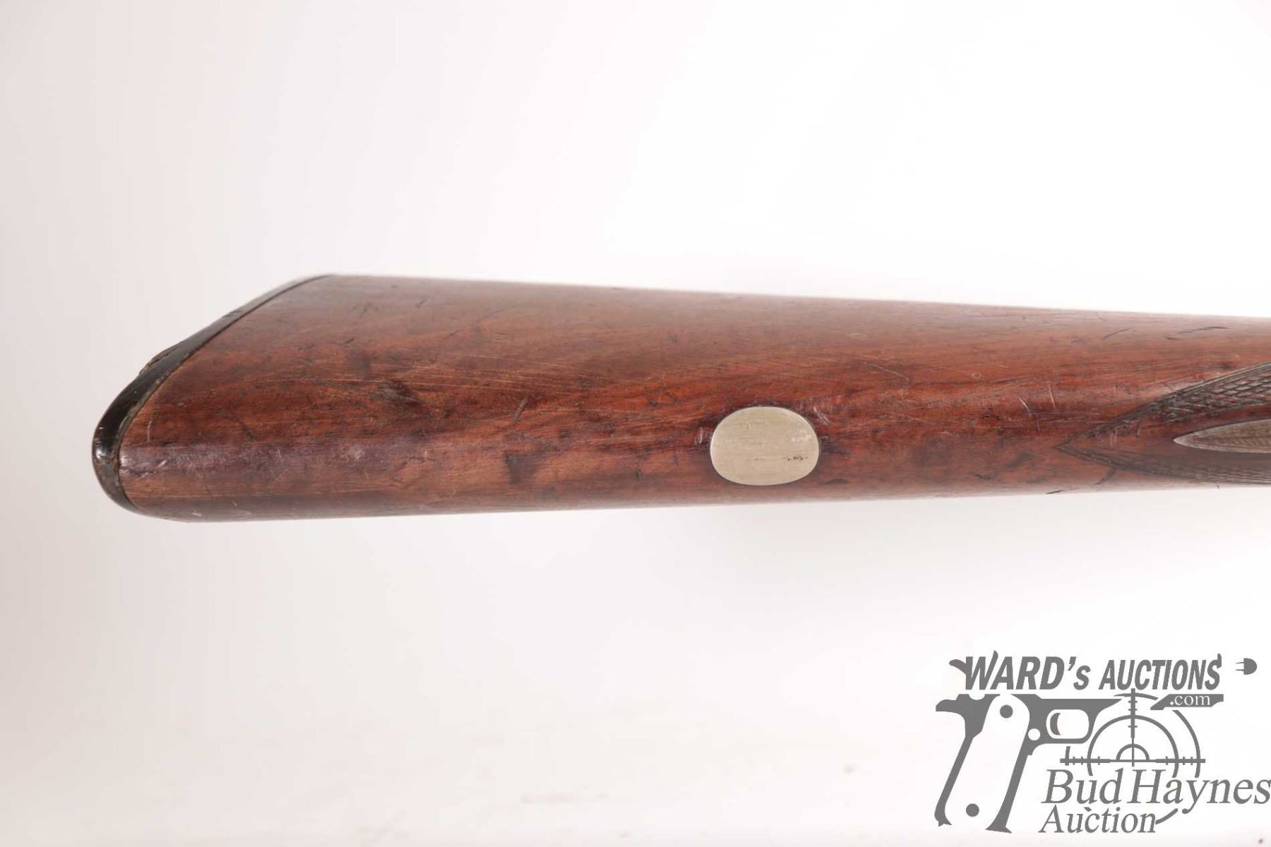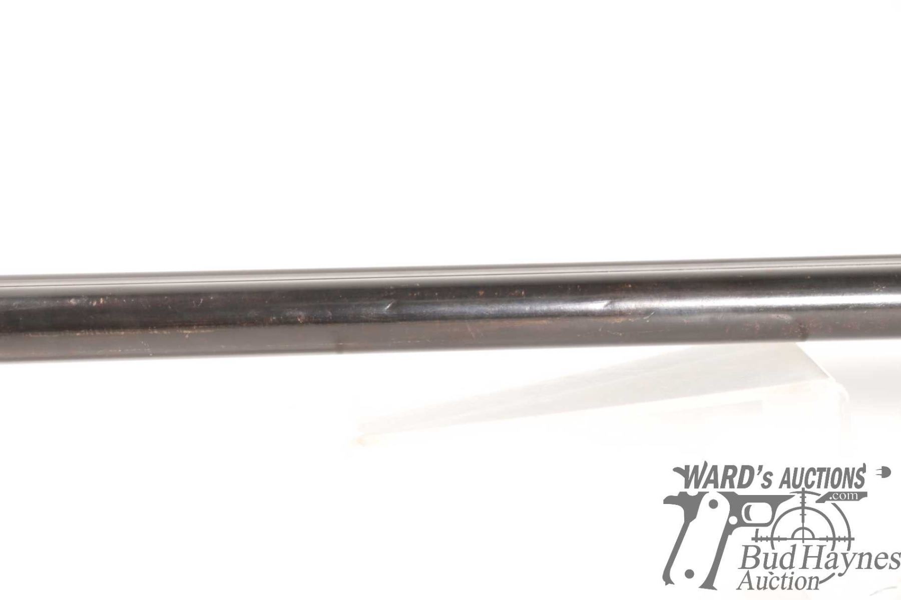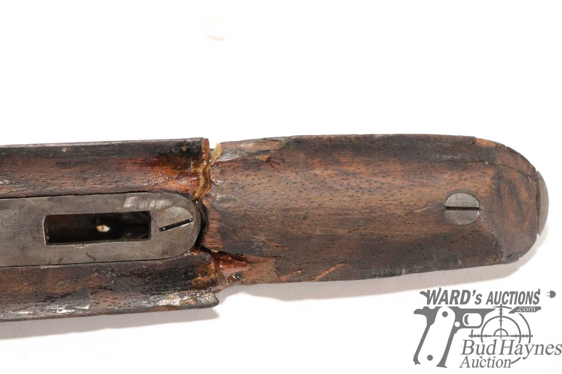 Non-Restricted shotgun Charles Hellis model SXS, 12 ga. 2 1/2" Two shot hinge break, w/ bbl length 30" [Choked markings include (NONE SEEN), bore diameter as measured 6" from muzzle (Left .7165, Right .723), muzzle diameter (Left .719, Right .725)] [Blued barrels and receiver. Single bead sight. Hardwood stock with plastic butt plate. Mechanically functions albeit in heavily used condition with repairs to right hammer spur, non-original screws, cracks in forend and stock, heavy rust etc.] serial # 6720, PAL required