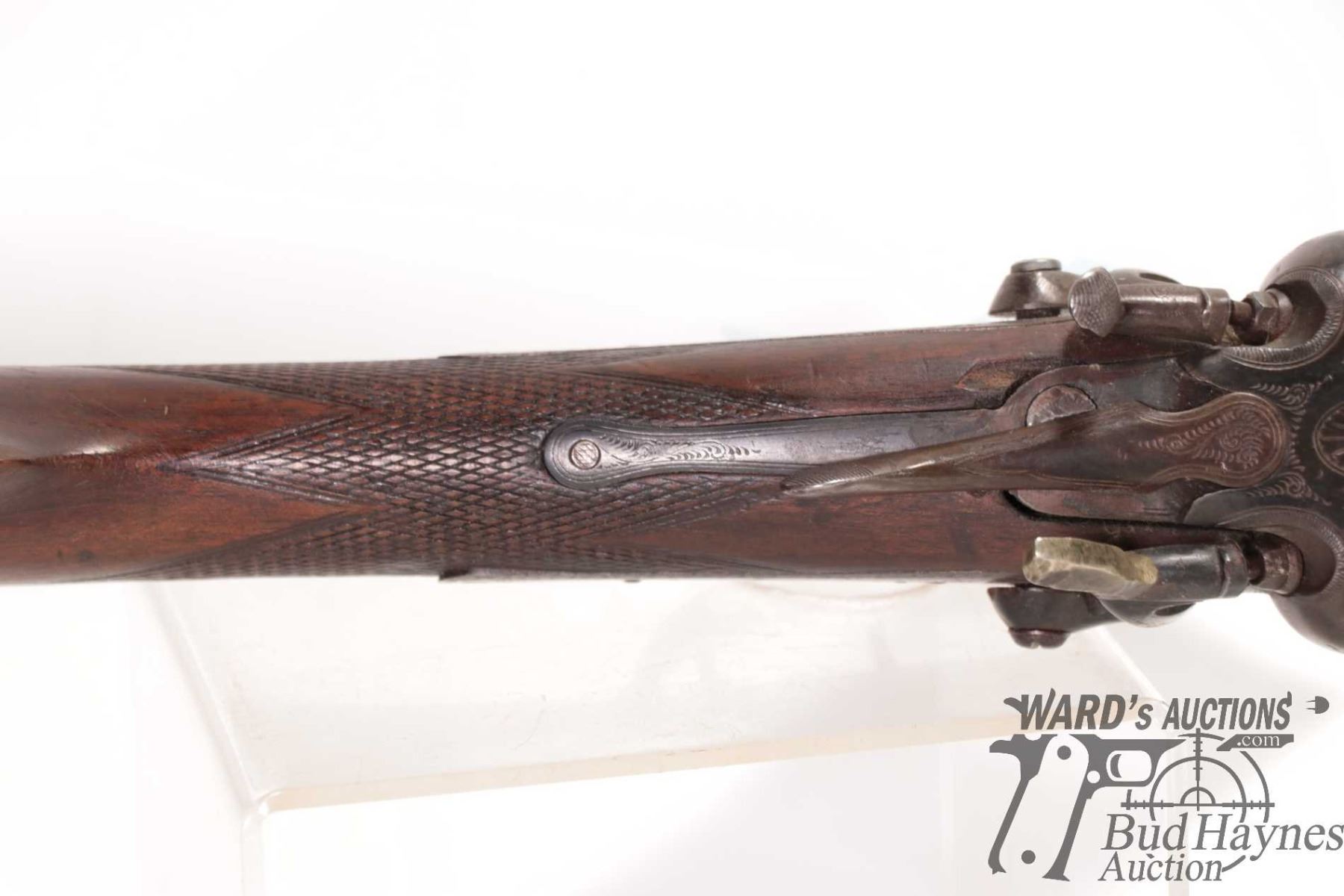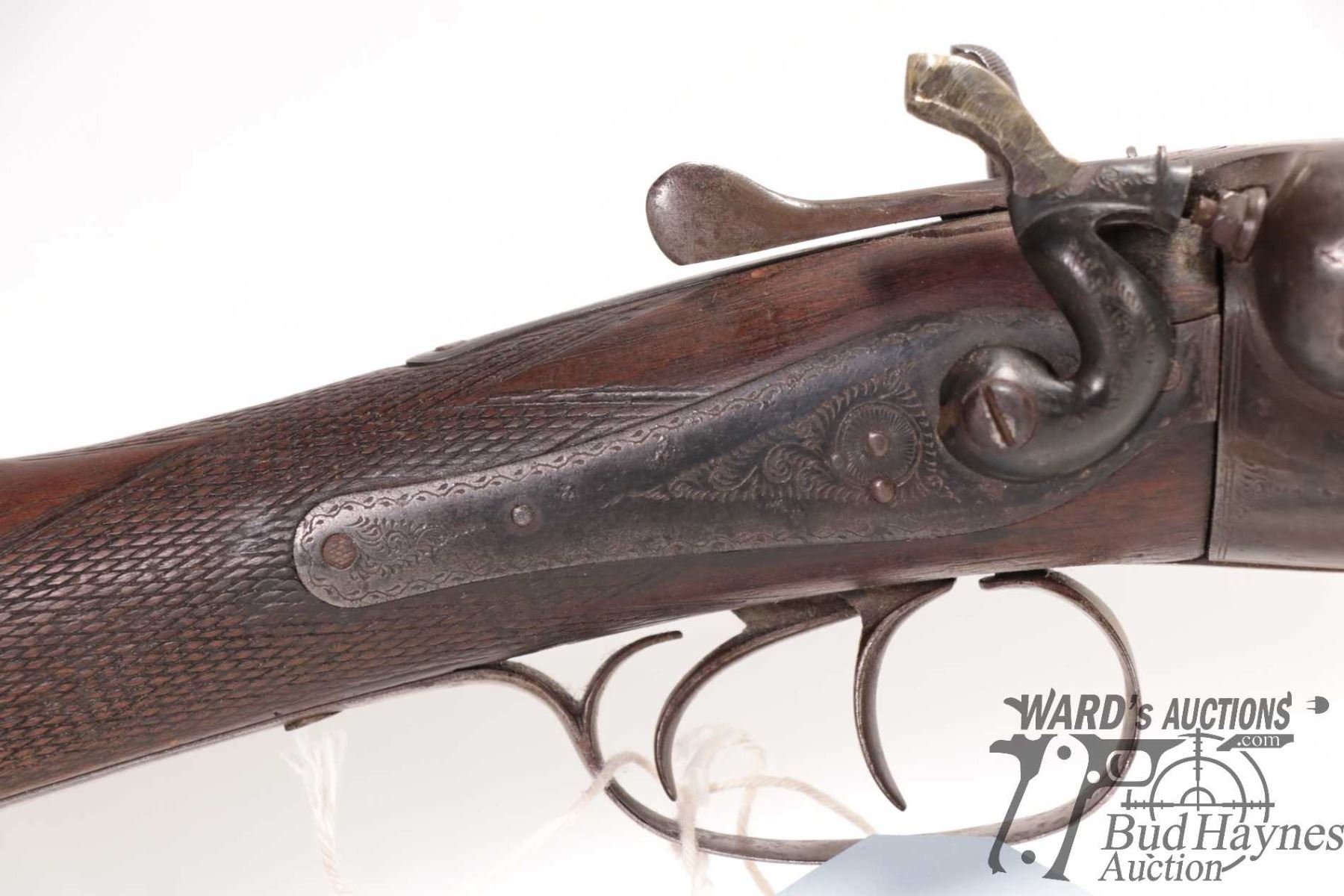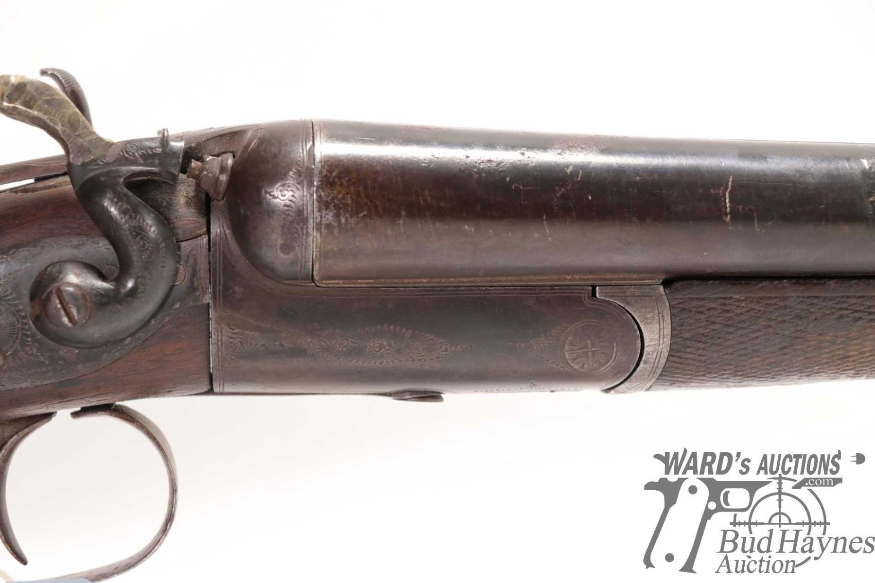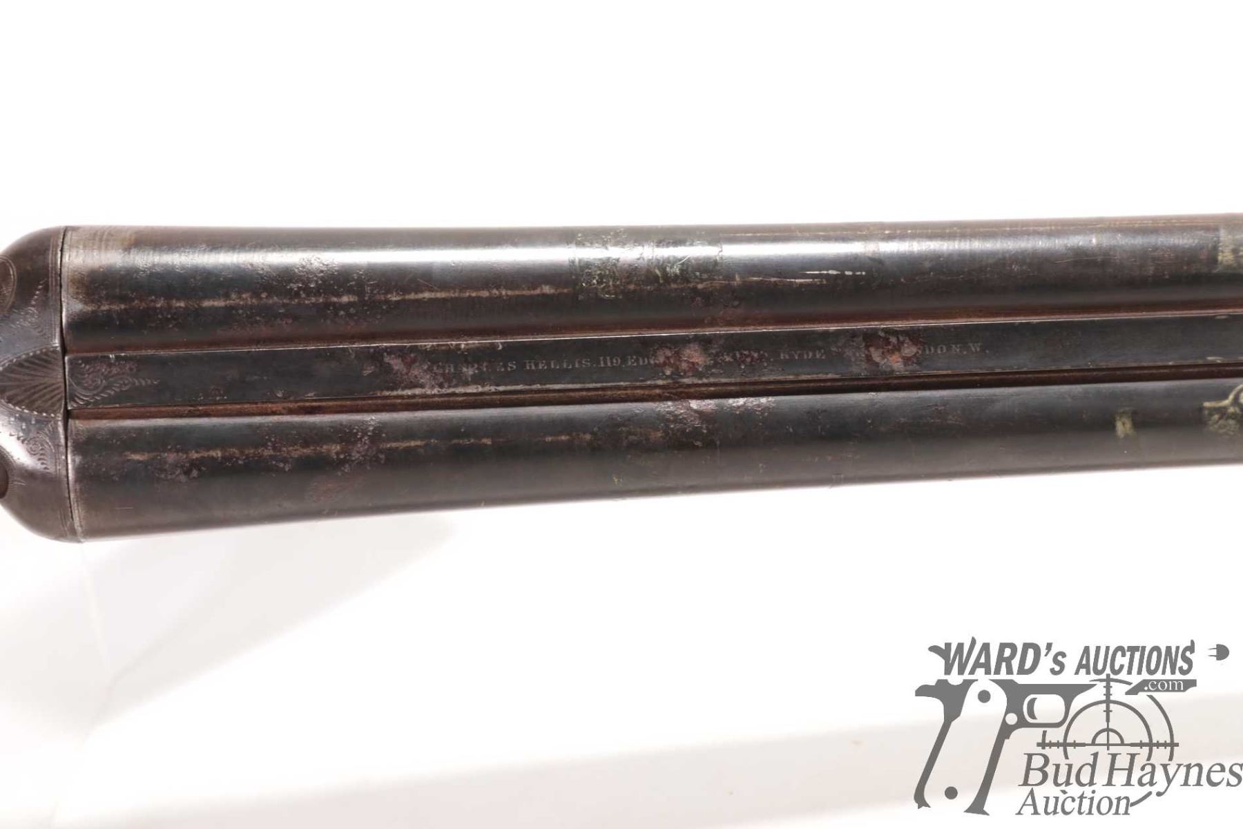 Non-Restricted shotgun Charles Hellis model SXS, 12 ga. 2 1/2" Two shot hinge break, w/ bbl length 3