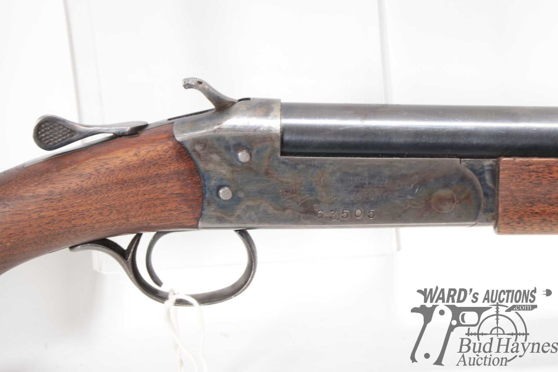 Non-Restricted shotgun Cooey model 84, 12 ga. Unknown Chambert Single hinge break, w/ bbl length 30" [Choked markings include (FULL CHOKE), bore diameter as measured 6" from muzzle (.724), muzzle diameter (.6975)] [Blued barrel and single bead front sight. Case hardened receiver. Smooth wooden stock with plastic butt plate. Matching serial number on receiver and barrel. Mechanically appears to function well. Bluing worn in use and handling areas. NIcks and dings and other use, handling and storage marks.] serial # 63505, PAL required