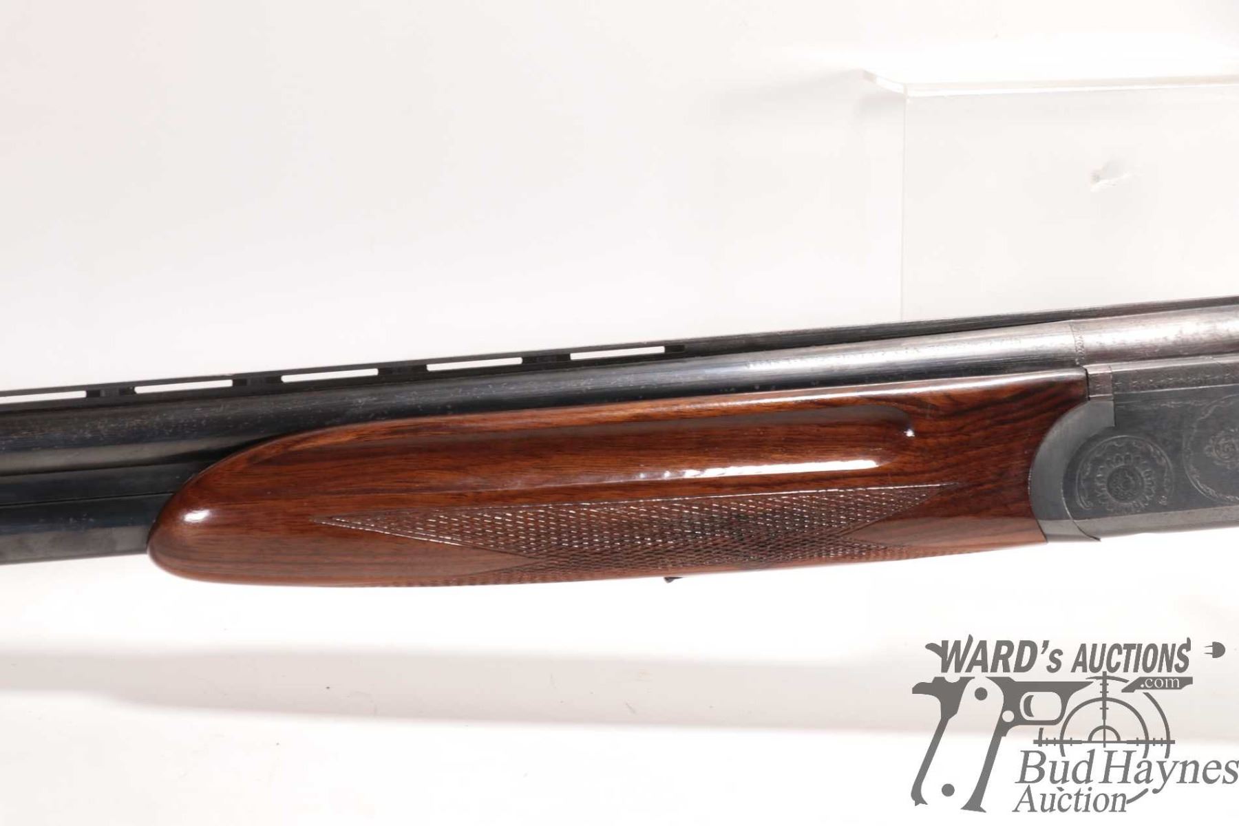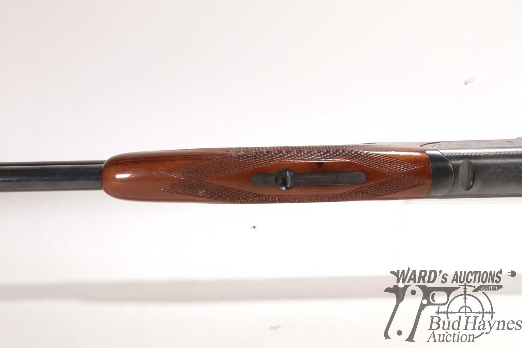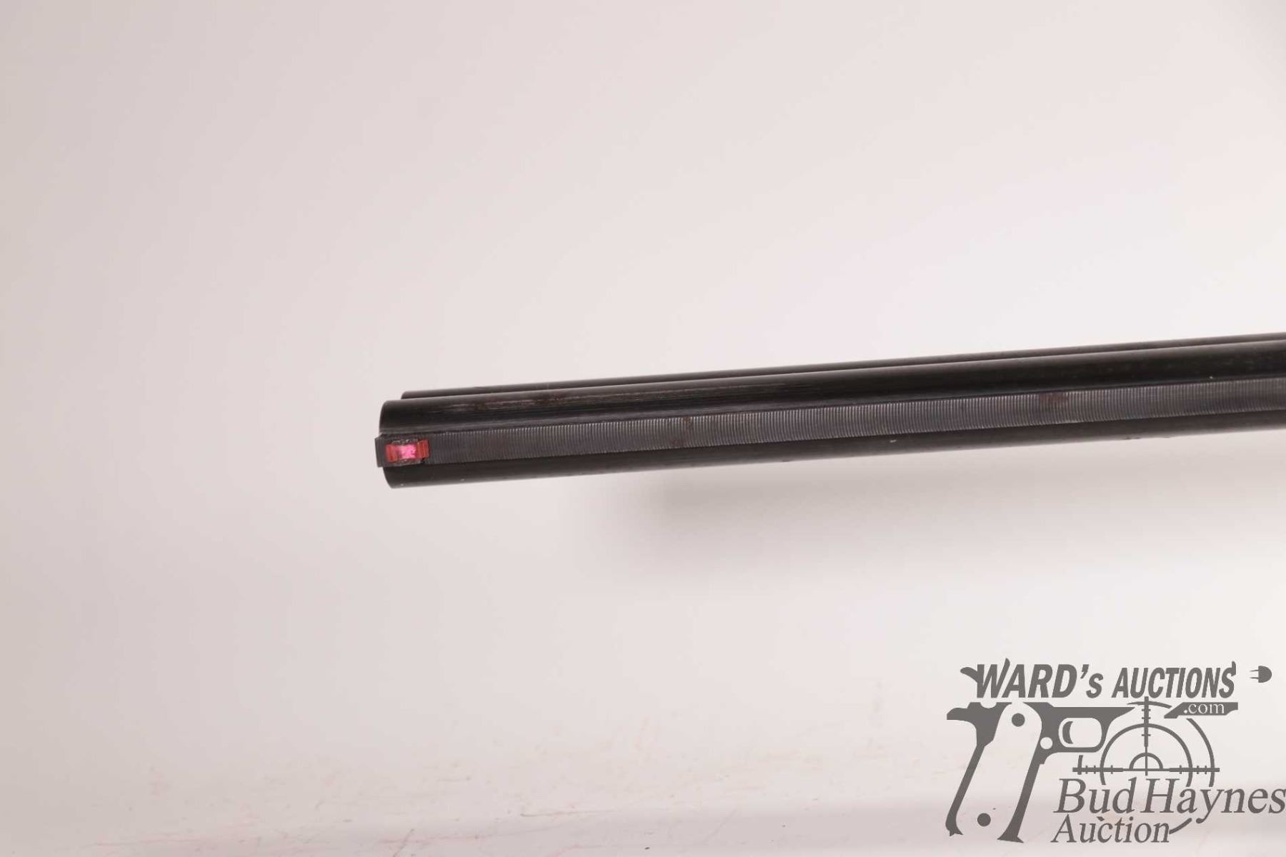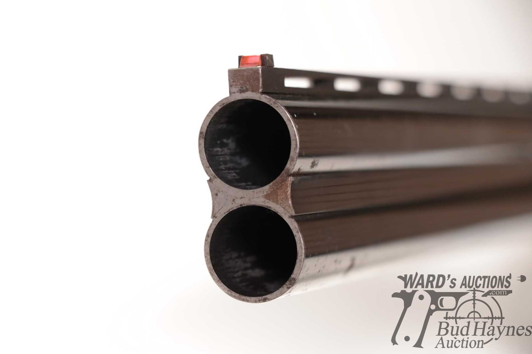 Non-Restricted shotgun Felix Sarasketa model 70, 12 ga., 3" Two shot hinge break, w/ bbl length 26" [Choked markings include (Top ***, Bottom ****), bore diameter as measured 6" from muzzle (Top .7215, Bottom .7245), muzzle diameter (Top .7035, Bottom .7115)] [Blued ribbed barrels and receiver. Single front sight with fiber optic insert. Hardwood stock with recoil pad. Matching serial number on receiver, barrel and forend. Fitted with ejectors. Mechanically appears to function reasonably well. Fine engraving on receiver and other areas. Bluing worn in use and handling areas with some surface rust and pitting and other use, handling and storage marks.] serial # R4841, PAL required