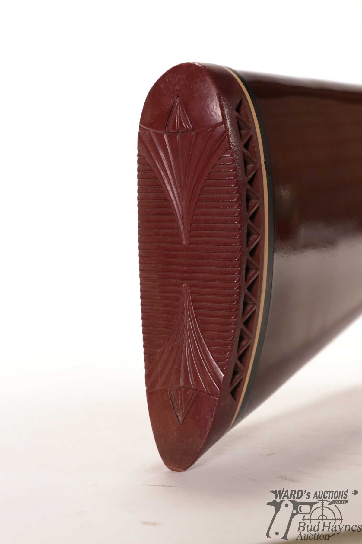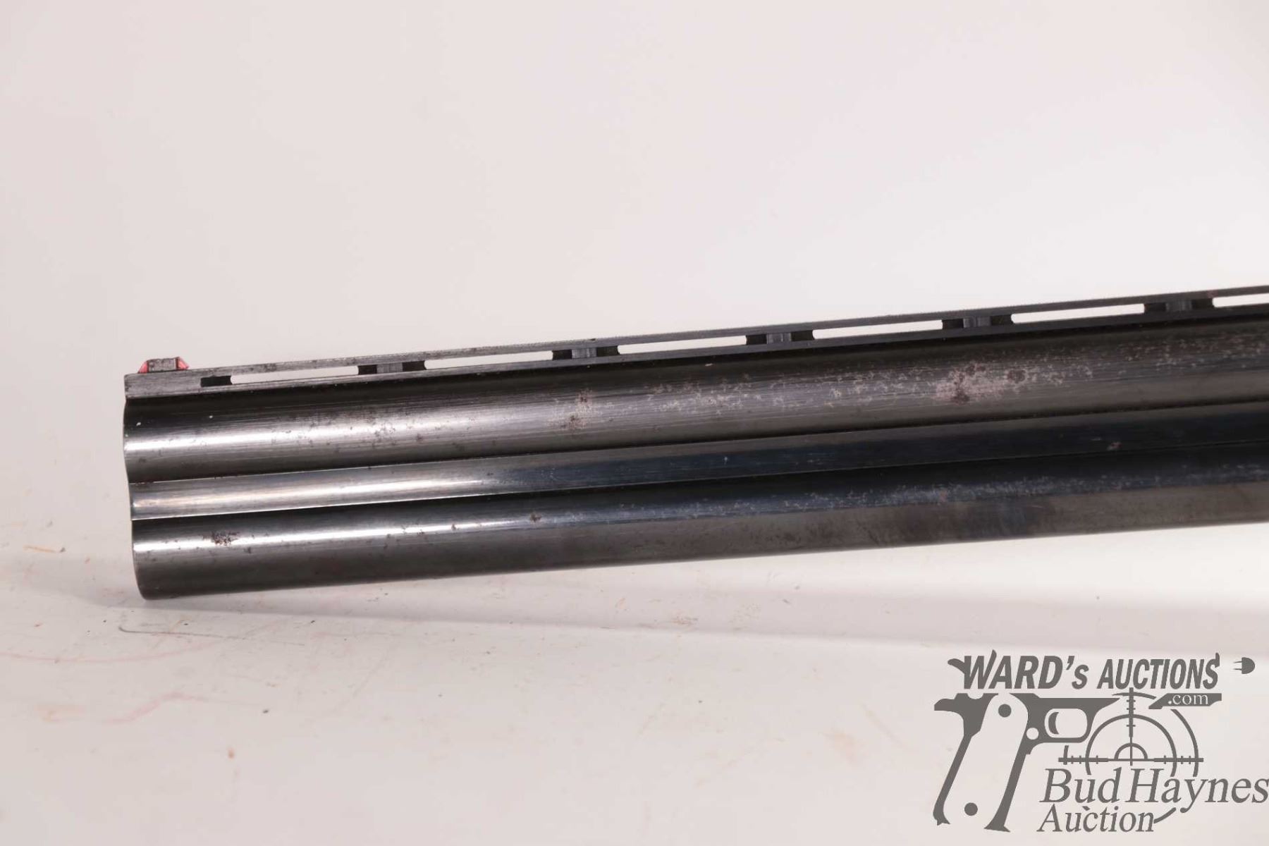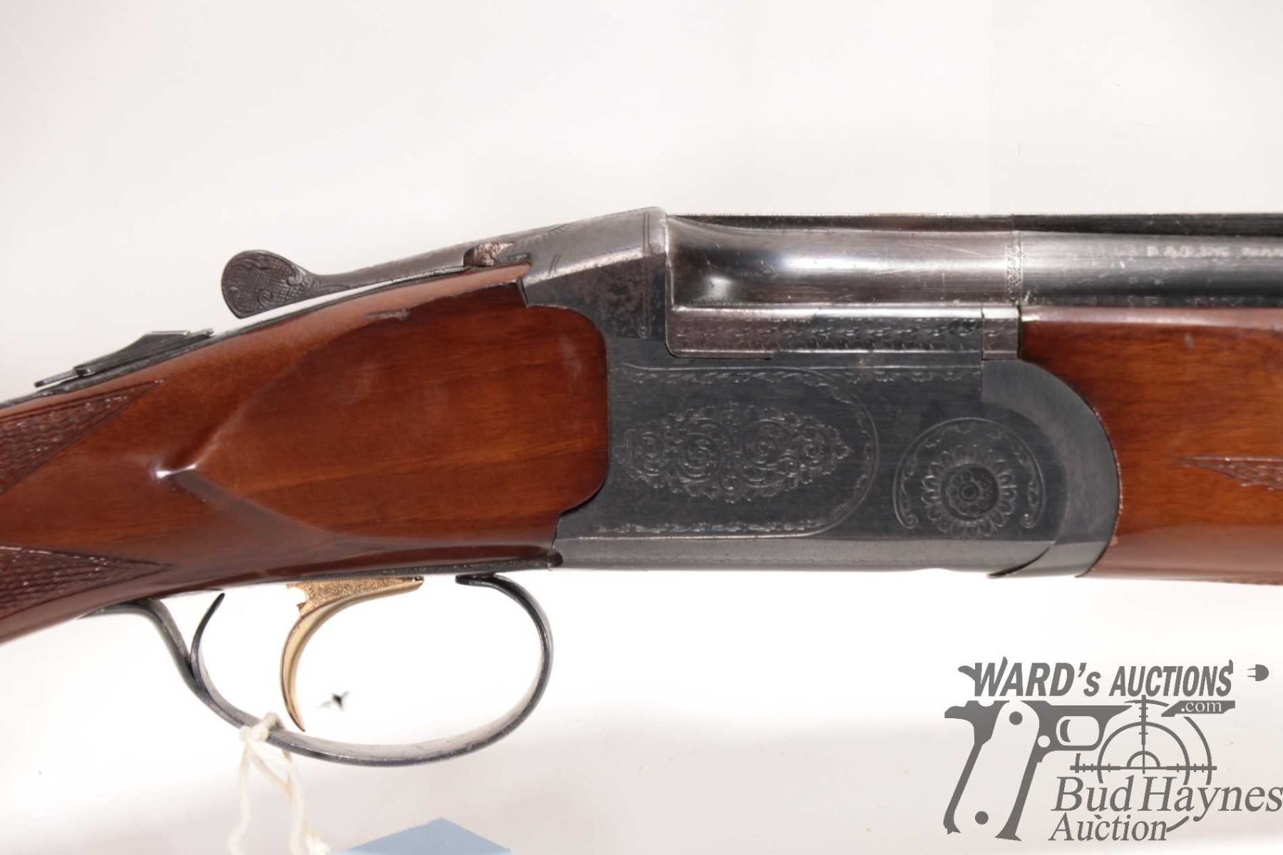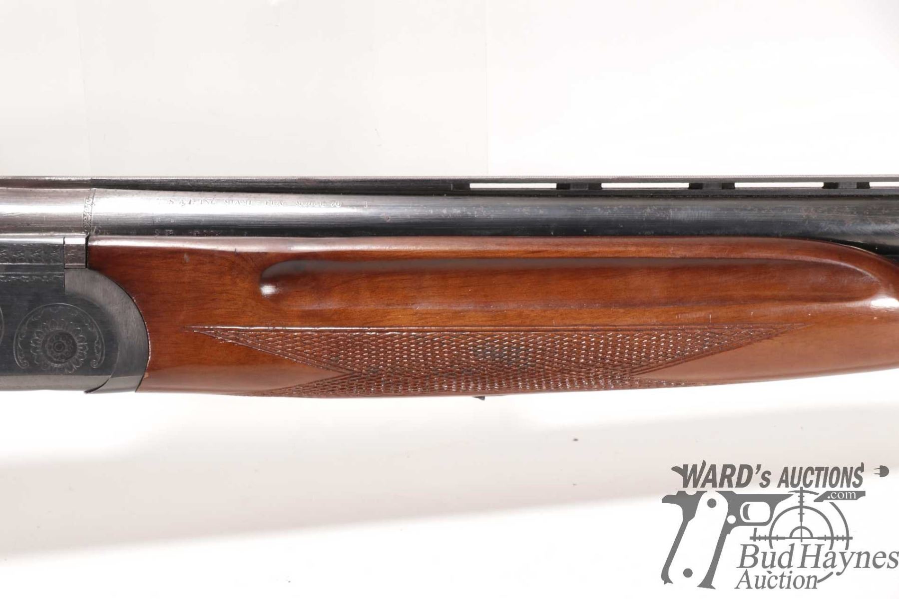 Non-Restricted shotgun Felix Sarasketa model 70, 12 ga., 3" Two shot hinge break, w/ bbl length 26" [Choked markings include (Top ***, Bottom ****), bore diameter as measured 6" from muzzle (Top .7215, Bottom .7245), muzzle diameter (Top .7035, Bottom .7115)] [Blued ribbed barrels and receiver. Single front sight with fiber optic insert. Hardwood stock with recoil pad. Matching serial number on receiver, barrel and forend. Fitted with ejectors. Mechanically appears to function reasonably well. Fine engraving on receiver and other areas. Bluing worn in use and handling areas with some surface rust and pitting and other use, handling and storage marks.] serial # R4841, PAL required