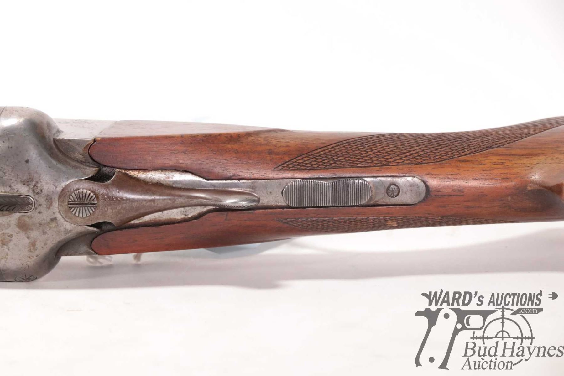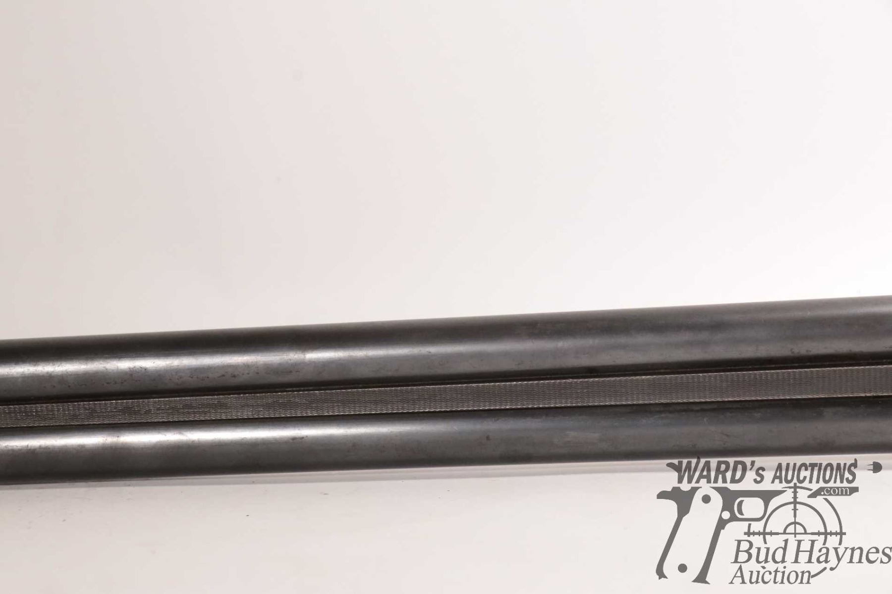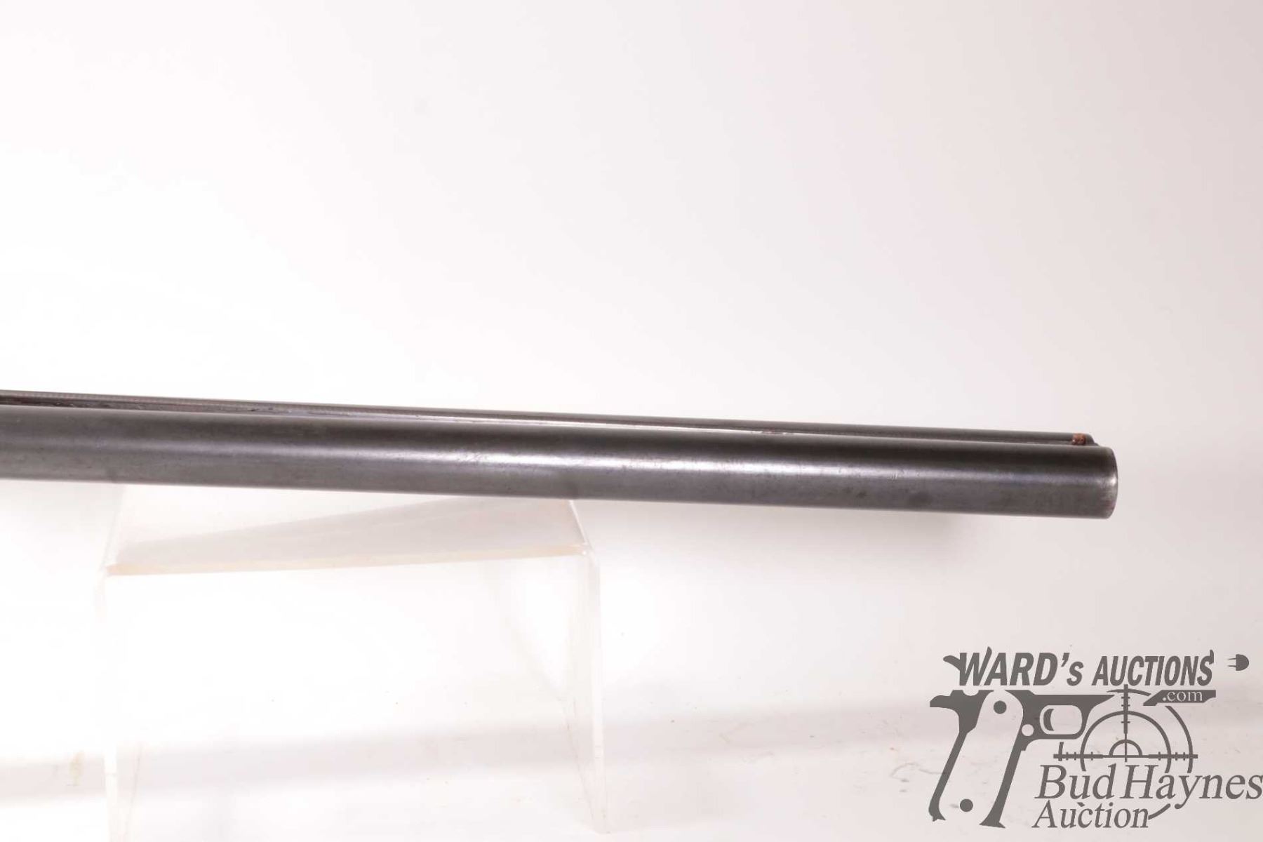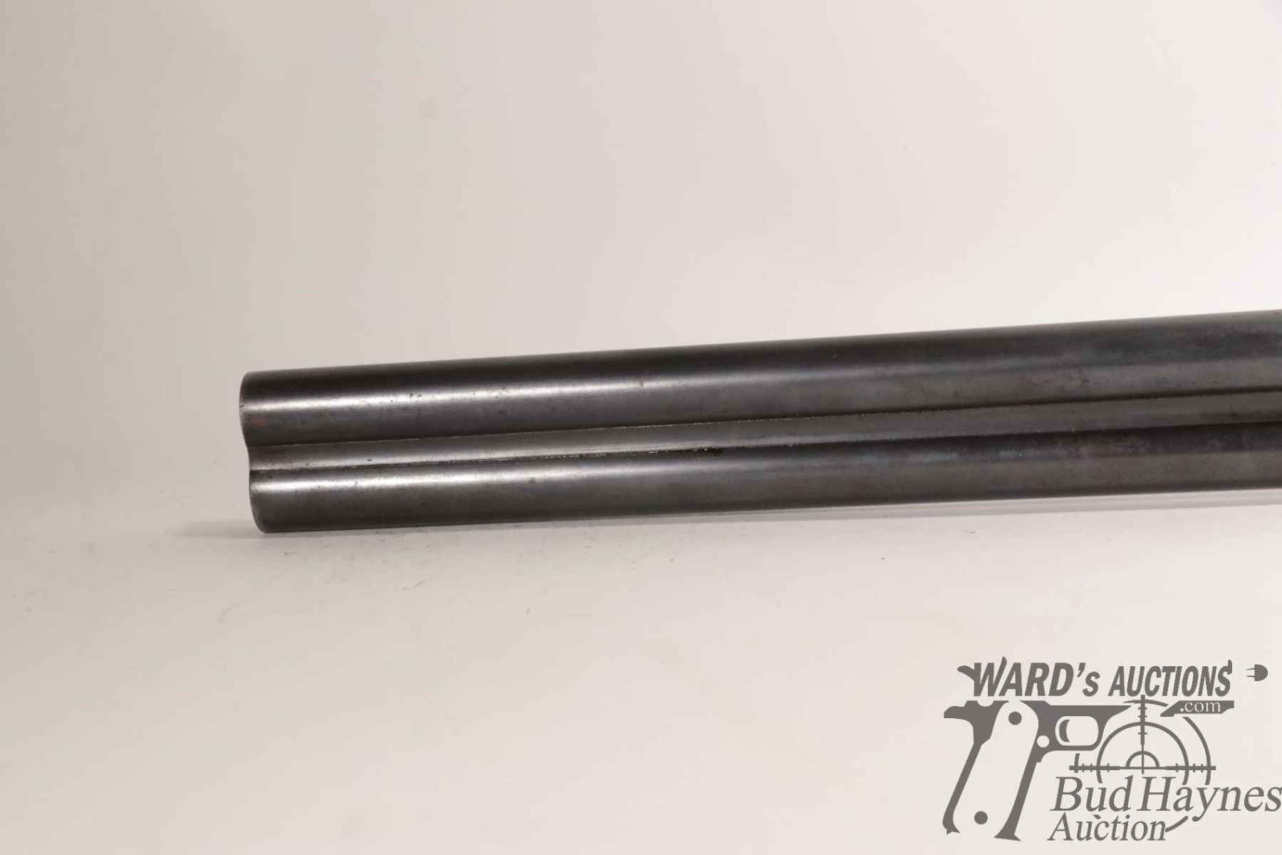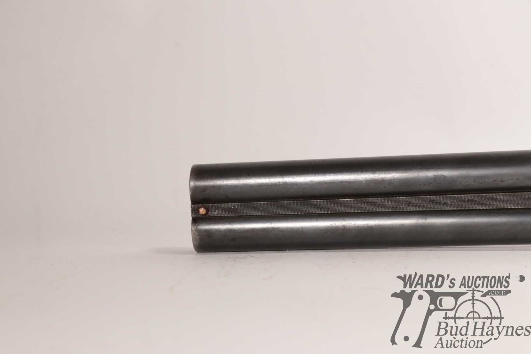 Non-Restricted shotgun GECO model SXS, 12 ga. 2 1/2" Two shot hinge break, w/ bbl length 28 1/2" [Choked markings include (NONE SEEN), bore diameter as measured 6" from muzzle (L .718, R .719), muzzle diameter (L .682, R .688)] [Blued barrels and receiver. Single bead sight. Checkered wooden stock with plastic butt plate. Matching serial number on receiver, barrels and forend. Mechanically appears to function reasonably well. Bluing worn with some minor surface rust. Top and bottom chunks of butt plate missing plus other use, handling and storage marks.] serial # 310666, PAL required