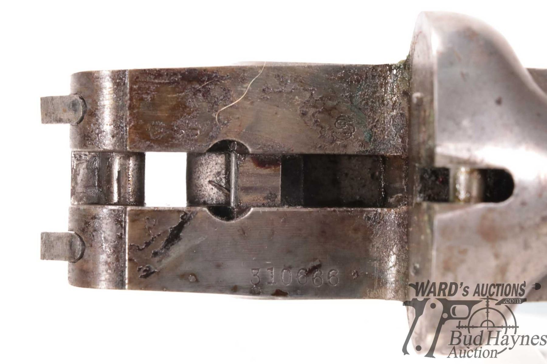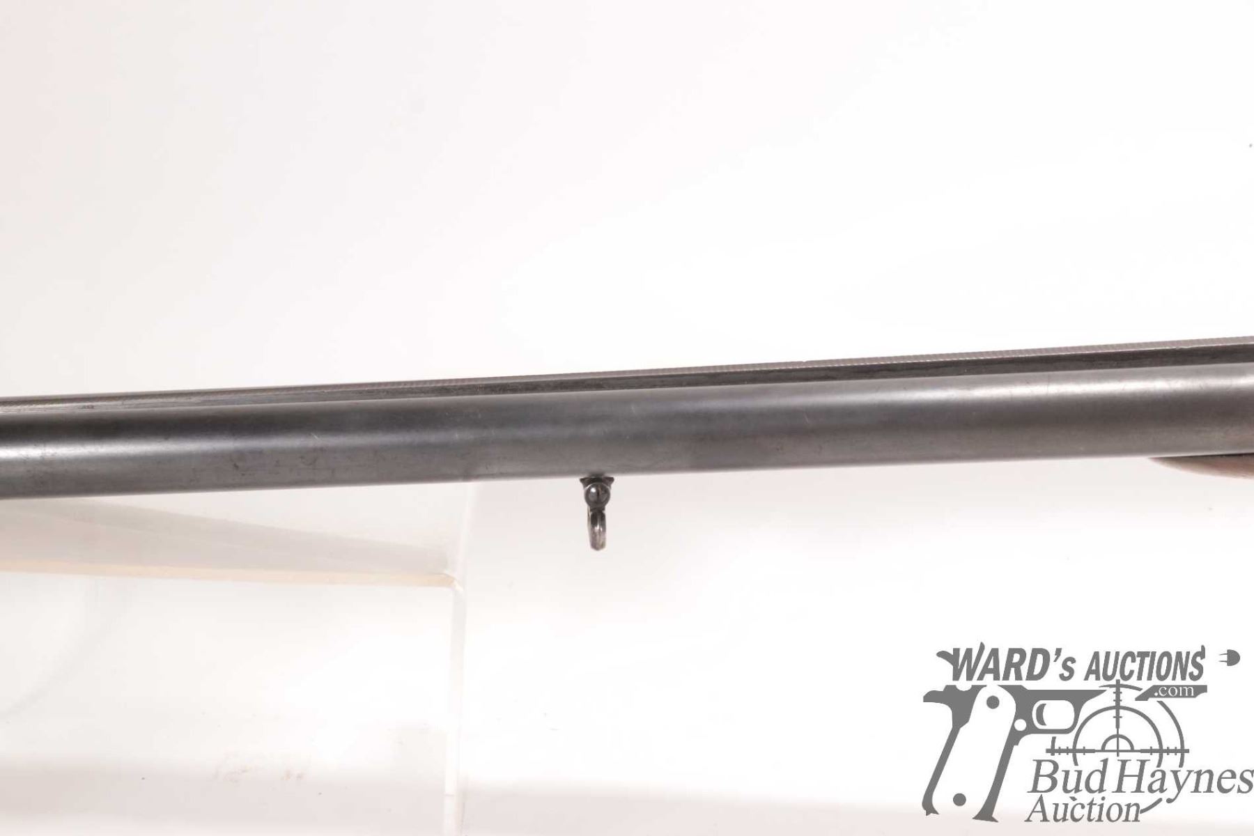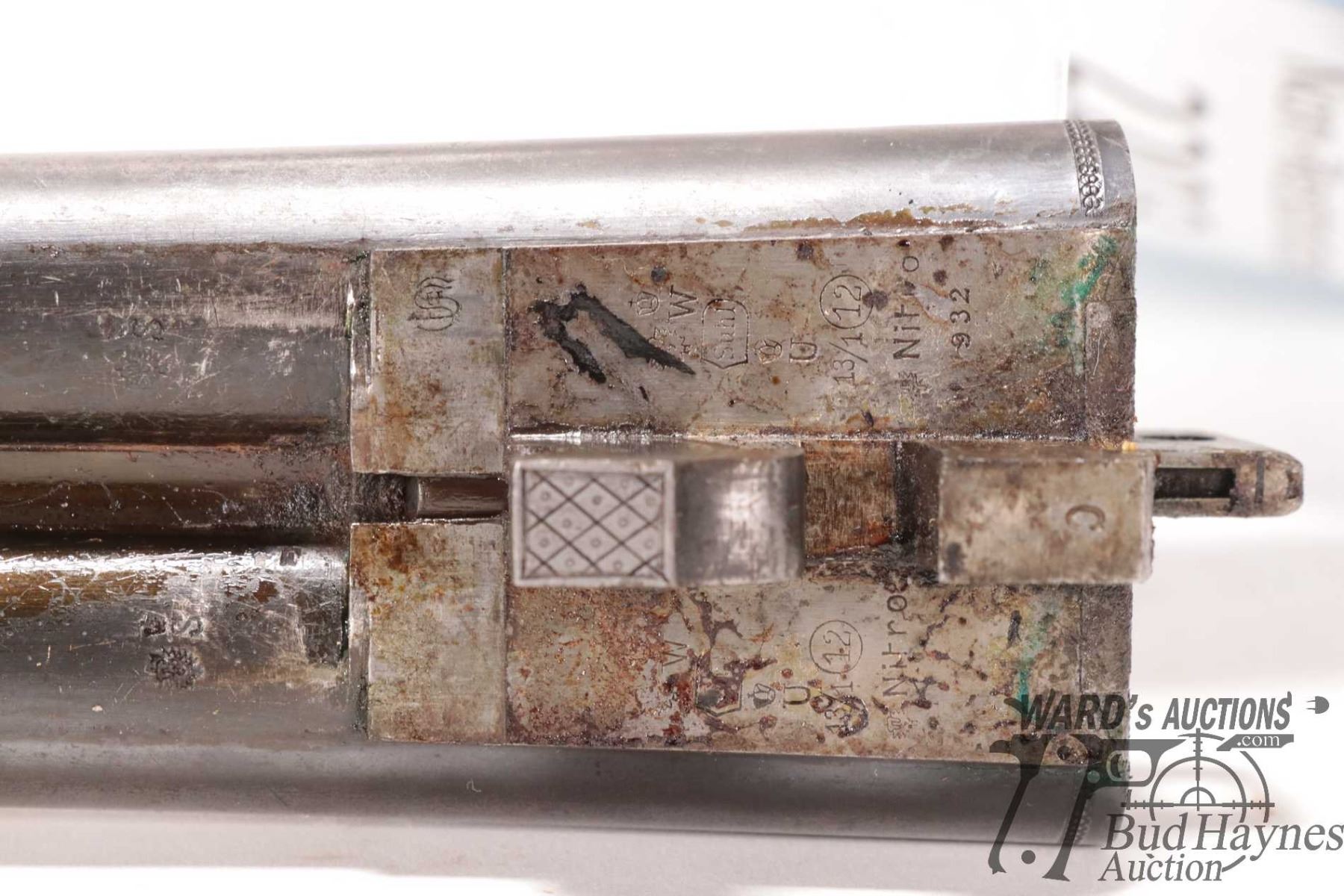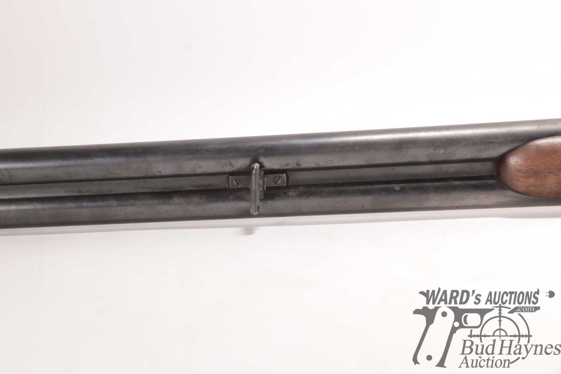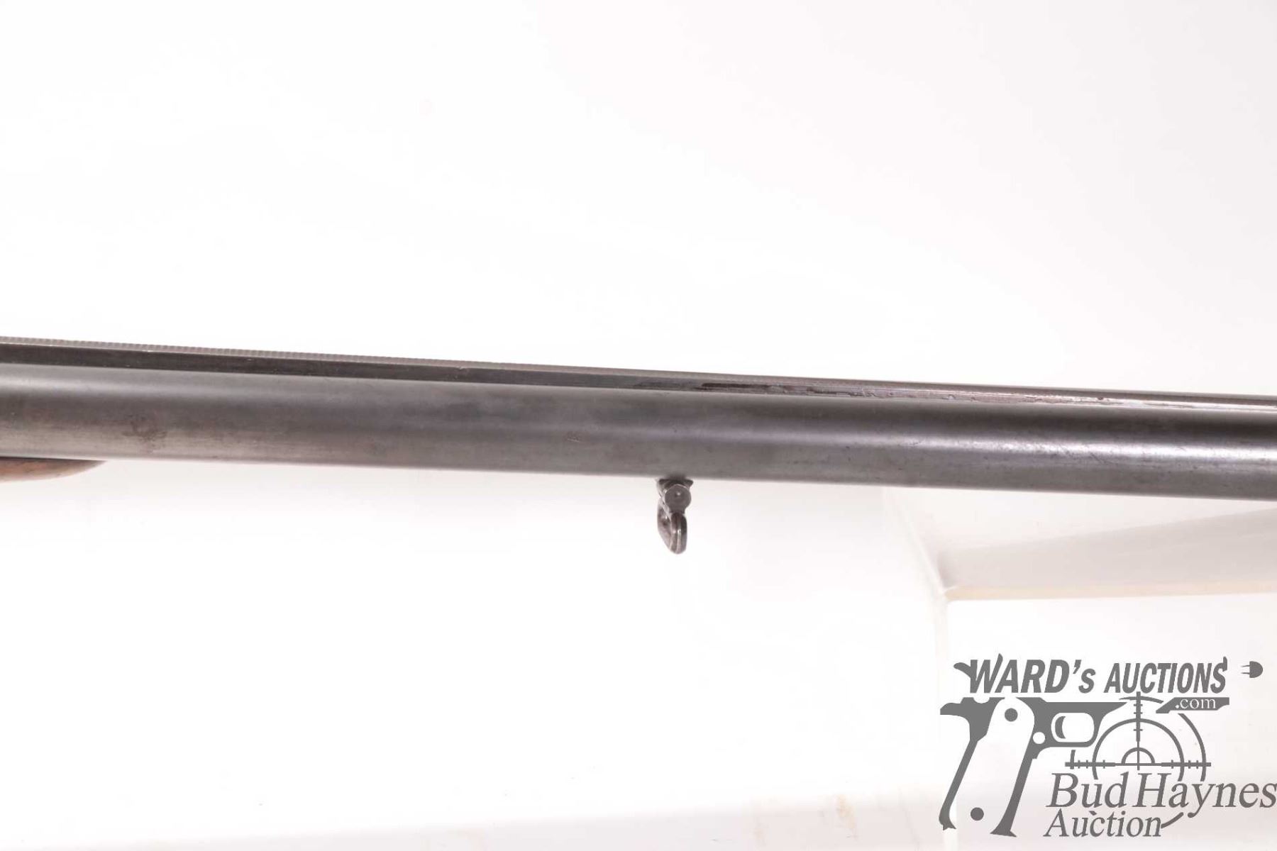 Non-Restricted shotgun GECO model SXS, 12 ga. 2 1/2" Two shot hinge break, w/ bbl length 28 1/2" [Choked markings include (NONE SEEN), bore diameter as measured 6" from muzzle (L .718, R .719), muzzle diameter (L .682, R .688)] [Blued barrels and receiver. Single bead sight. Checkered wooden stock with plastic butt plate. Matching serial number on receiver, barrels and forend. Mechanically appears to function reasonably well. Bluing worn with some minor surface rust. Top and bottom chunks of butt plate missing plus other use, handling and storage marks.] serial # 310666, PAL required