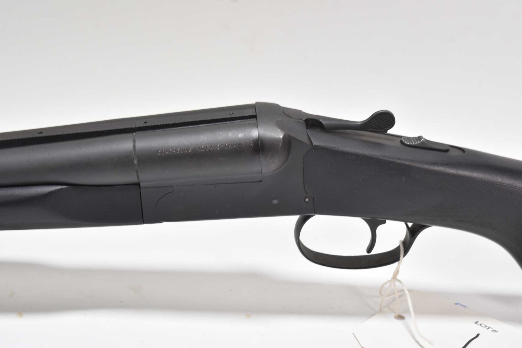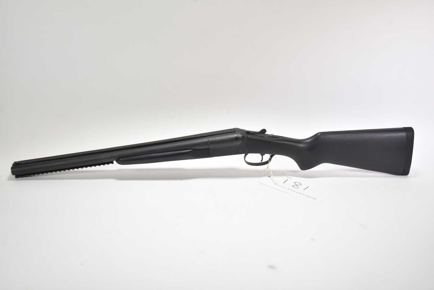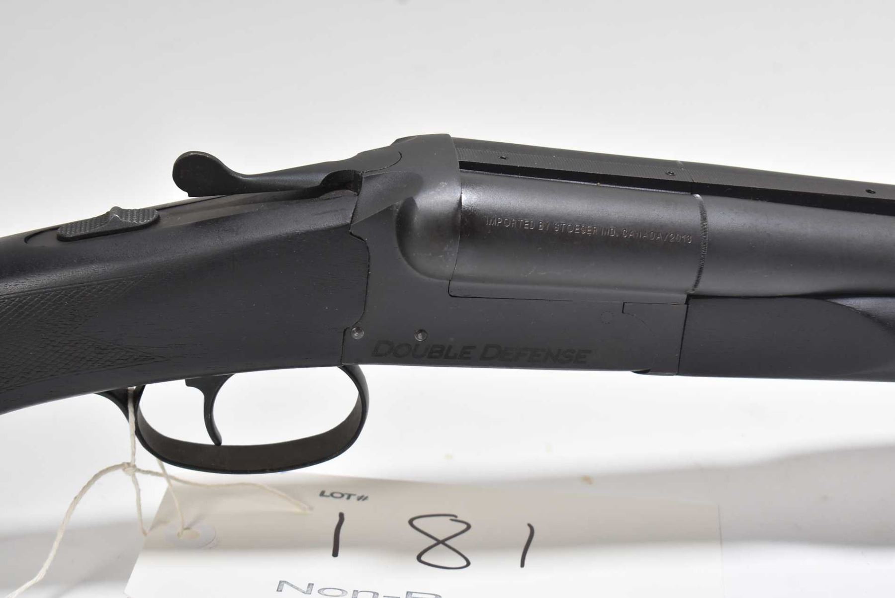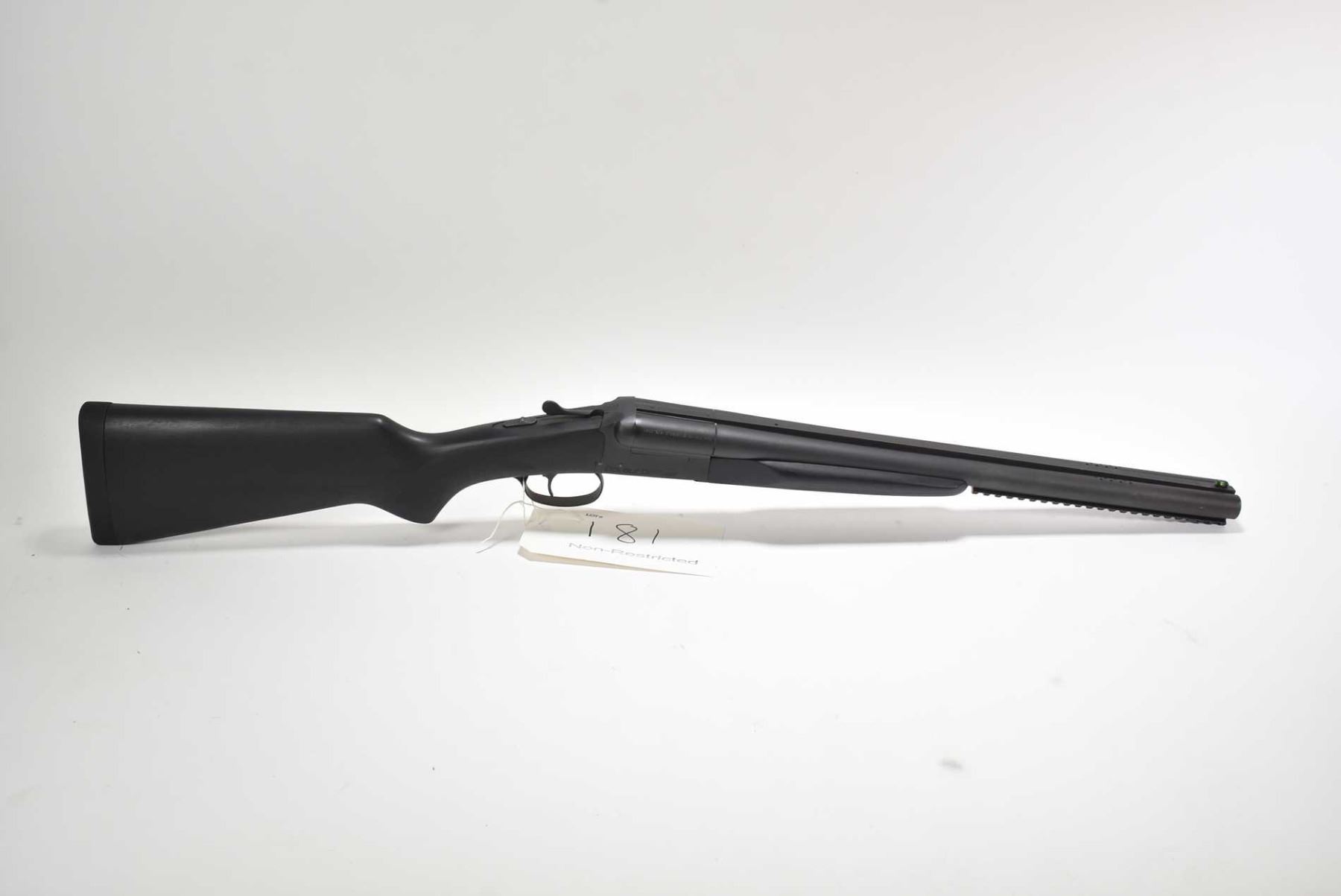 Non-Restricted shotgun Gaucha model Double Defense, 12 ga. 3" two shot hinge break, w/ bbl length 20" [Parkerized double barrel and receiver with black laminated wooden stock and forend, single bead front sight, picatinny rail.Nicks and marks to wood and metal, storage, use and handling marks] serial # A059547-13, PAL required