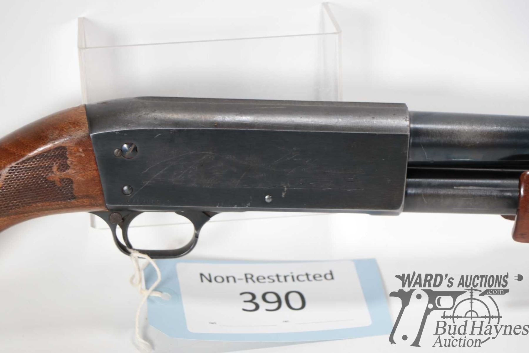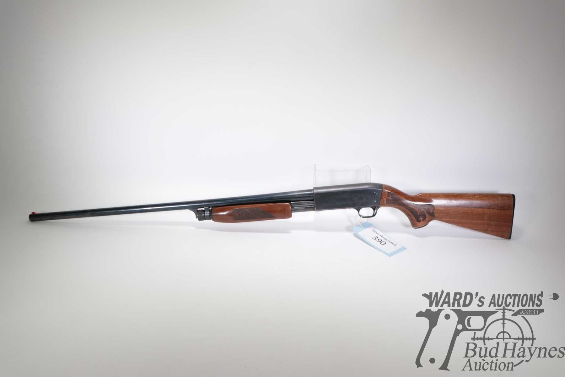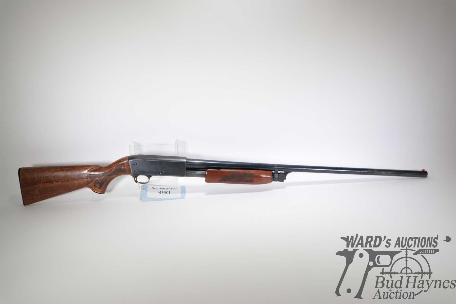 Non-Restricted shotgun Ithaca model 37 featherlight, 12Ga 2 3/4" pump action, w/ bbl length 30" [Choked markings include (FULL CHOKE), bore diameter as measured 6" from muzzle (.7285), muzzle diameter (.697)] [Blued barrel and receiver. Fiber optic front bead style sight. Hardwood stock with branded plastic butt plate. Checkered semi pistol grip and forend. Mechanically appears to function reasonably well. Bluing worn in use and handling areas plus scratches in bluing, scratches and dings with missing finish on wood and other use, handling and storage marks.] serial # 371306517, PAL required. Descriptions subject to change.