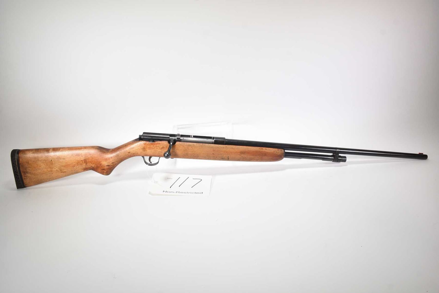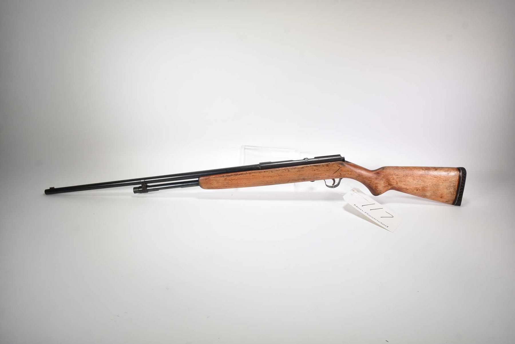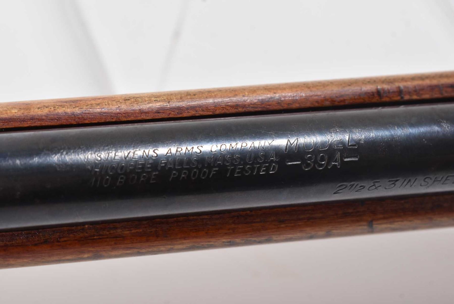 Non-Restricted shotgun J. Stevens model 39A, 410 ga. 2 1/2-3 tube fed bolt action, w/ bbl length 24 1/2" [Blued barrel and receiver. Single fibreoptic front sight, smooth wood stock and recoil pad. Action feels smooth. Stock appears to have been refinished. Use, handling and storage marks on wood and metal] serial # NIL, PAL required