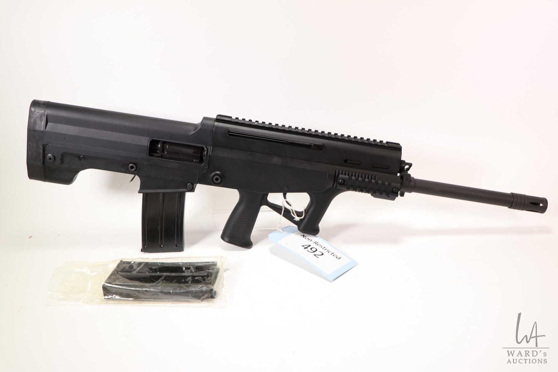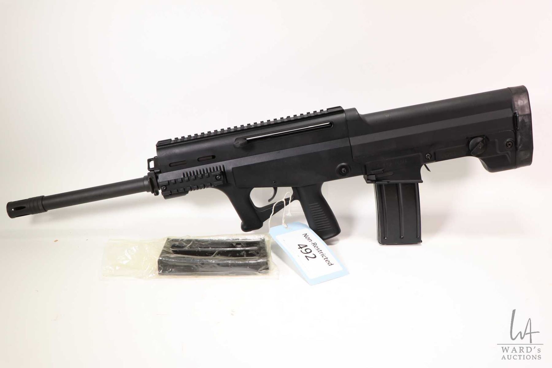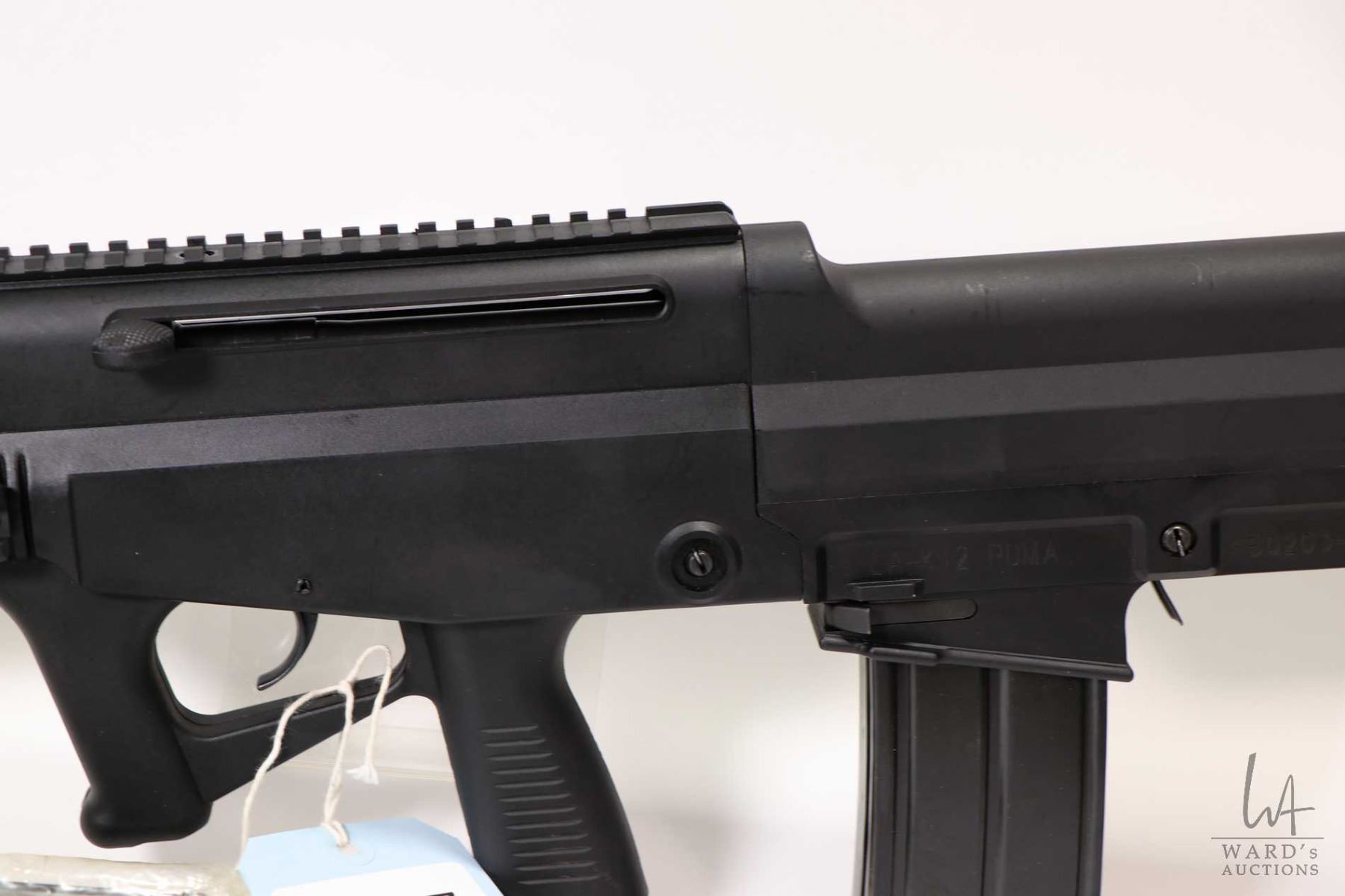 Non-Restricted shotgun Lever Arms model LA-K12 PUMA, 12 gauge 2 3/4" five shot semi automatic, w/ bbl length 19" [Flat black barrel fitted with flash hider. Polymer design bullpup. Fitted with flat top rail and side rails. No fixed sights. Sling rings. Includes two steel five round magazine. Use, handling and storage marks.] serial # KB020314, PAL required