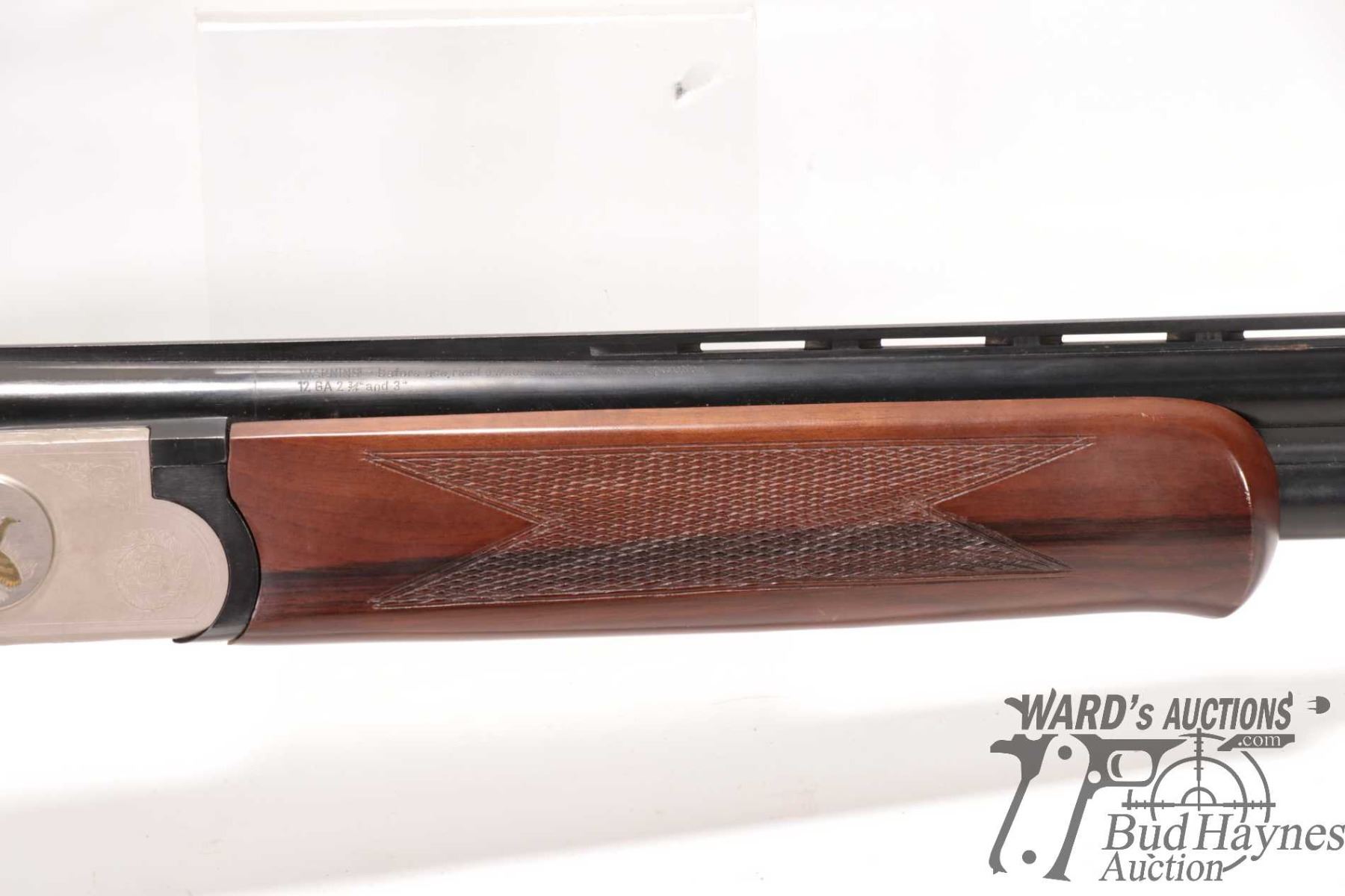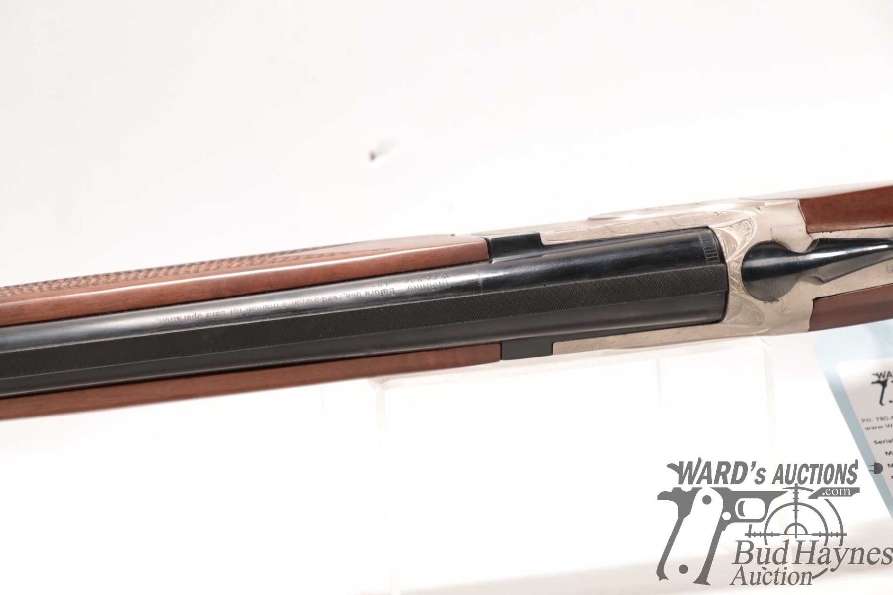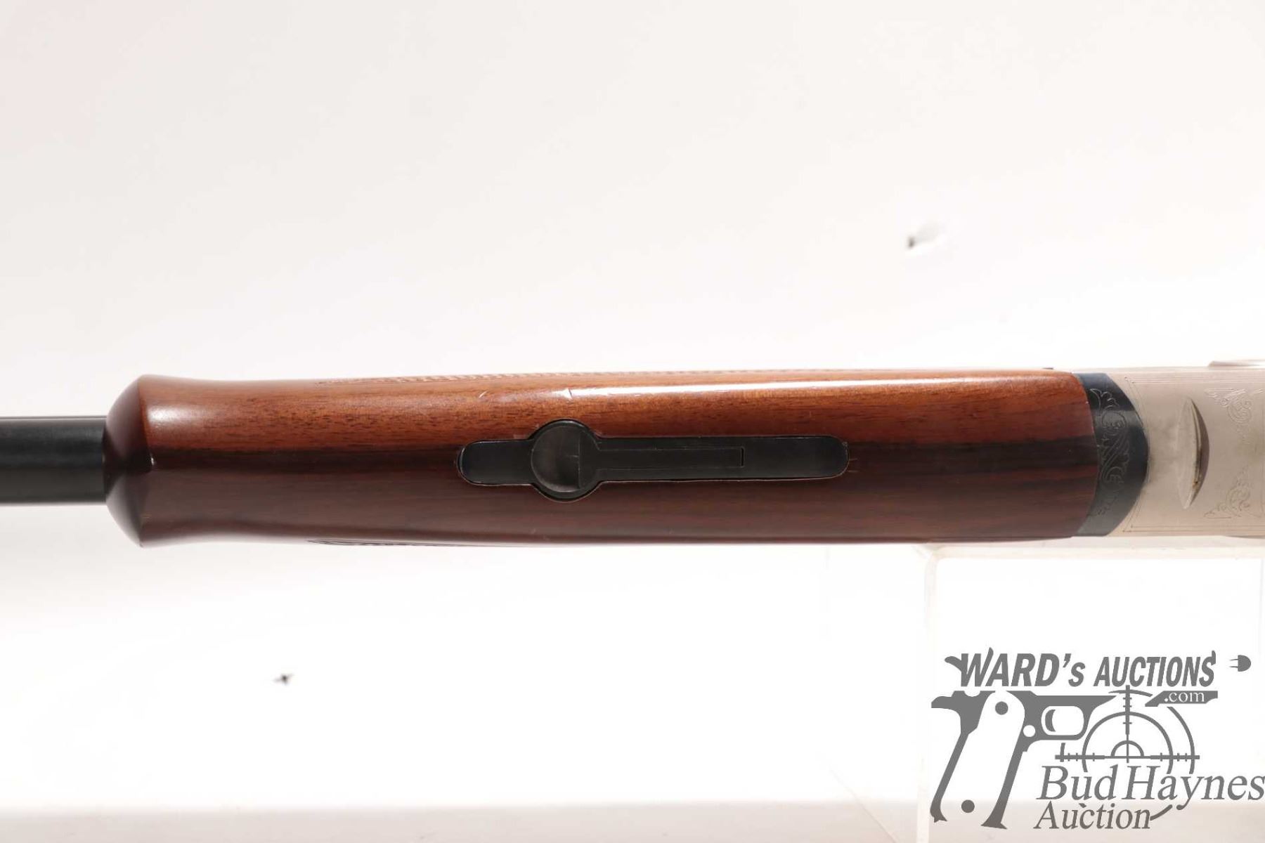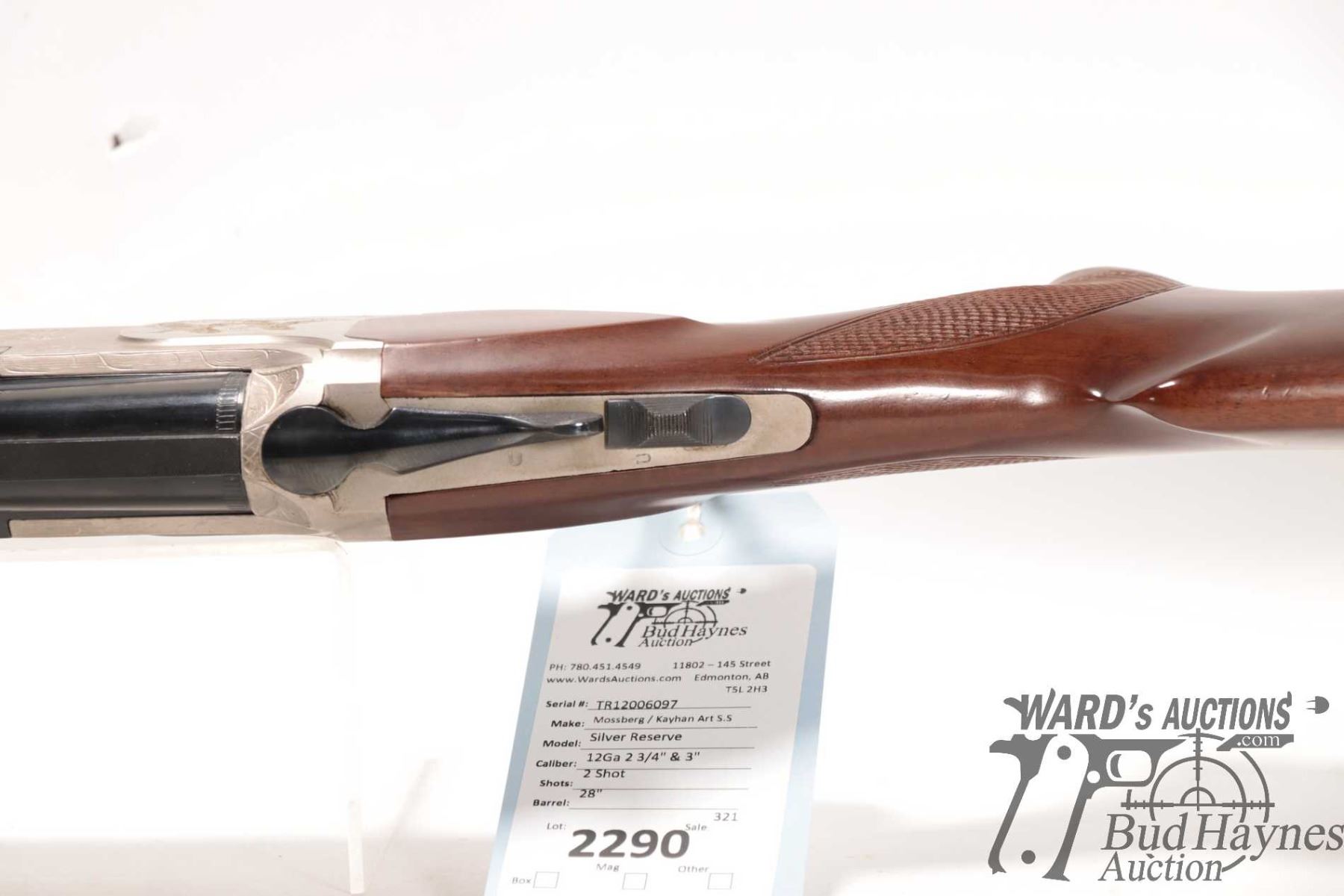 Non-Restricted shotgun Mossberg/ KAYHAN ART model Silver Reserve, 12 ga. 2 3/4" & 3" Two shot hinge break, w/ bbl length 28" bore diameter as measured 6" from muzzle (Top .719, Bottom .7215), muzzle diameter (Threaded)] [Blued ribbed barrels with single bead sight. Engraved white metal receiver. Includes two unidentified screw in chokes. Hardwood stock with recoil pad. Matching serial number on receiver, barrels and forend. Mechanically and aesthetically appear near excellent with only minor use, handling and storage marks.] serial # TR12006097, PAL required