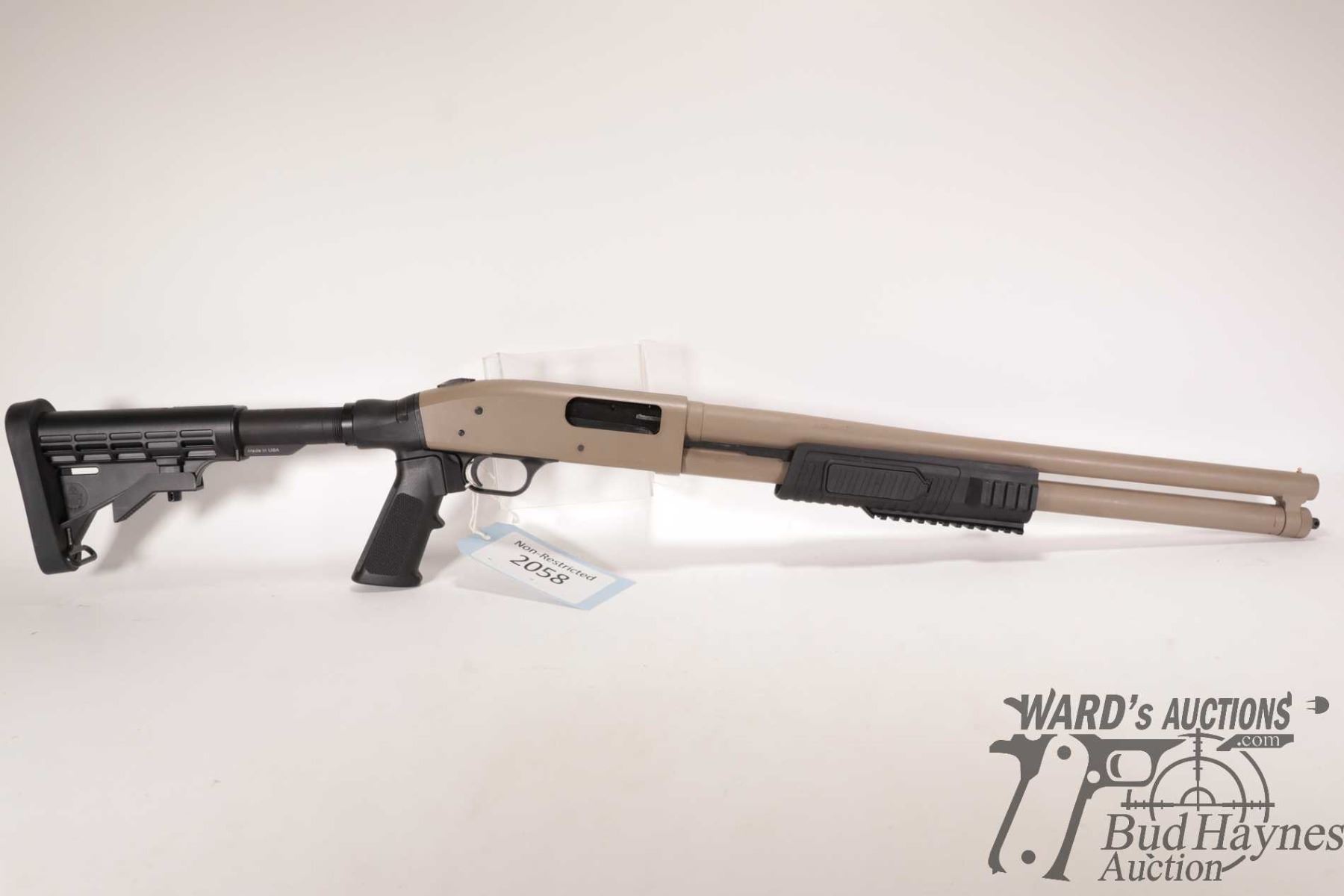 Non-Restricted shotgun Mossberg model 500, 12 ga. 2 3/4" & 3" pump action, w/ bbl length 21" [Choked markings include (Cylinder Bore), bore diameter as measured 6" from muzzle (.730), muzzle diameter (.730)] [Cerakote finish on barrel and receiver. Single bead sight. Tubular magazine. Polymer extending stock. Pistol grip and forend with rails. Receiver tapped for optics mount. Mechanically near excellent with only minor use, handling and storage marks.] serial # V0016866, PAL required