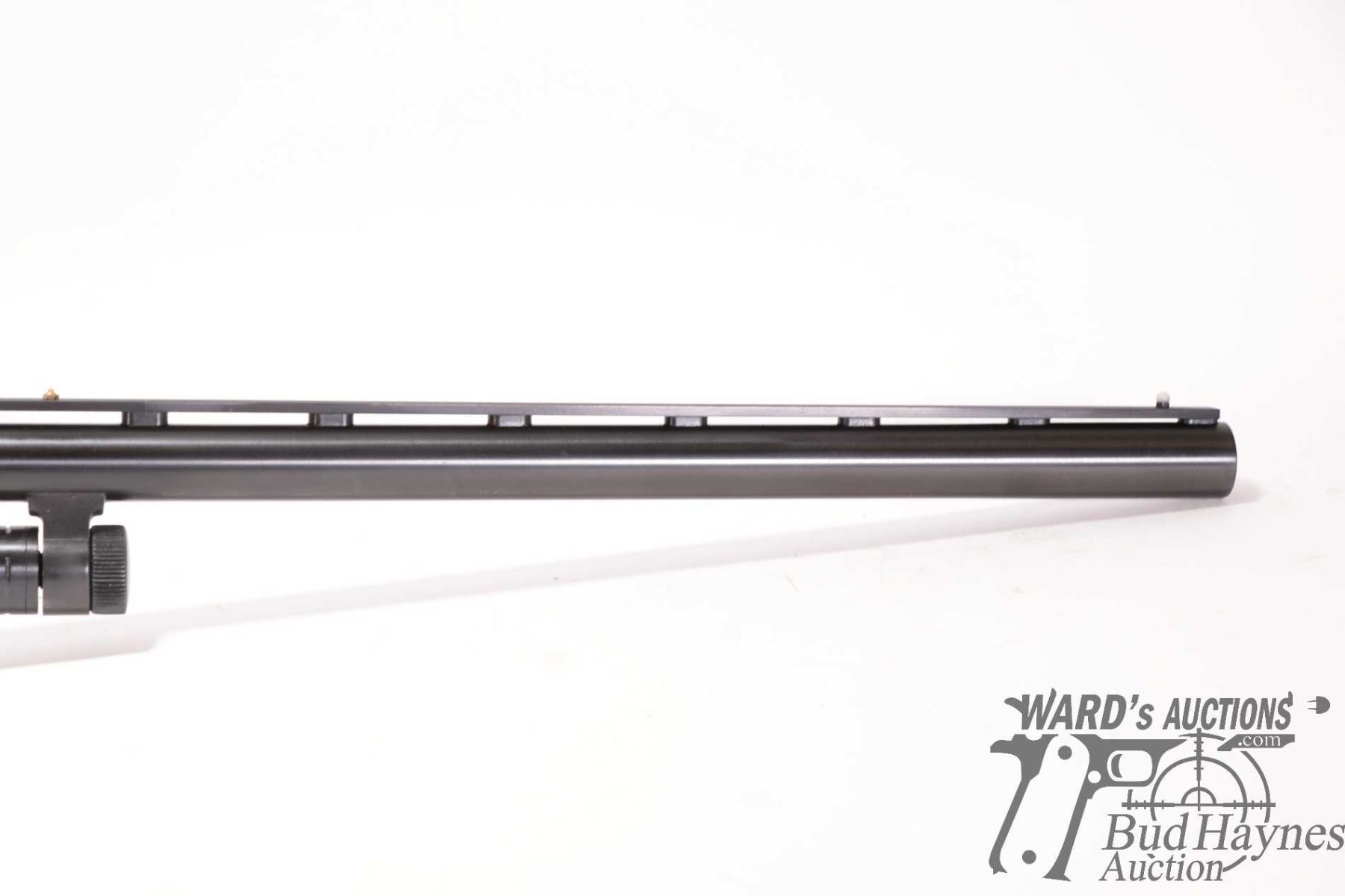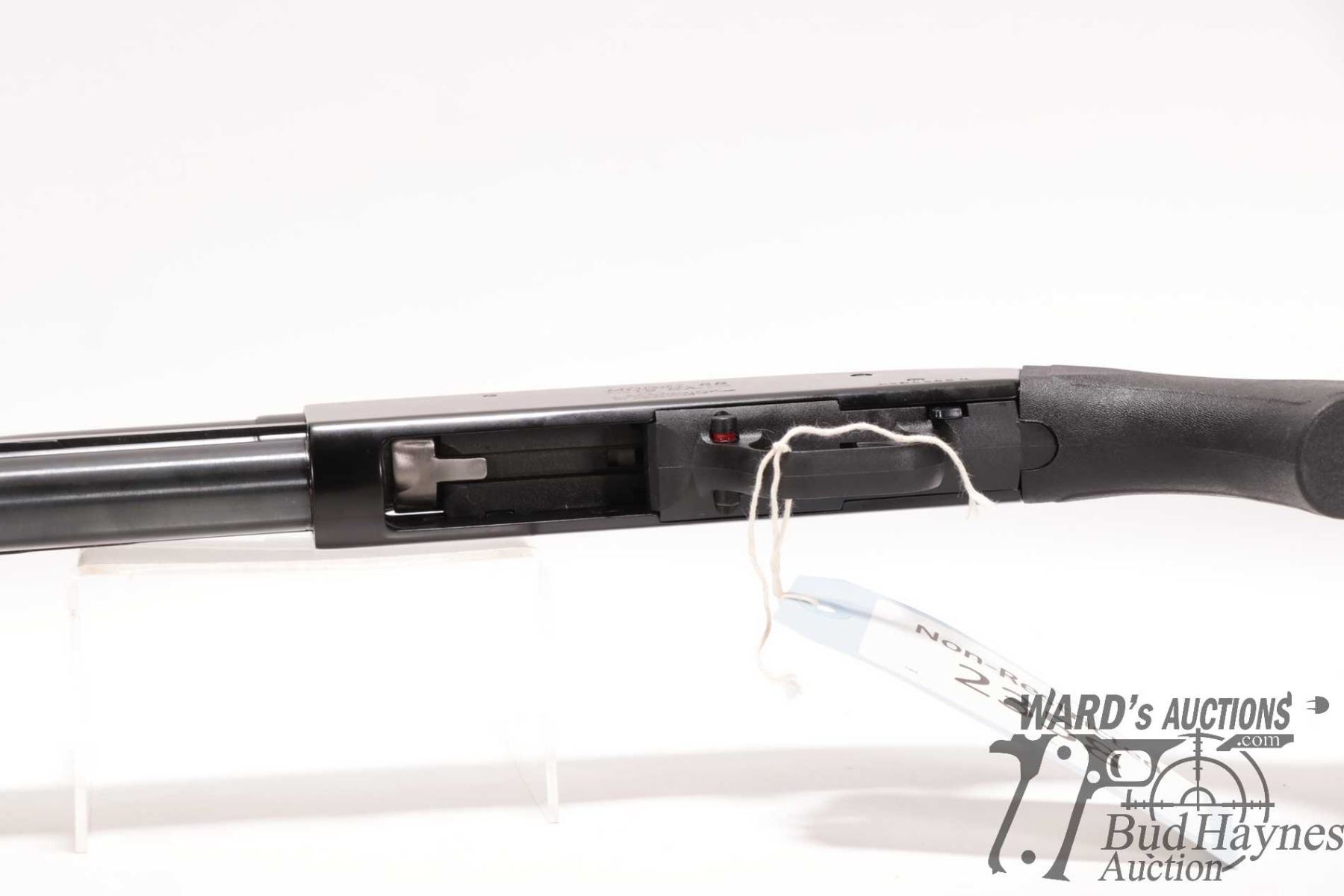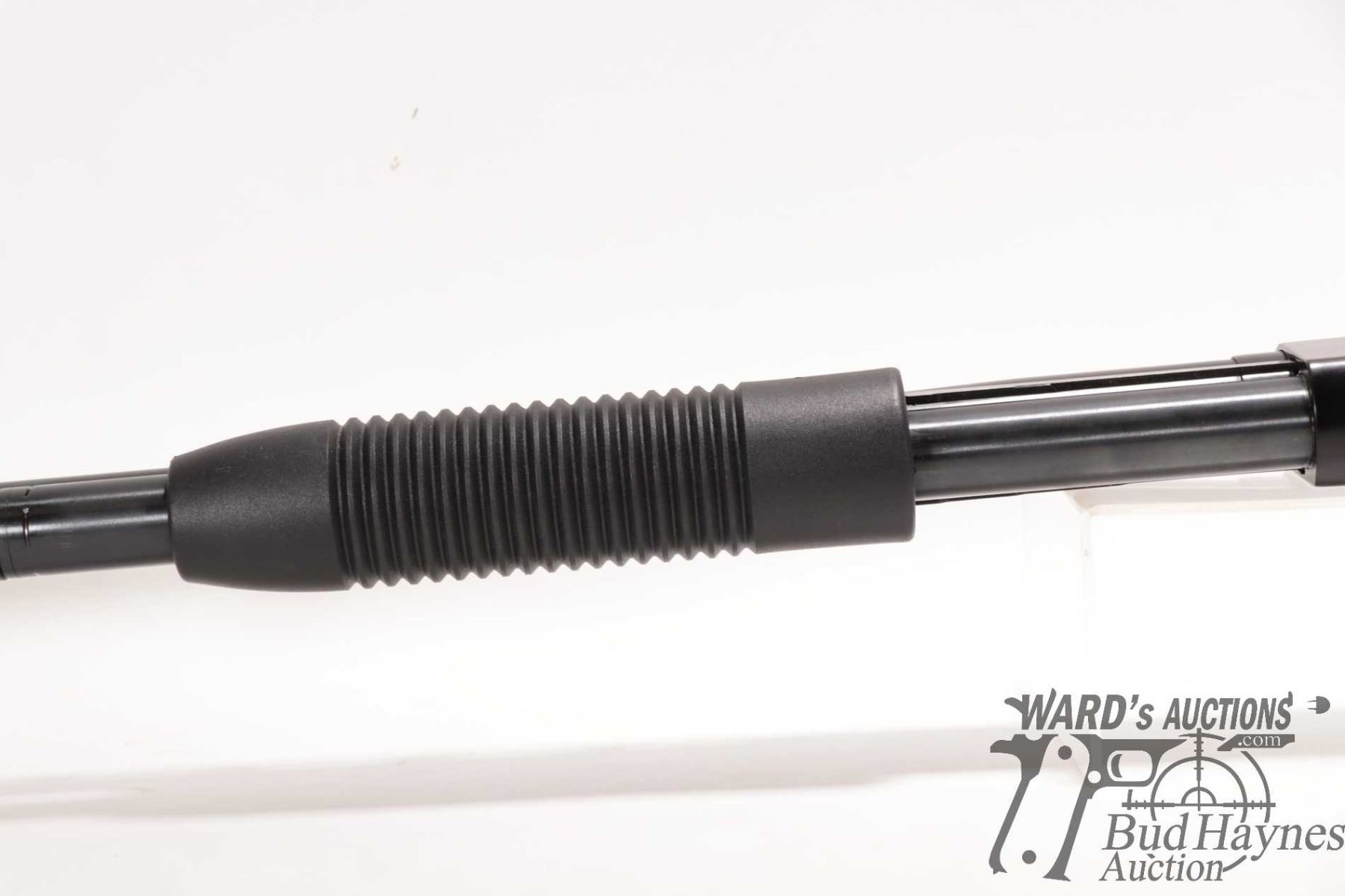 Non-Restricted shotgun Mossberg model 88 Maverick, 12 ga. 2 3/4" & 3" pump action, w/ bbl length 28" [Choked markings include (ACCU-CHOKE), bore diameter as measured 6" from muzzle (.7355), muzzle diameter (Threaded)] [Blued ribbed barrel with double bead sight. Black alloy receiver. Tubular magazine. Includes original manual. Black synthetic stock. Mechanically and aesthetically appear near excellent. Likely had little use with only minor use, handling and storage marks.] serial # MV86666N, PAL required
