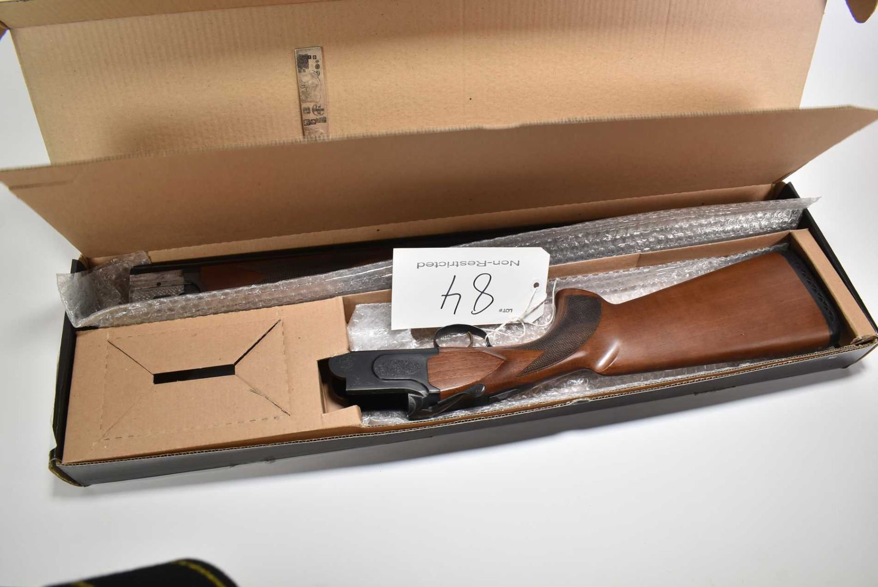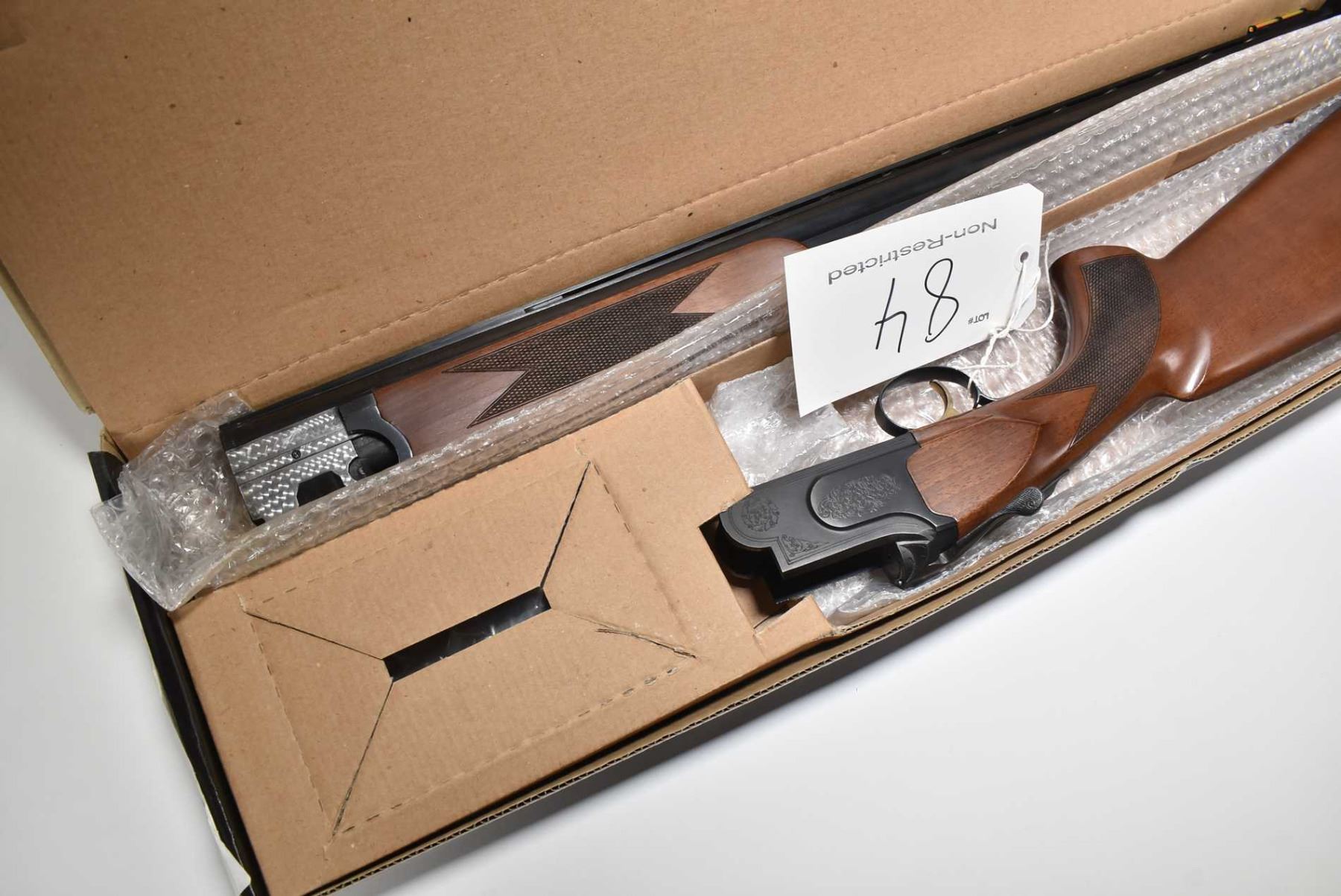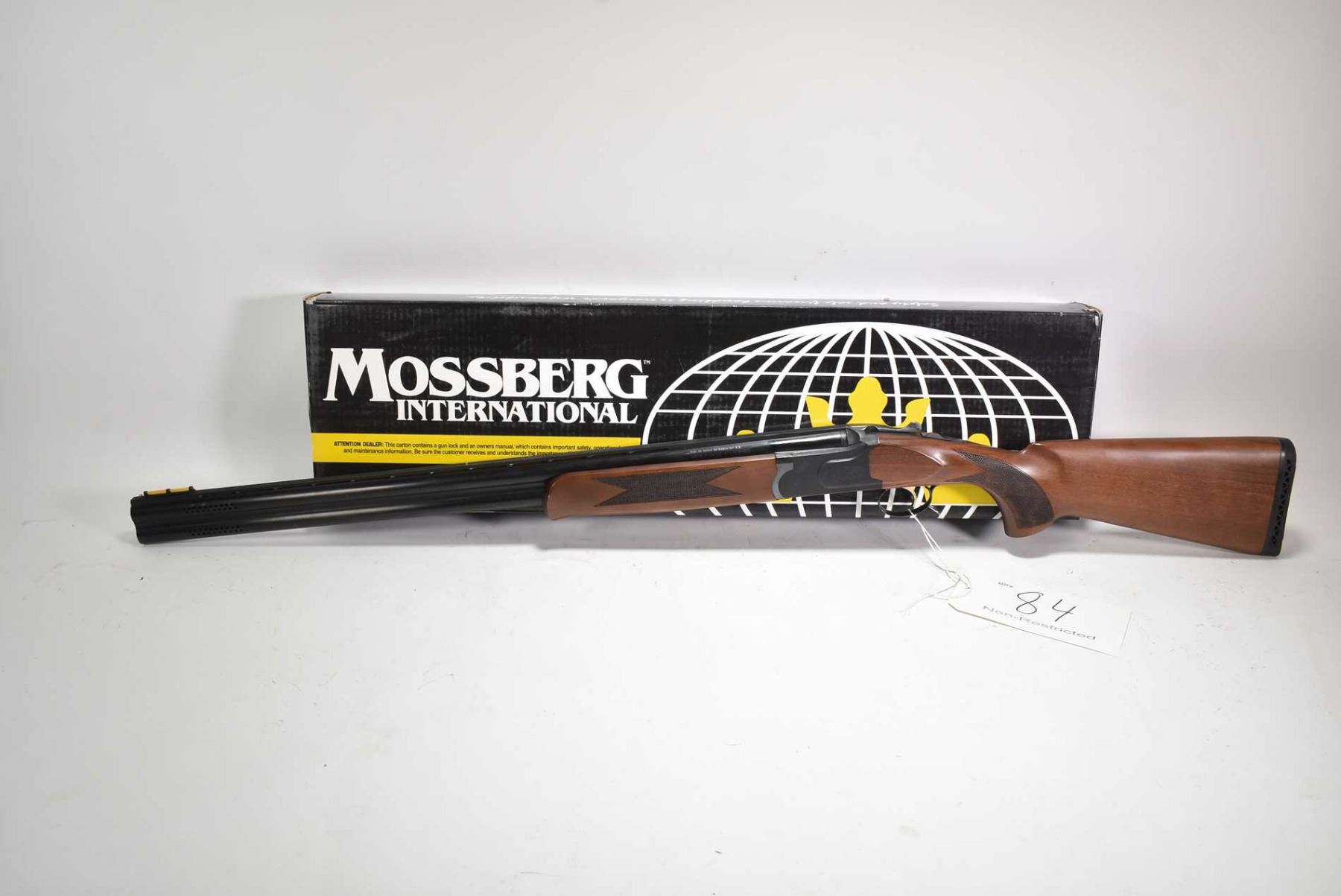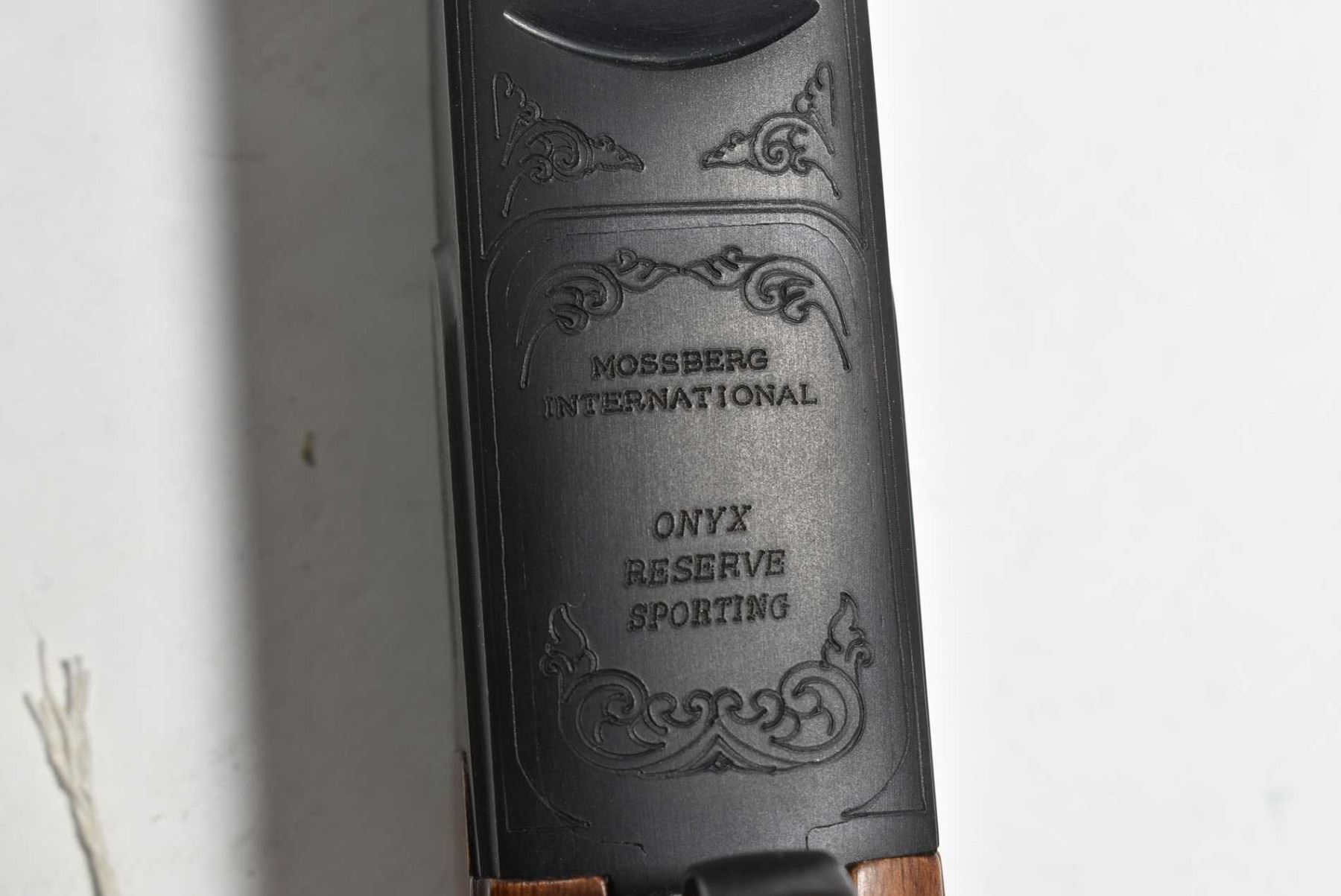 Non-Restricted shotgun Mossberg model Onyx, 12 ga. 2 3/4" & 3" two shot hinge break, w/ bbl length 28" [Blued ribbed barrel with front and center bead sights, also fitted with after market fiber optic front sight. Threaded for chokes includes a set of choke tubes. Hardwood stock and forend with checkered grips, soft recoil pad and factory engraving on receiver and gold coloured trigger. Action feels smooth and tight. Includes original box. Minor use and handling marks.] serial # TR12054208, PAL required