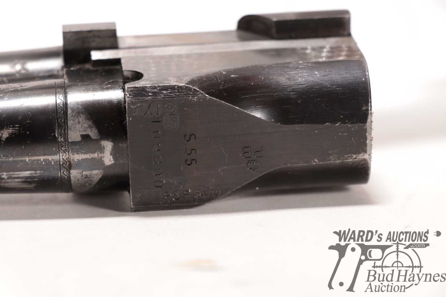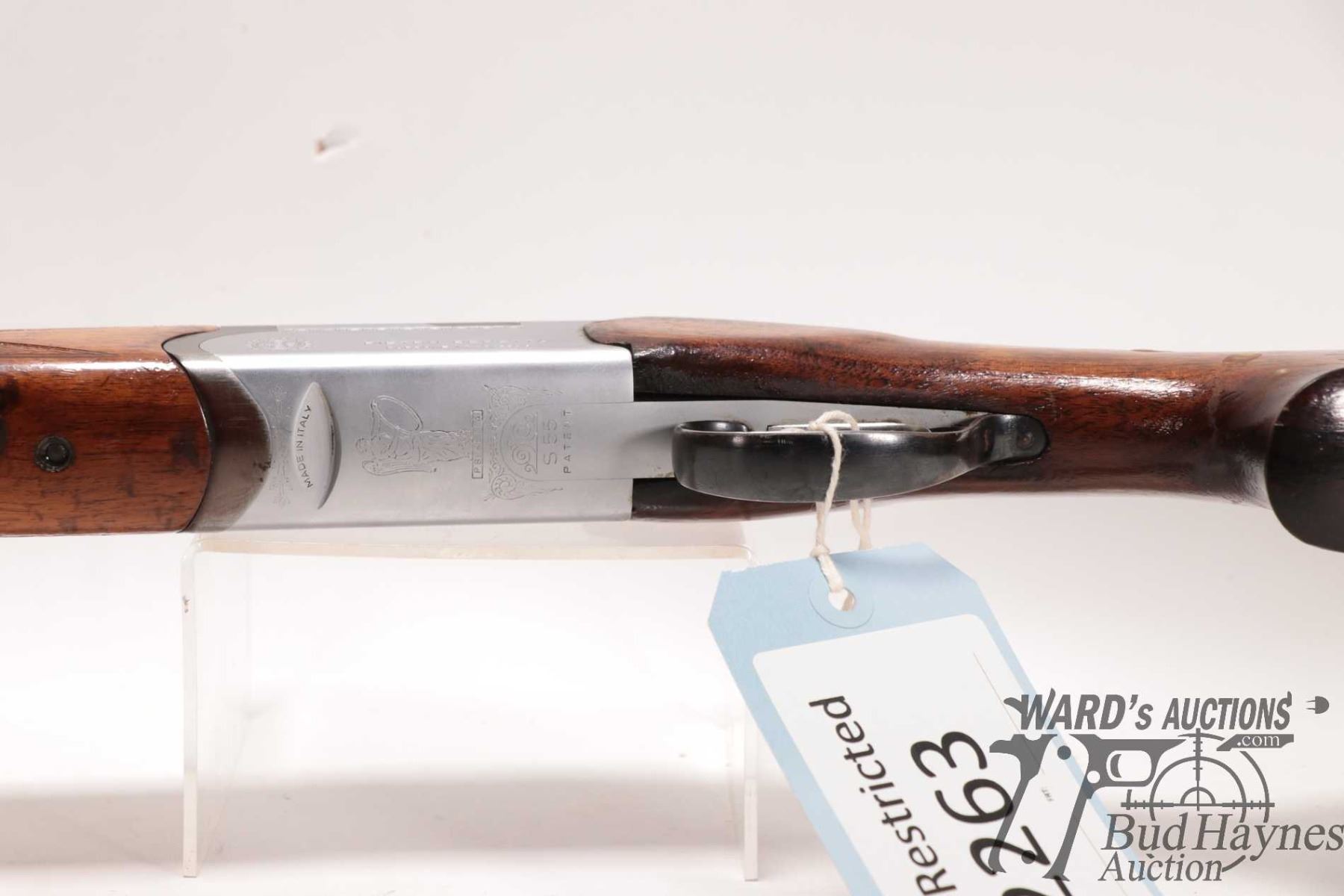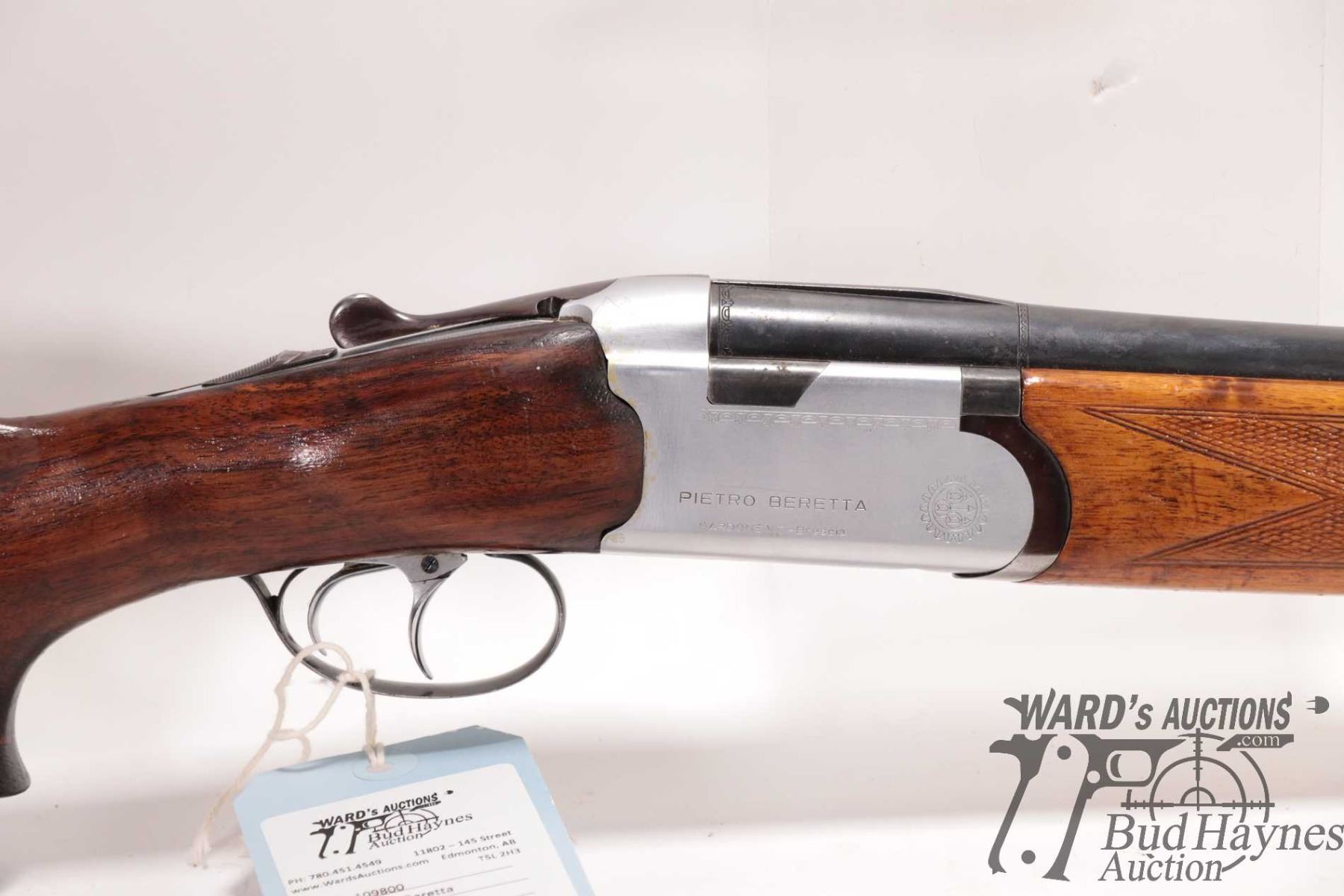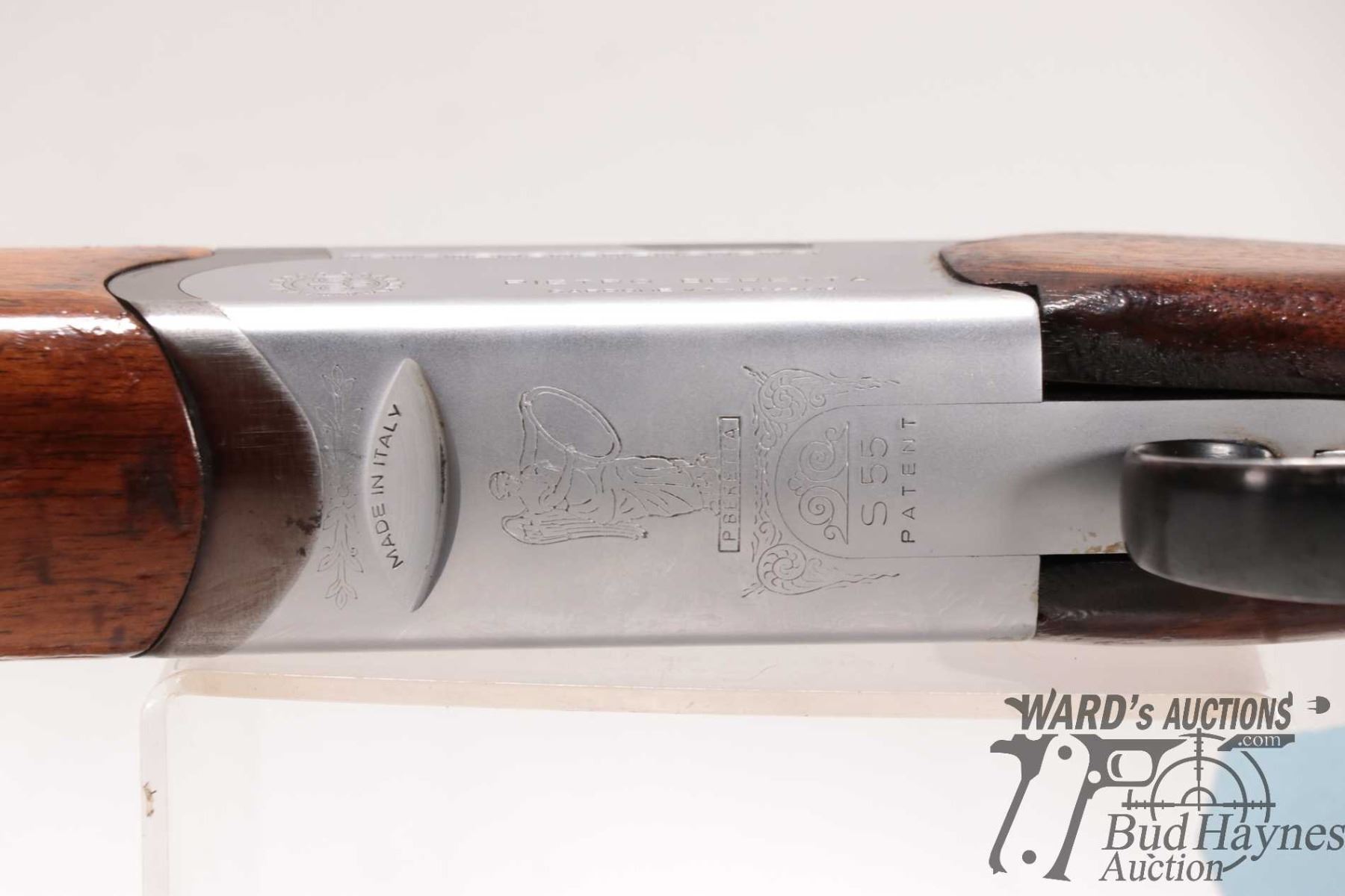 Non-Restricted shotgun Petro Beretta model S55, 12 ga. 2 3/4" Two shot hinge break, w/ bbl length 28" [Choked markings include (Top *, Bottom ***), bore diameter as measured 6" from muzzle (Top .722, Bottom .724), muzzle diameter (Top .686, Bottom .701)] [Blued barrels with fixed front sight. White metal receiver. Hardwood stock with branded plastic butt plate. Matching serial number on receiver, barrels and forend. Marked "MADE IN ITALY'. Mechanically appears to function well. Bluing worn in use and handling areas. Wood has been re-varnished. Nicks and dings and other use, handling and storage marks.] serial # 109800, PAL required