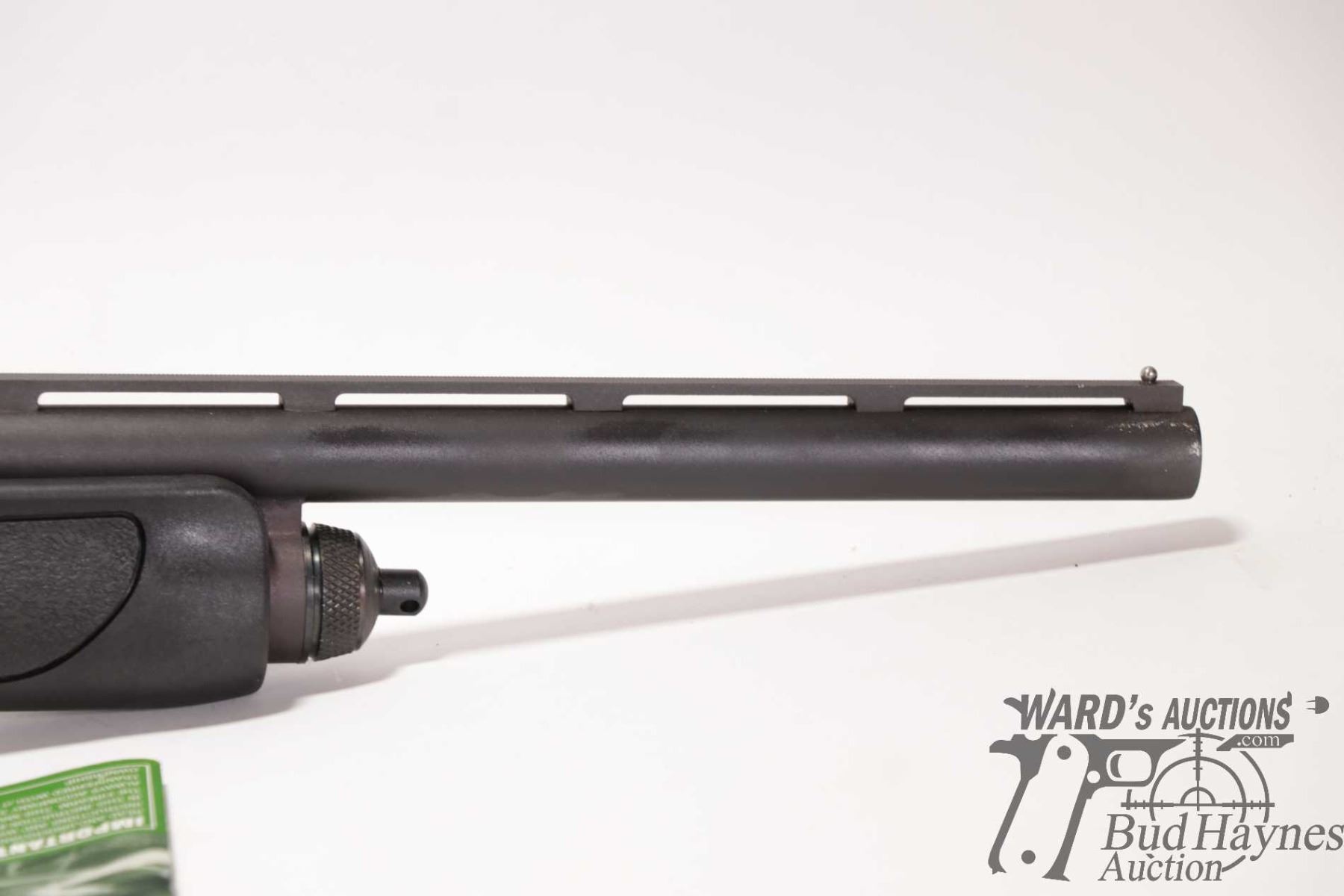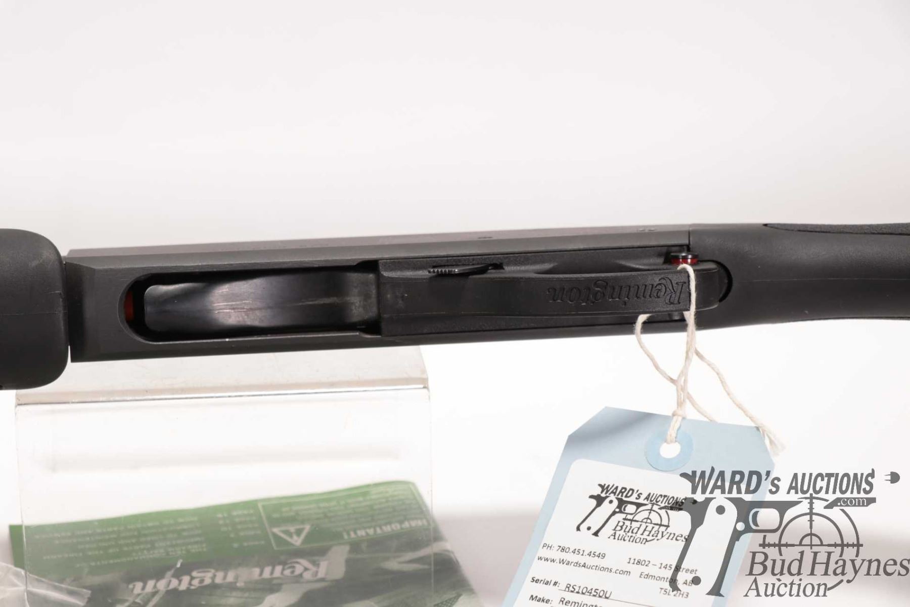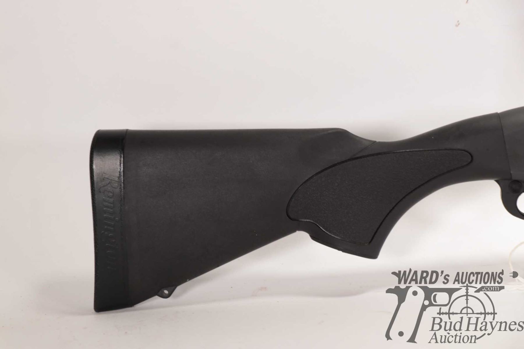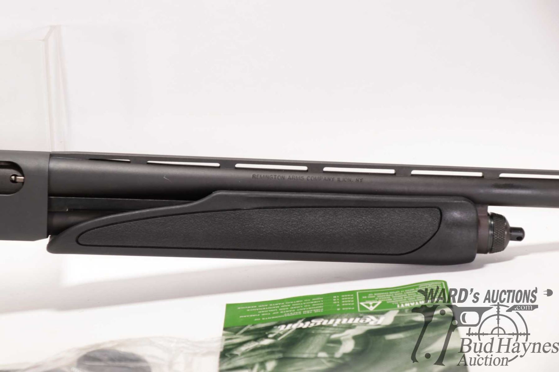 Non-Restricted shotgun Remington model 870, 20 ga. 2 3/4" & 3" pump action, w/ bbl length 18 1/2" bore diameter as measured 6" from muzzle (.616), muzzle diameter (Threaded)] [Satin black finish on ribbed barrel and receiver. Single bead sight. Tubular magazine. Includes original manual, stock spacers and one unidentified screw in choke. Mechanically appears near excellent and likely had little use with minor use, handling and storage marks and one bit of isolated surface rust at ejection port.] serial # RS10450U, PAL required
