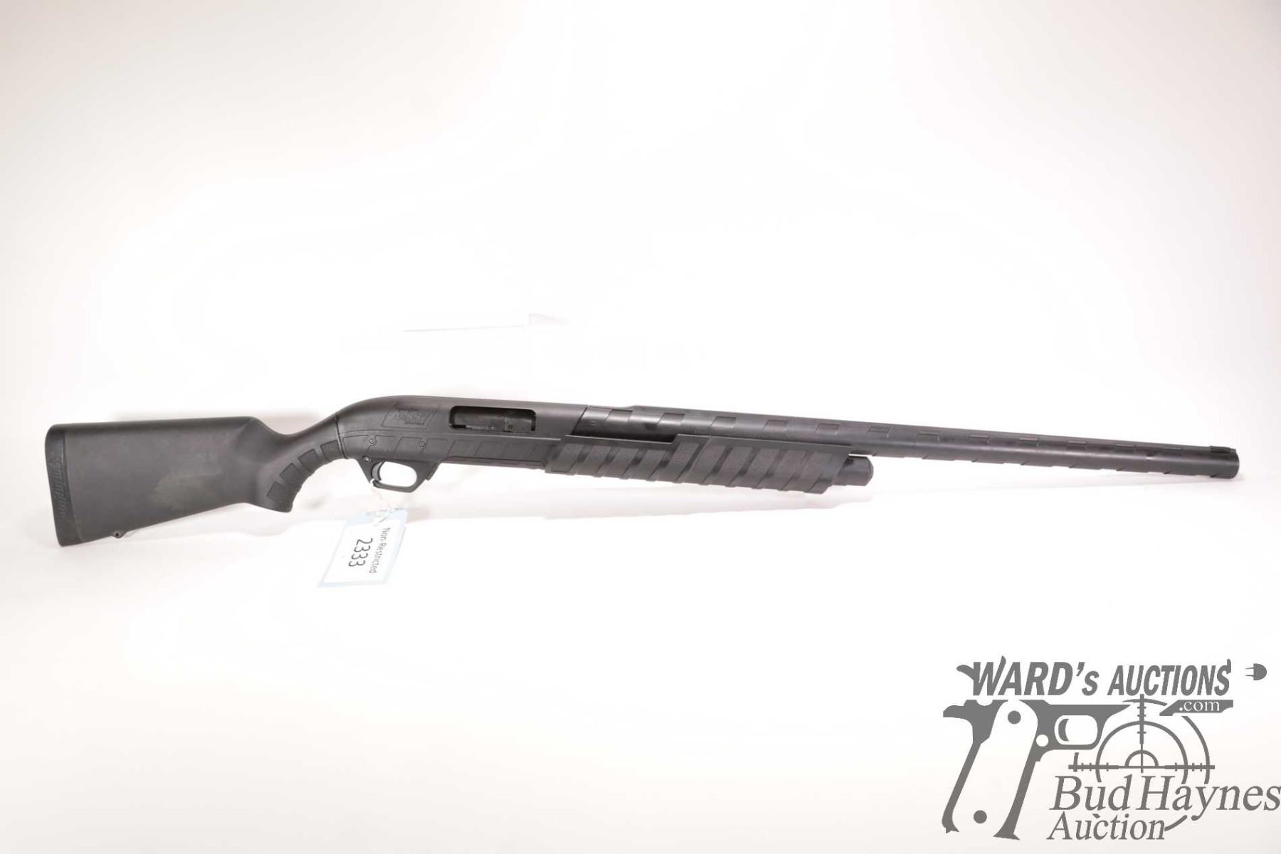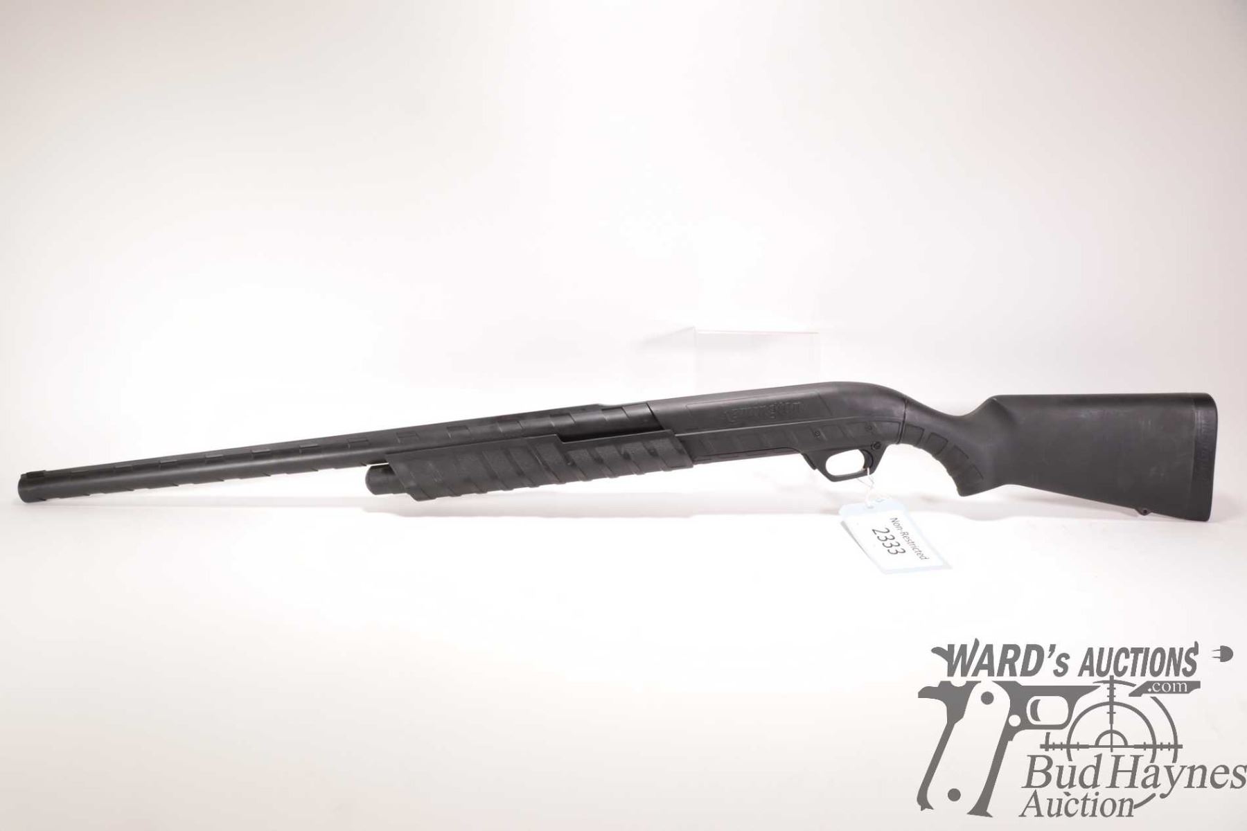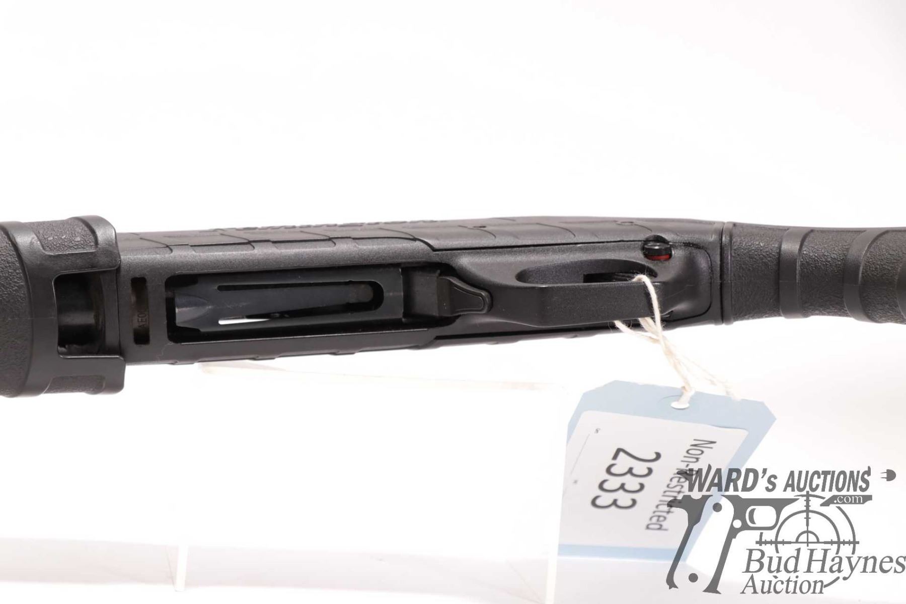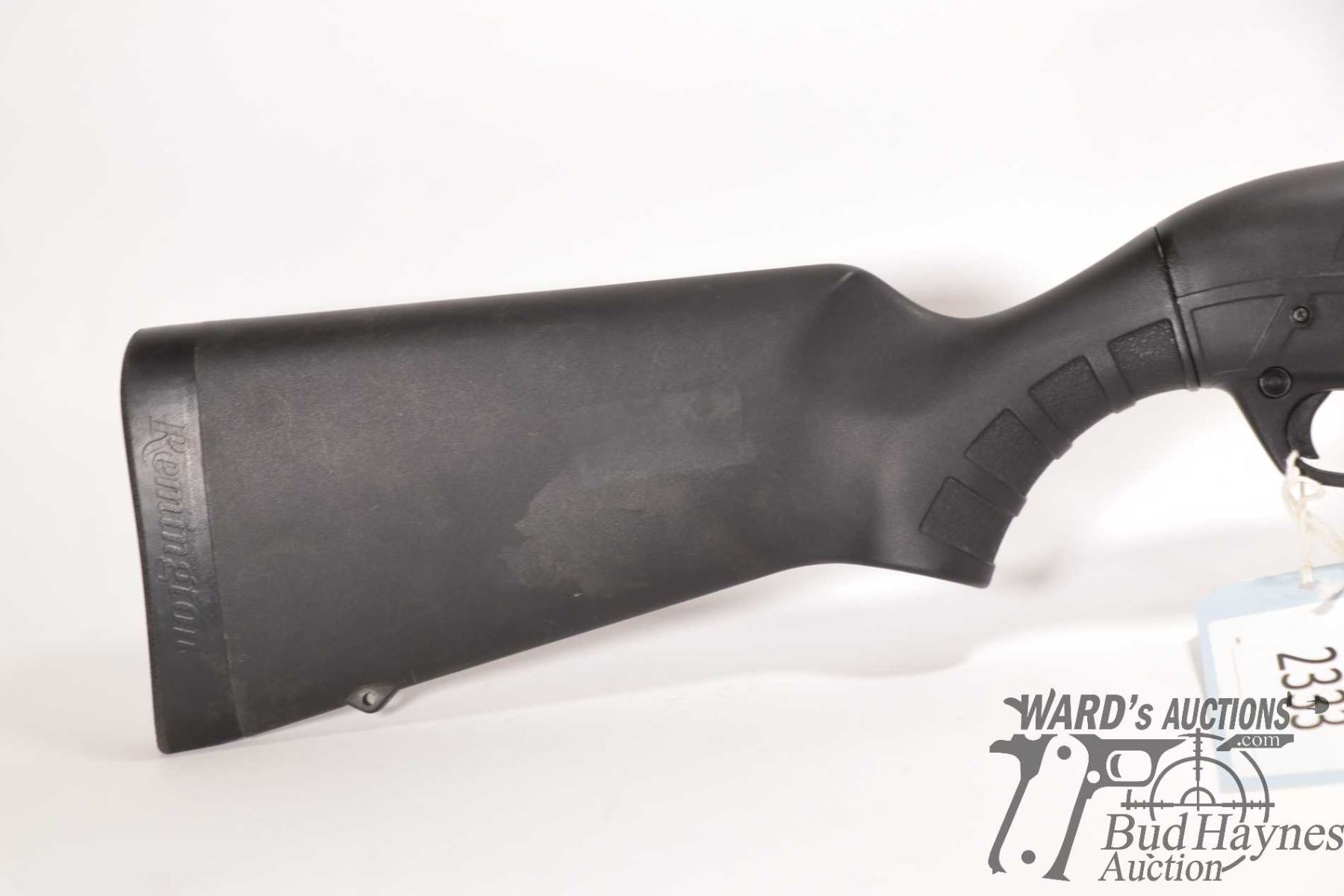 Non-Restricted shotgun Remington model M887 Nitromag, 12 ga. 2 3/4"- 3 1/2" pump action, w/ bbl length 28" [Choked markings include (NONE SEEN), bore diameter as measured 6" from muzzle (.728), muzzle diameter (Threaded)] [ArmorLokt polymer wrapped barrel and receiver. Black synthetic stock and forend with recoil pad. Front sight insert missing. Includes one unidentified screw in choke. Mechanically appears to function well with only minor use, handling and storage marks.] serial # AAE001363A, PAL required
