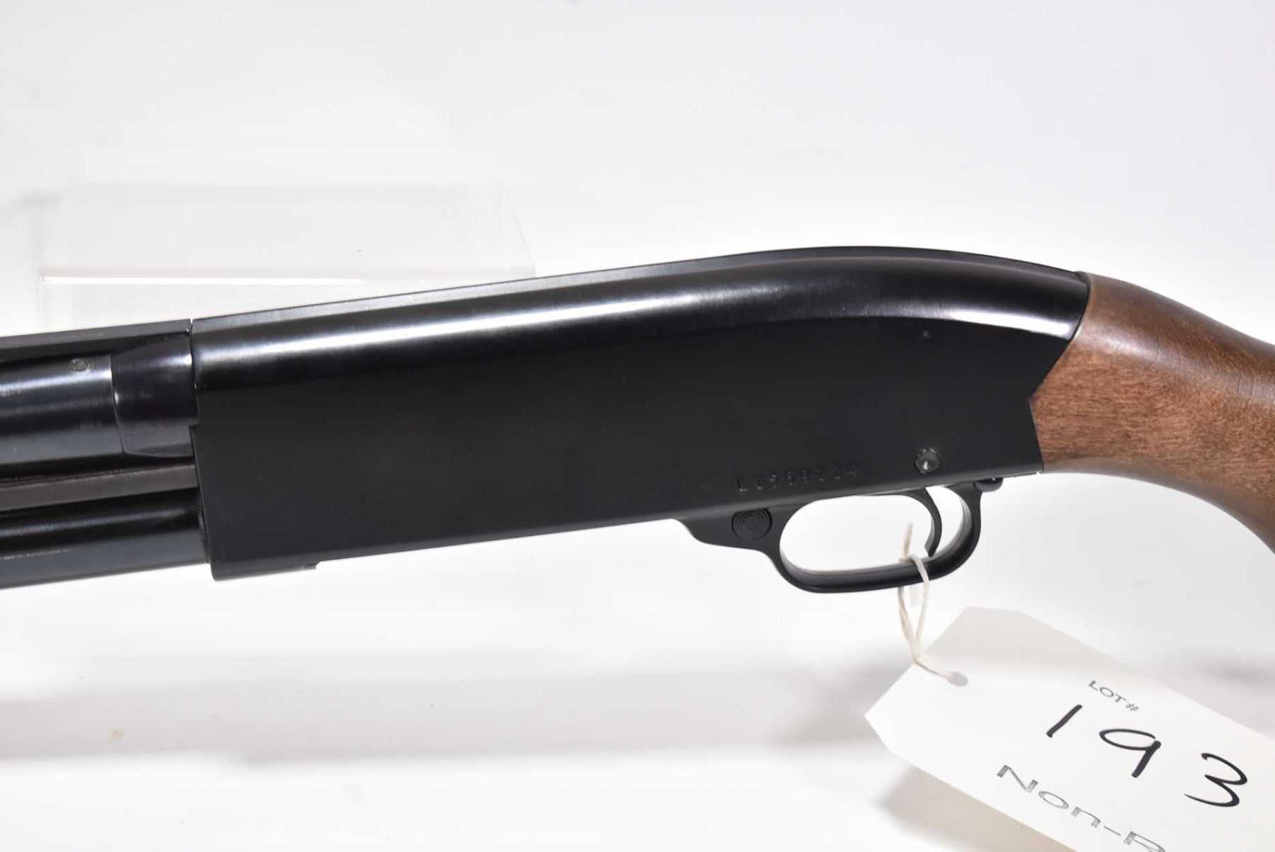 Non-Restricted shotgun Winchester model 120, 12 ga. 2 3/4", 3" pump action, w/ bbl length 28 3/4" [Blued barrel and receiver. Single bead front sights. Hard wood stock and ribbed hardwood fore grip. plastic branded butt plate. Removable choke. Overall has had light use with nicks and marks to wood and metal. Storage, use and handling marks] serial # L1569114, PAL required