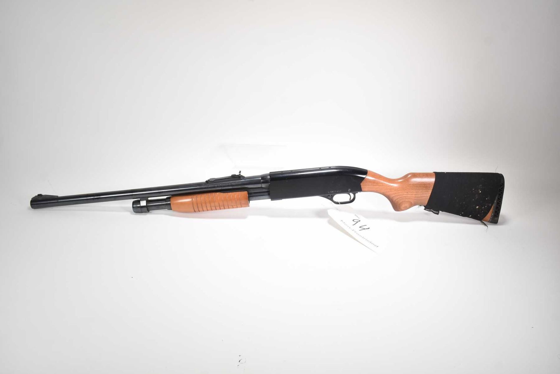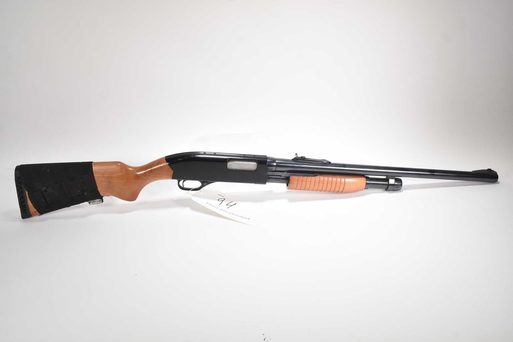 Non-Restricted shotgun Winchester model 1300 Ranger, 12 ga. 2 3/4" & 3" pump action, w/ bbl length 22 1/2" [Blued Deer slug barrel with fixed front and adjustable rear sight. Black receiver, drilled and tapped for optic mount. Smooth wooden stock, Winchester branded recoil pad. Use, storage and handling marks on wood and metal] serial # L2307417, PAL required
