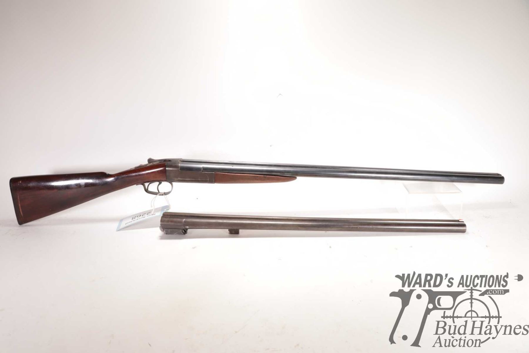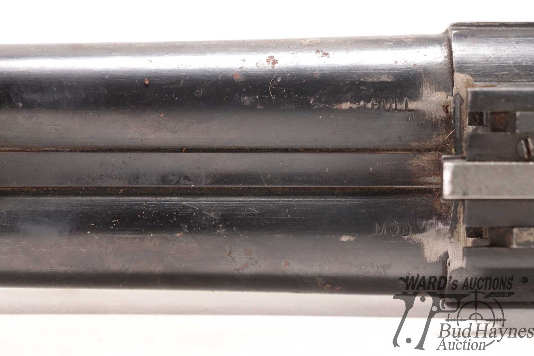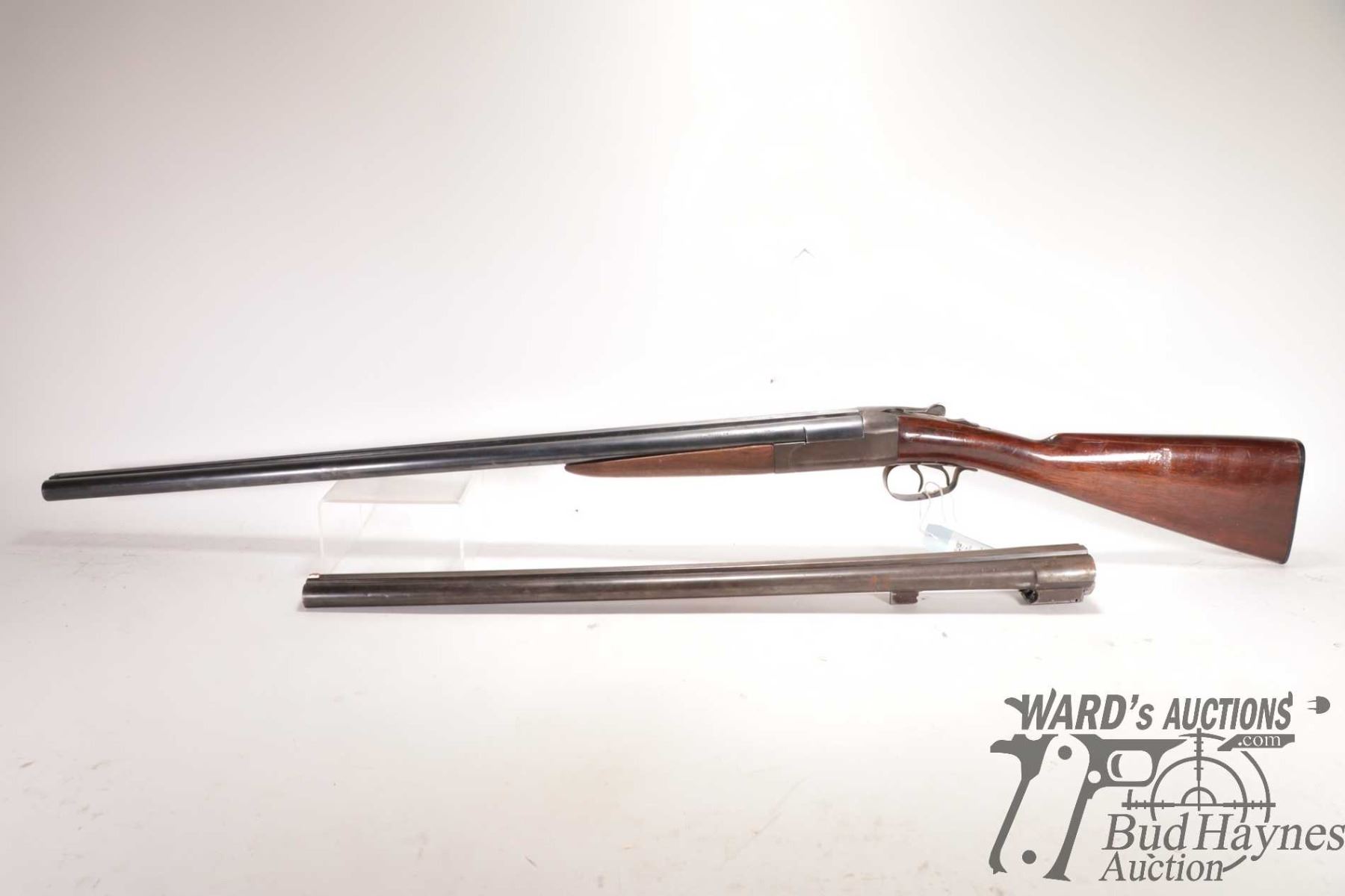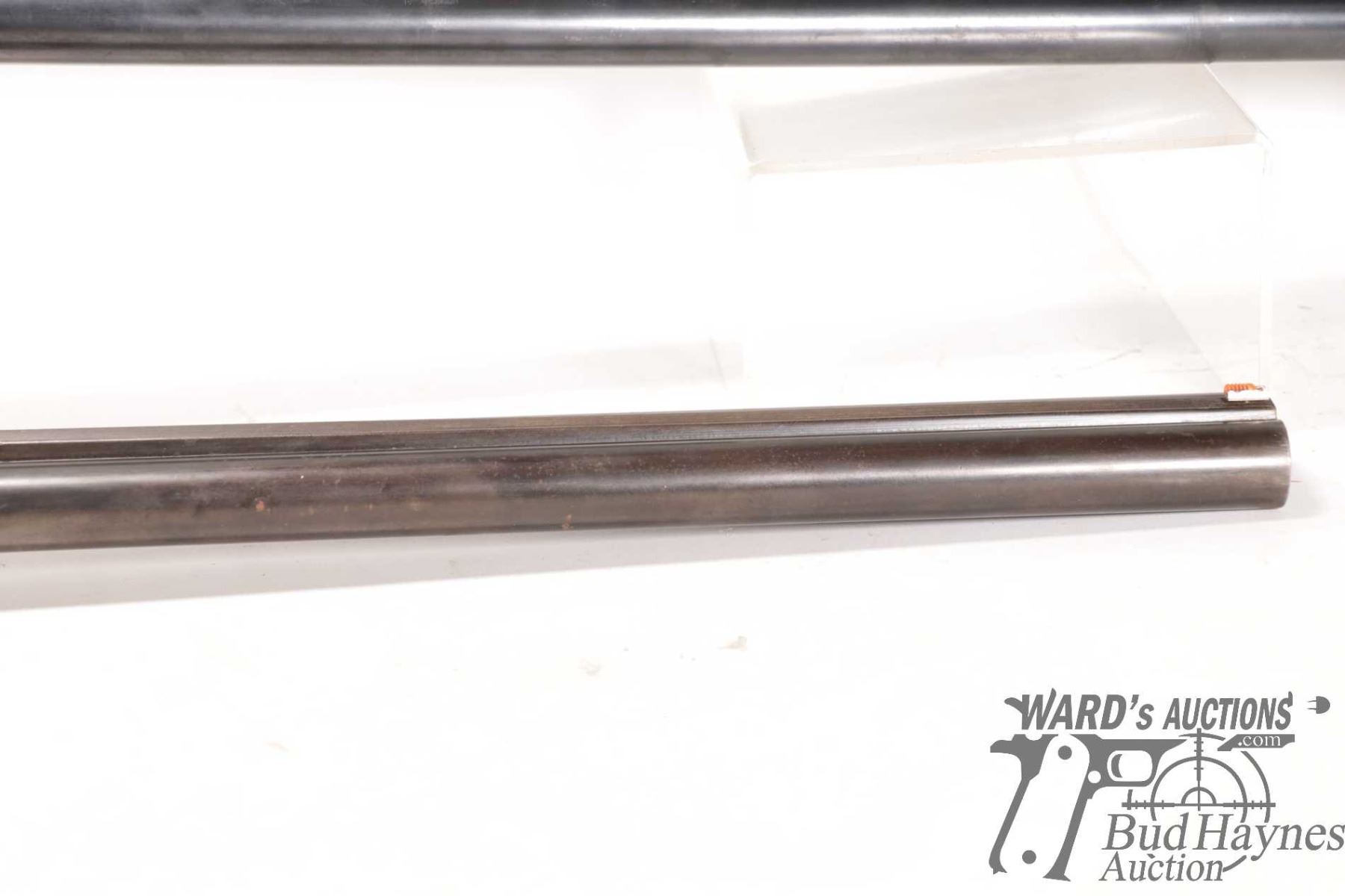 Non-Restricted shotgun Winchester model 24, 12 ga. 2 3/4" Two shot hinge break, w/ bbl length 30" and 26" [Blued barrels and receiver. Single bead sights. Smooth wooden stock with plastic butt plate. No serial numbers seen on either barrel. 30" left barrel marked "Full" and measures .727 in the bore and .6945 at muzzle. Right 30" barrel marked "Mod" and measures .726 and muzzle .716. 26" left barrel marked "Mod" and measures .7275 in the bore and .716 at muzzle. Right 26" barrel marked "Cyl" and measures .728 at the bore and .7285 at muzzle. Both barrels fitted to receiver and function reasonably well. Finish on receiver and short barrel is brown with surface rust and pitting, 30" barrel has most of bluing intact with much less surface rust and pitting.] serial # 34128, PAL required