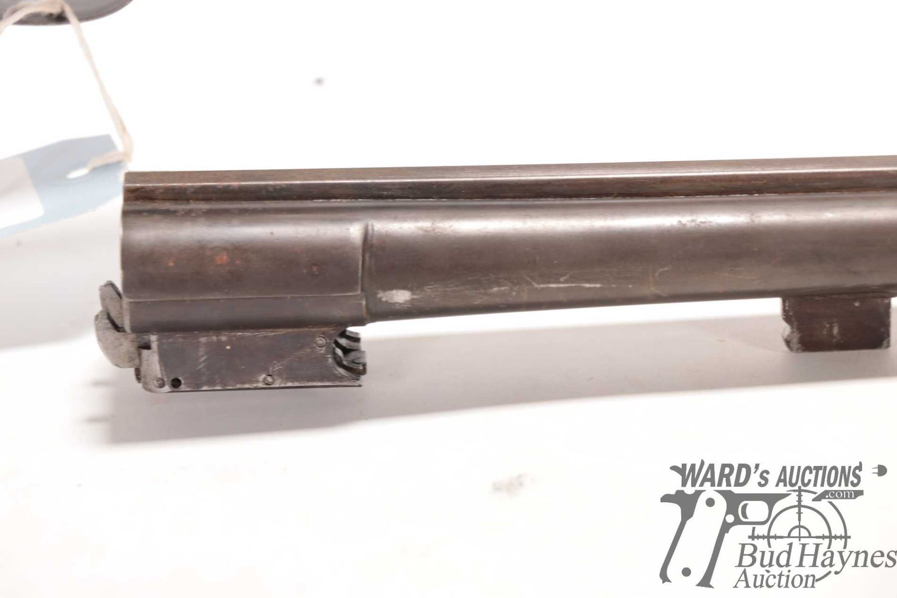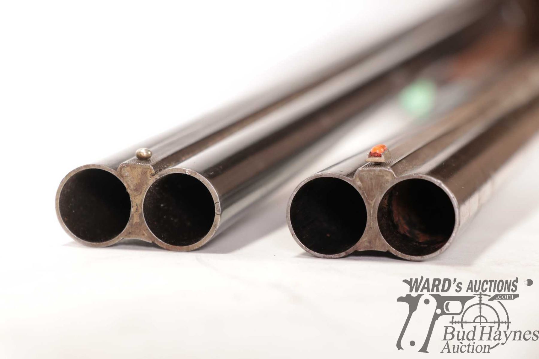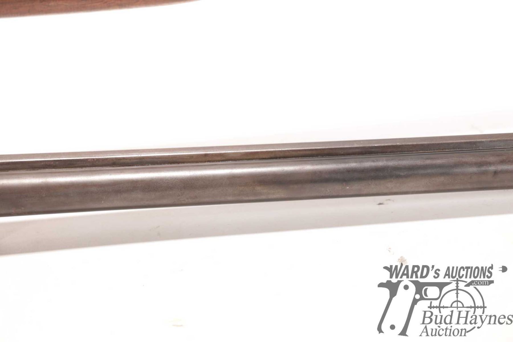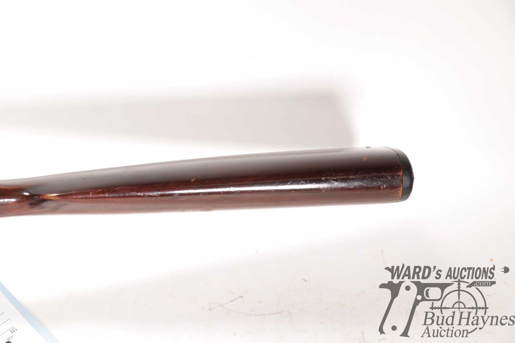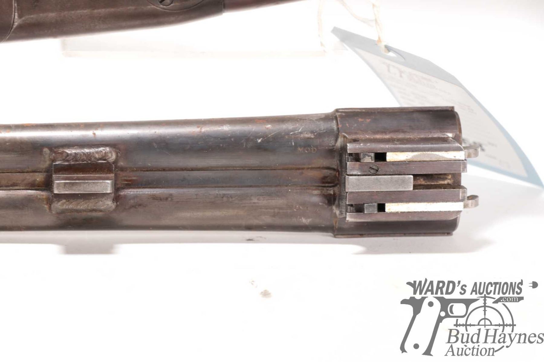 Non-Restricted shotgun Winchester model 24, 12 ga. 2 3/4" Two shot hinge break, w/ bbl length 30" and 26" [Blued barrels and receiver. Single bead sights. Smooth wooden stock with plastic butt plate. No serial numbers seen on either barrel. 30" left barrel marked "Full" and measures .727 in the bore and .6945 at muzzle. Right 30" barrel marked "Mod" and measures .726 and muzzle .716. 26" left barrel marked "Mod" and measures .7275 in the bore and .716 at muzzle. Right 26" barrel marked "Cyl" and measures .728 at the bore and .7285 at muzzle. Both barrels fitted to receiver and function reasonably well. Finish on receiver and short barrel is brown with surface rust and pitting, 30" barrel has most of bluing intact with much less surface rust and pitting.] serial # 34128, PAL required
